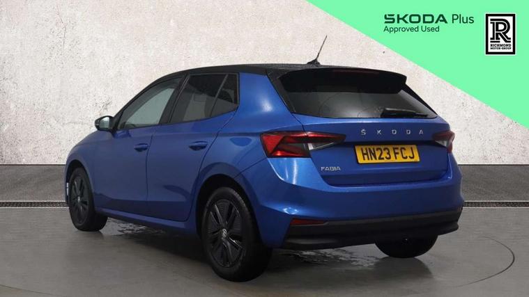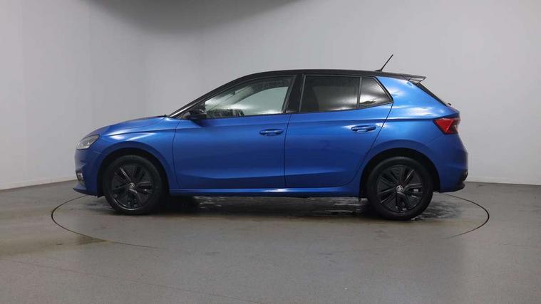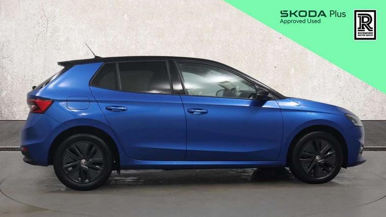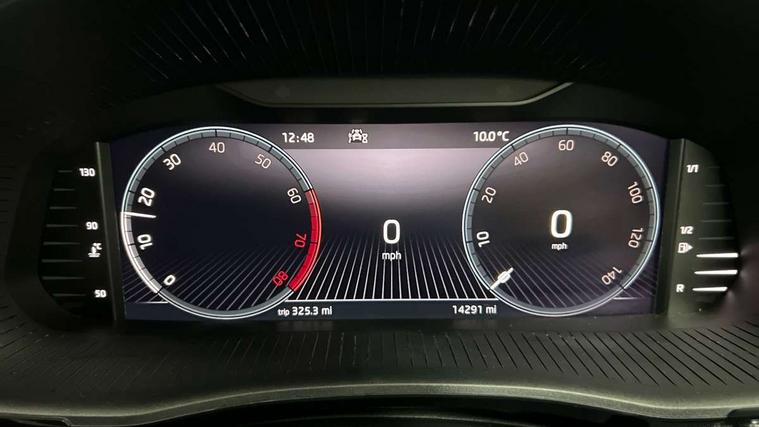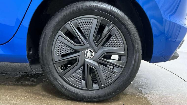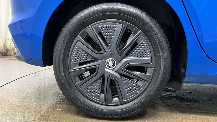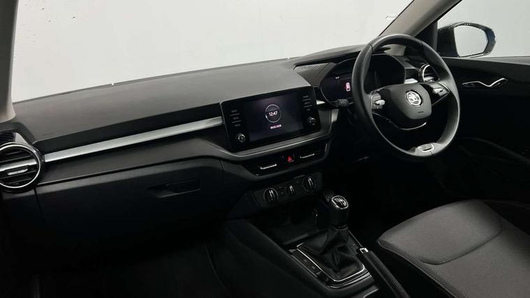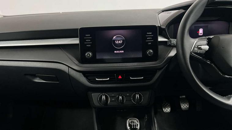 Bluetooth connection, Driver alert system - DAS, Electromechanical power steering, Exterior temperature gauge, Lane assist including road edge detection, Service interval indicator, Virtual cockpit with 10.25" colour display, 2x USB-C in the front (for data transmission and charging), 6 Speakers (4 in front and 2 in rear), Auxiliary socket for external MP3 player, Bolero radio with 8" colour display, DAB digital radio reception, Basic rear lights, Body coloured bumpers, Dimming rear view mirror with black frame, Door mirror integrated indicators, Electrically adjustable and heated door mirrors, Electrically adjustable front windows with function auto up/down, Front window wiper intermittent control, Headlight range control - Automatic, Ice scraper in fuel cap, LED daytime running lights with coming and leaving home feature, Mechanical adjustable rear windows, Privacy glass, Rear LED fog light, Rear side wing doors, Rear window wiper with washing nozzles, Roof mounted spoiler, SKODA tailgate lettering in chrome, Third brake light, 3 rear headrests, Backrest split and folding, Central console with fixed cup holder and storage box, Chrome handbrake release button, Fabric upholstery, Gearshift knob/handle in leather, Grain satin black interior door handles, Hand brake lever handle in leather, Height adjustable front headrests, Height adjustable steering wheel, ISOFIX and TopTether anchorage points to the outer rear seats, ISOFIX and TopTether on the front passenger seat, Luggage compartment lighting, Pollen filter, Rear seat bench unsplit, Single front passenger seat, Storm grey headlining, Sun visors with mirror and airbag label on passenger side, Ticket holder, Umbrella in drivers door, 3-point height adjustable front seats belts with pretensioner and force limiter, Automatic warning lights in case of crash, Driver and passengers airbag with switch off function, e-Call+, ESC including ABS, MSR, ASR, EDS, HBA and XDS, Front and rear seat belt warning, FRONT ASSIST (AEB City and AEB Inter Urban), Front side airbags, Head airbags, One tone horn, Pedestrian protection, Three rear 3-points safety seat belts with pretensioner and force limiter including stop function for outer rear seat belts, Tyre pressure monitoring system, Anti-theft alarm system including immobiliser, interior monitoring, backup horn, and towing protection, Anodized cross line upper decorative trim, Colour Edition air vents, Grain satin black central console cover, Grain satin black lower decorative trim, Satin black door and side trim panel in front, Anti-theft wheel bolts protection, Super-low rolling resistance tyres,