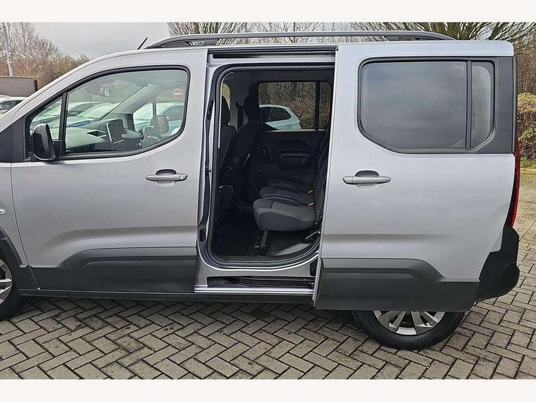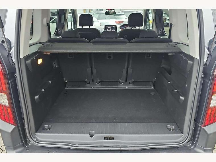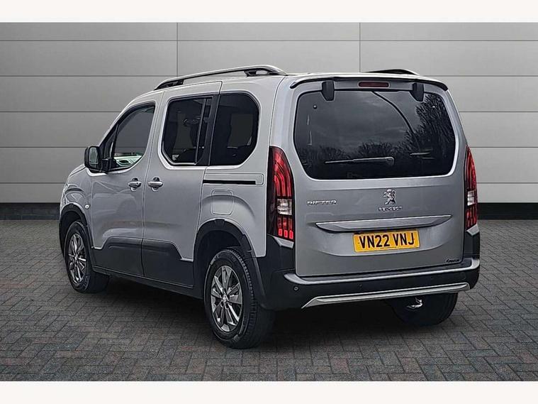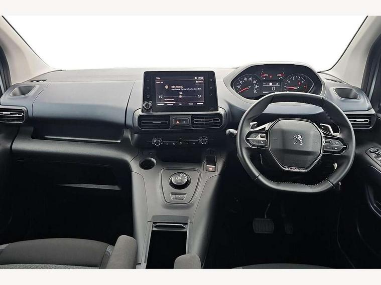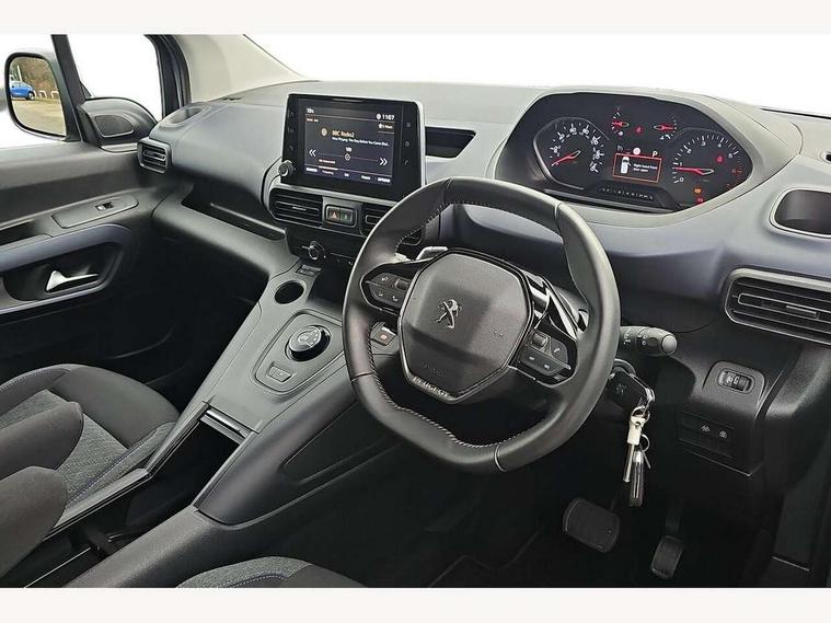 8" capacitive colour touch screen with mirror screen (Apple CarPlay and Android Auto), Analogic cluster, Bluetooth telephone facility, e-Call (emergency call), Multi function trip computer, PEUGEOT i-Cockpit with compact steering wheel, PEUGEOT i-Cockpit with head-up instrument panel, Rotary switch driving selector, Stop/start system, Voice control system, 6 speakers, DAB radio with buttons, MP3 connection, Steering wheel mounted controls, USB socket, USB socket at the back, Aluminium roof bars, Black bumpers, Body colour door handles, Contrasting wheel arch trim, Dark tinted rear side windows + tailgate window, Electric front windows, Electric heated door mirrors, Electric rear windows, Front and rear scuff plates, Front fog lights, Front windscreen wiper with multispeed setting, Gloss black door mirrors, Halogen headlights, Headlights left on audible warning, LED daytime running lights, LED rear signature claw effect lights, Opening rear tailgate window, Power folding door mirrors, Radiator grille in 3D stamped effect and chrome surround, Rear windscreen wiper triggered automatically in reverse gear, Tailgate with heated rear windscreen and wiper blade, Two glazed sliding side doors, 12V socket, 2 heights parcel shelf, Air vents in 2nd row with fan strength command and USB socket, Door sill protectors, Driver and passenger dashboard mounted cup holders, Electric power steering with reach and rake adjustable steering column, Fixing rings x 4 in load area, Foldable passenger seat with under-seat storage and elbow rest, Front interior light with 2 reading spotlights and rear interior light with timer, Full width overhead storage shelf, Gear shift indicator, Height adjustable drivers seat with lumbar support, High console between front seats with storage compartment, Isofix child seat fittings x 3 in the second row, Leather steering wheel with integrated controls, Puma cloth upholstery, Tray tables at the back of the front seats, Under-seat storage and elbow rest for driver seat, Upper glove compartment, Visibility pack - Rifter, 3 rear 3 point seatbelts, ABS (Anti-lock Braking System) with EBD (Electronic Braking Distribution) and EBA (Emergency Braking Assistance), Adaptive driver and front passenger airbags with passenger airbag deactivation function, Child locking functionality on rear doors, Driver/front passenger side airbags, Electronic parking brake, ESP (Electronic Stability Program) + Hill Start Assist, Front and rear curtain airbags, Front and rear disc brakes, Front and rear seats seatbelt unfastened on the move audible and visual alert, Front optimised safety headrests and 3 x rear retractable headrests with height adjustable, Front three point retractable seatbelts with force limiters, Tyre pressure sensor, Auto door lock when driving, Automatic hazard light activation upon heavy brake application, Deadlocks, Electronic immobiliser, Remote central locking, Picasso blue interior ambiance, 16" Taranaki anthra grey alloy wheels, Tyre puncture repair kit,