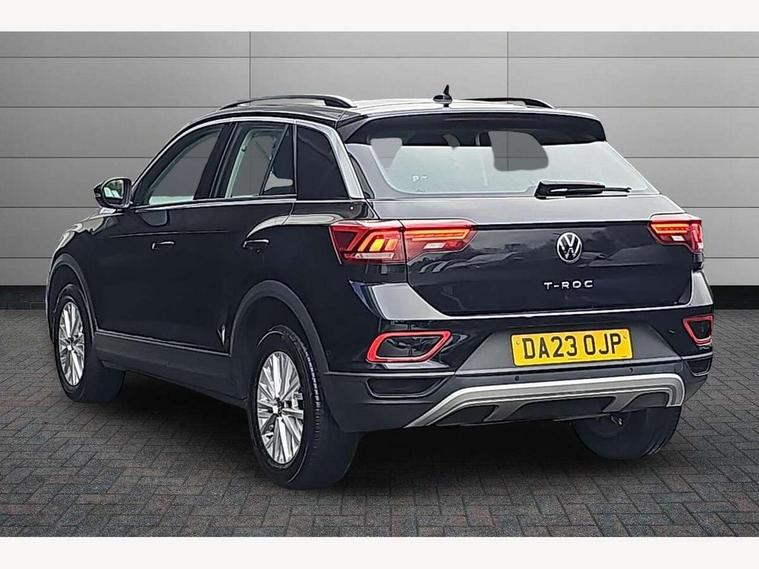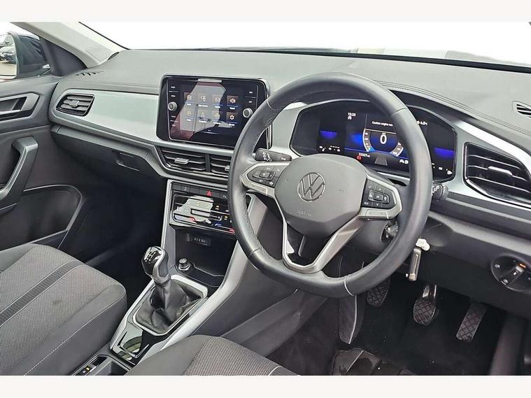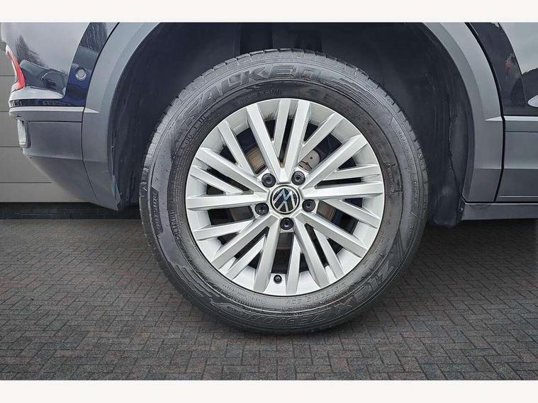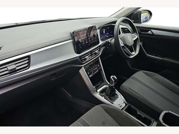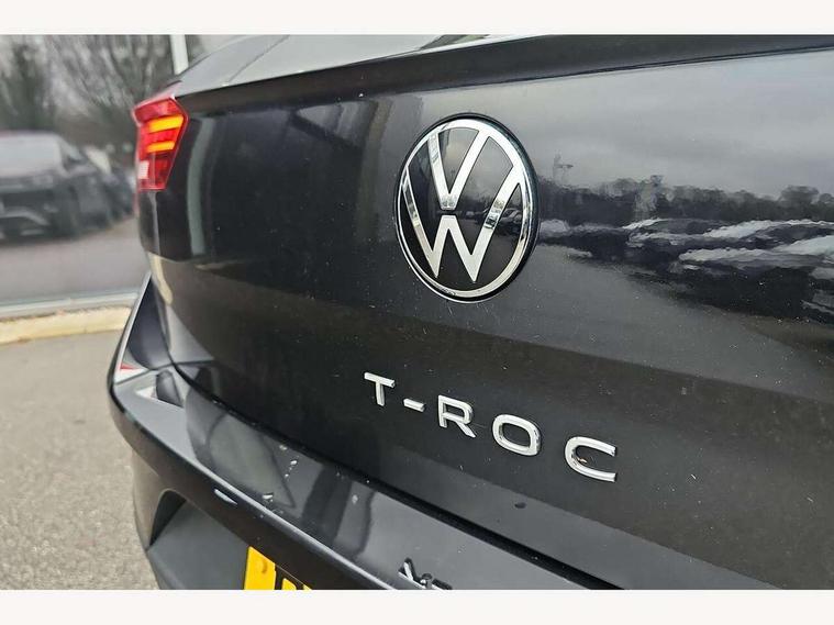 Bluetooth mobile phone interface, Driver alert system with fatigue detection, Driver tips and journey analysis, Emergency call service, Lane keeping system Lane Assist, Modified key software - reduce switch off time for key status change to Long no motion, Online services, Park assist including front and rear parking sensors, Power assisted speed sensitive steering, Service interval indicator, Tailgate/trunk lid release from outside, Think blue trainer driver tips and journey analysis, Warning sound and light for front seatbelts unfastened, Wireless app connect, Battery regeneration during braking, Front shock absorption, Rear shock absorption chassis with increased ride height, Start/stop function with battery regeneration, DAB Digital radio, Diversity antenna for FM reception, Front and rear 6 speakers, Music playback - MP3, WMA and AAC files, Premium USB cable in choice of either Apple or Android smartphone compatibility, SD card slot, Simultaneous pairing of 2 compatible mobile devices, Title and cover art display, We Connect and We Connect Plus functionality, 3rd brake light, Auto dimming interior rear view mirror, Automatic hazard lights activation under emergency braking, Automatic headlight control with LED separate daytime running lights with coming/leaving home function, Black roof rails, Body coloured bumpers and radiator grille with chrome trim and front fog lamps with chrome bezel, Body coloured exterior mirror housings and door handles, Extended roof spoiler, Exterior mirrors aspherical on driver side, convex on front passenger side, External USB type C socket and charging sockets, Front windscreen wiper with intermittent wipe and 4 position delay, Heated rear window, LED Headlights, LED rear combination lamps, LED rear number plate lights, LED tail lamp rear comination lamps, Power windows with comfort operation and circuit breaker, Rain sensor, Rear exhaust tailpipe, Rear fog light on one side and reversing lights on both sides, Rear side wing doors, Rear wash/wipe with intermittent wipe setting, Remote electrically foldable door mirrors, puddle lights and reverse activated passenger's door mirror, 12V power socket in centre console, 3 rear head restraints, 3 seat bench in 2nd row, 4 load lashing points in luggage compartment, Air care climatronic air conditoning system with active combination filter and 2-zone temperature control, Ambient lighting with mirror logo projection, Cloth upholstery, Door and side trim panel in cloth, Drawer under drivers seat, Driver/front passenger seat height adjustment, Front centre armrest, Front comfort sports seats, Front cupholders x 2, Front reading light, Instrument lighting, white adjustable panel illumination, Interior light delay, Isofix child seat preparation, Leather gearshift handle, Load-through provision with cup holder when folded down ('Unsplit rear seat bench, split folding backrest, with centre armrest), Luggage compartment lighting, Lumbar support for driver's and front passengers seat, Non-folding front passenger seat backrest, Single front passenger seat, Storage compartment in left and right luggage area, Storage compartment in rear doors, Storage compartments in driver and front passenger doors, Sunvisors with illuminated vanity mirrors, Variable boot floor, height adjustable and removable, Driver assistance pack without proactive passenger protection - T-Roc, 3 point height adj front seatbelts + pretensioners, 3 point seatbelts in outer rear with ECE label, ABS, Child locks on rear doors, Driver and front passenger airbag with front passenger airbag deactivation, Driver and front passenger safety-optimised head restraints, Drivers seatbelt reminder, Electronic parking brake, Electronic Stability Control (ESC) inc EDL (Electronic Differential Lock) and ASR (Traction Control), Front and rear passengers curtain airbag system including front side airbags, Front assist with city emergency braking and pedestrian monitoring, Front disc brakes, Front seat side impact airbags, Hill start assist, Predictive pedestrian protection, Rear disc brakes, Single tone horn, Tyre pressure loss indicator, Volkswagen roadside assistance, Alarm with interior protection, Anti-theft alarm system with interior monitoring, backup horn, and towing protection, Remote central locking with SAFELOCK, radio remote control with 2 remote control folding keys, Pewter matt decorative inserts for intrument panel, centre console and door panels at the front, Trims for alloy wheels,