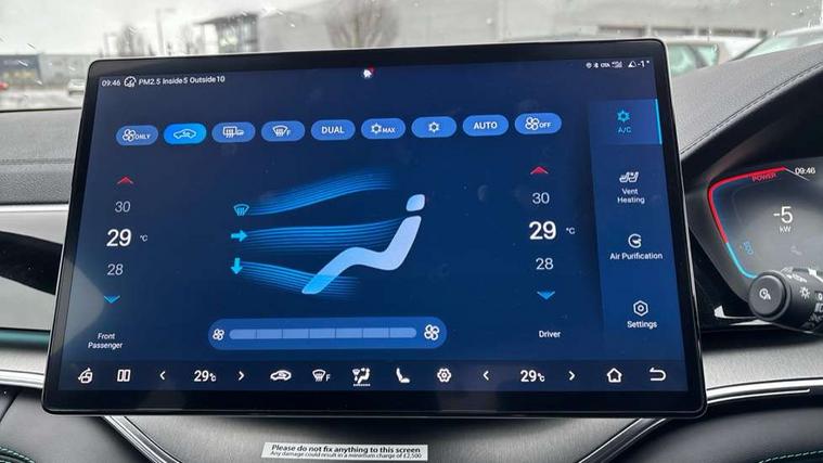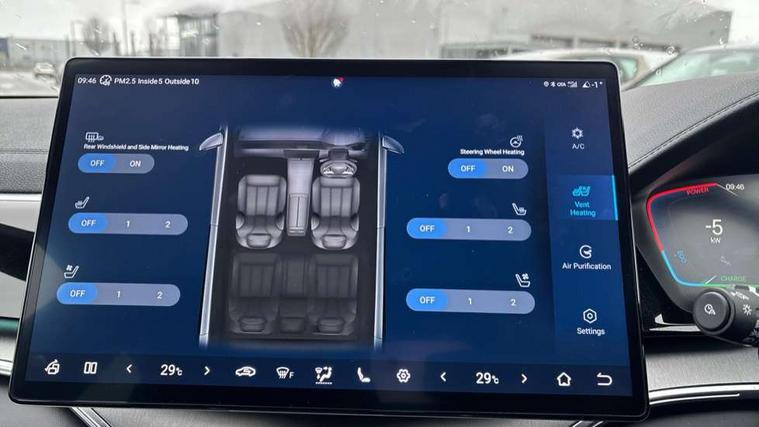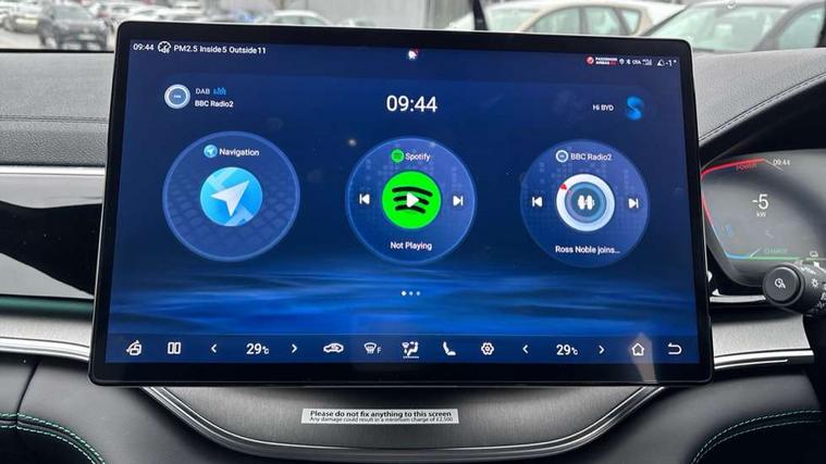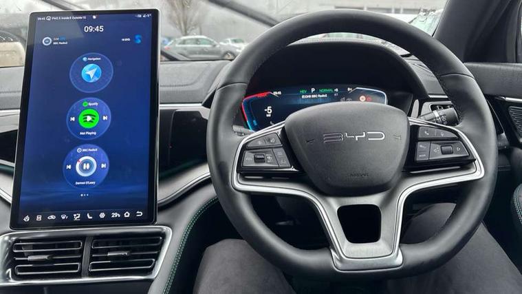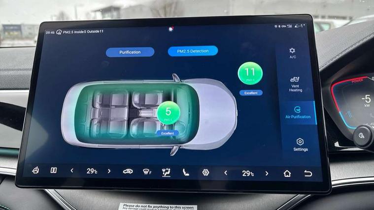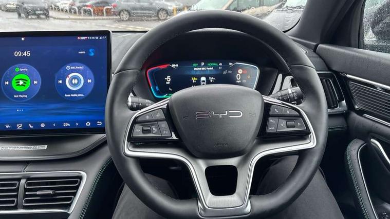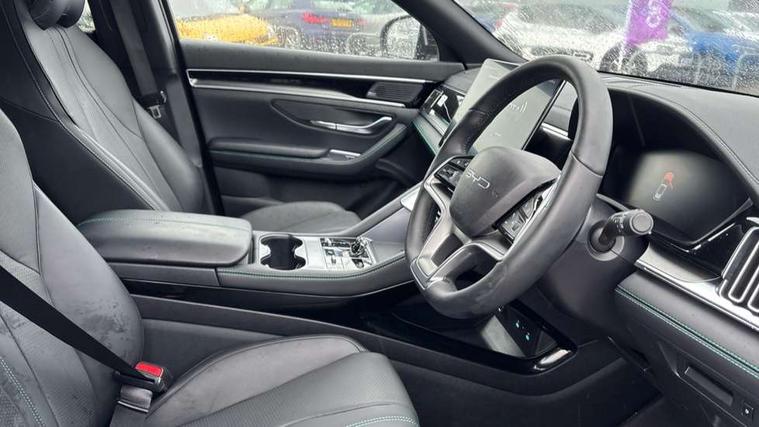 12.3" TFT full LCD instrument panel, 360 camera, Adaptive Cruise Control (ACC) and Intelligent Cruise Control (ICC), Automatic vehicle hold, Blind spot detection, BYD voice control assistant "Hi, BYD", Controller Deceleration Parking (CDP), Drive mode select (Eco, normal, sport, snow), e-Call (emergency call), Electric tailgate release, Emergency Lane Keeping Assist (ELKA), Forward collision warning, Front and rear parking sensors, Front cross traffic alert and front cross traffic brake, Head up Display, Indirect driver fatigue management, Intelligent Speed Limit Control (ISLC), Keyless system entry and start, Lane change assist, Lane Departure Assistant (LDA) and Lane Departure Warning (LDW), Lane departure prevention, PAS, Predictive collision warning, Rear collision warning, Rear cross traffic alert and rear cross traffic brake, Rollover Control System (RMI), Smartphone wireless charging, 2 x 15W, Traffic sign recognition (TSR), Vehicle-to-Load (V2L) function, 11kW on board charger, Mode 3 Type 2 charging cable (3 phase), V2L (Vehicle to load) power strip - Type F, 15.6" Electrically rotatable touchscreen, FM/DAB+ radio, Front USB ports, 1 x 18W Type C, 1 x 60W Type C, Infinity sound system with 10 speakers, Rear USB ports, 2 x 18W Type C, Aluminium roof rails, Auto dimming interior rear view mirror, Auto headlamps (on/off), Dynamic welcome lights, Electric folding and heated door mirrors, Emergency tow hook, Exterior mirror footlights, Follow me home headlights (The headlights turned on in advance and delayed off function), Front windscreen, UV protection, thermal insulation and sound proofing, High beam assist, LED 3rd brake light, LED daytime running lights, LED Headlights, LED taillights, One touch electric front/rear windows with pinch protection, Panoramic sunroof with anti-pinch sensor and electrically adjustable sunshade, Rain sensor windscreen wipers, Rear fog lights, Rear side wing doors, Rear window and rear windscreen with tinted glass, Rear wiper, 12V power outlet, 3 seat bench in 2nd row, 8 way electrically adjustable drivers seat, Adjustable rear headrests, Boot parcel shelf, Driver and passenger sunvisors with illuminated vanity mirrors, Driver seat memory function, Front centre armrest with 2 cupholders, Front LED reading lights, Front passenger seat with 4-way electric adjustment, Front seat footlights, Heat pump, Heated front seats, Heated steering wheel, Integrated headrest in front seats, ISOFIX and i-Size for front passenger and outer rear seats, LED front door lights, Nylon floor mats, PM2.5 air filter, PM2.5 air purification system, Rear air vents, Rear armrest with 2 cupholders, Rear side LED reading lights, Rhythm-reactive multi-colour ambient lighting, Single front passenger seat, Split folding rear seats - 40/60, Vegan leather multifunction steering wheel, Vegan leather upholstery, Ventilated front seats, 3x3 point rear seatbelts, ABS/EBD, Automatic emergency braking system, Brake override system (BOS), Child presence detection, Comfort stop, Door open warning, Driver airbag, Electric parking brake, Force limiting pre-tensioned front seat belts, Front centre airbag, Front passenger airbag, Front passenger airbag deactivation, Front side airbags, Hill descent control, Hill hold control, Hydraulic Brake Assist (HBA), Hydraulic brake boost, Mechanical child safety lock, Rear middle seat force limiting seat belt, Rear seat belt pretensioners, Reflective vest, Side curtain airbags, Traction control system (TCS), Tyre pressure monitoring system (TPMS), Vehicle Dynamics Control System (VDC), Warning triangle, 2 x Smart keys, Anti theft alarm system, Automatic door locking, 19" Bi-colour alloy wheels, Tyre nut covers remover, Tyre repair kit,