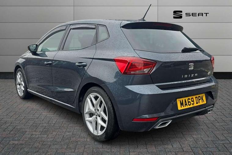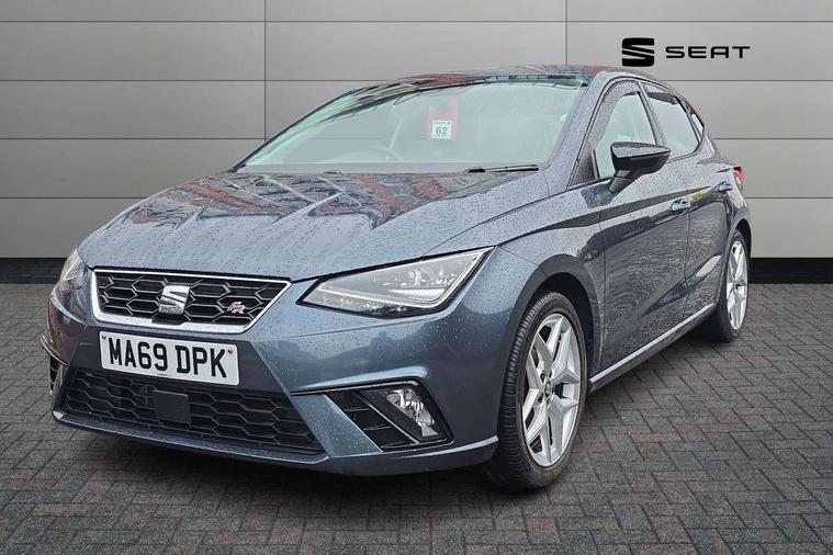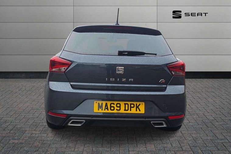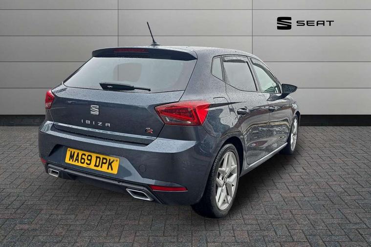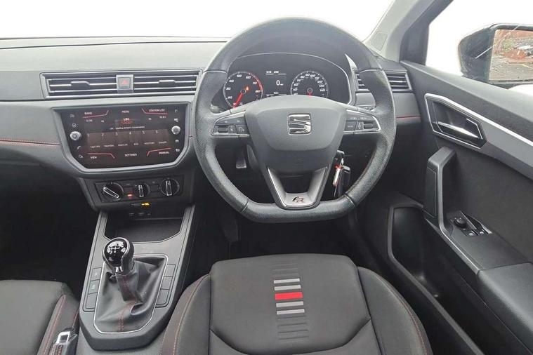 'Lights On' Reminder warning buzzer, Bluetooth Handsfree Phone Connection, Cruise control, Digital clock, Full Link Smartphone Integration with Mirror Link, Apple Car Play, Google Android Auto, Low fuel warning light, Outside temperature gauge, Power Steering, Satellite navigation system with 3D mapping, 8" touch screen, voice control and additional USB port, SEAT Drive profile, SEAT logo boot release, Trip computer, Sports suspension, 6 speakers, Auxiliary input socket, CD player, Digital Audio Broadcast (DAB) Tuner, Radio/MP3 player, SD card slot, SEAT USB media cable, Steering wheel mounted controls, USB port, Anti theft roof antenna, Auto dimming rear view mirror, Automatic headlights, Automatic rain sensing wipers, Body colour bumpers, Body colour door handles, Brilliant black door mirrors, Chrome front grille frame, Chrome grille, Coming/leaving home lighting function, Cornering front fog lights, Dark tinted rear windows, Electric folding door mirrors, Electric front windows, Electric headlight adjustment, Electrically adjustable and heated door mirrors, Exclusive FR rear bumper, Full LED headlights, LED daytime running lights, LED tail lights, Rear fog lights, Twin exhaust pipes, 3 rear headrests, 60/40 split folding rear seat, Air conditioning, Door and steering wheel ice metal decorative inserts, Driver's sunvisor with ticket holder/vanity mirror, Dust/pollen filter, Flat bottomed perforated leather steering wheel with red stitching and FR logo, Front courtesy lights, Front cupholders x 2, Front reading lights, Gear shift indicator, Glovebox, Height adjustable driver's seat, Height adjustable front/rear head restraints, Height adjustable passenger seat, Height/reach adjust steering wheel, Illuminated boot, Instrument lighting with brightness control, Leather dashboard, Leather handbrake, Multi-colour ambient interior lighting, Nora cloth upholstery, Passenger sunvisor, Rear top tether child seat ISOFIX attachment, Sports seats, Full LED headlight pack - Ibiza, 3 point seatbelts on all 3 rear seats, ABS, Active front headrests, Child locks on rear doors, Curtain airbags, Driver/Front Passenger airbags, ESP+EBA, Front assist (AEB), Front passenger airbag deactivation, Front side airbags, Hill hold control, Multi-Collision braking, Seatbelt warning, Tiredness recognition system, Tyre pressure monitoring system, Electronic engine immobiliser, Locking wheel bolts, Remote central locking + deadlocks, Volumetric alarm with back up horn, 17" Dynamic alloy wheels,