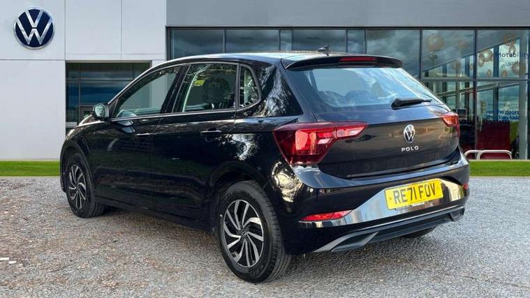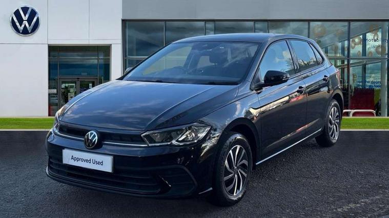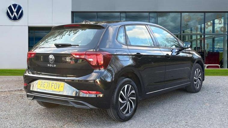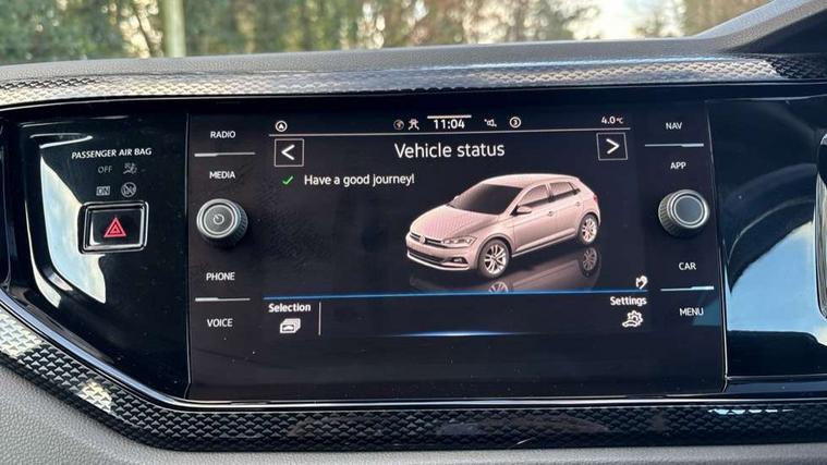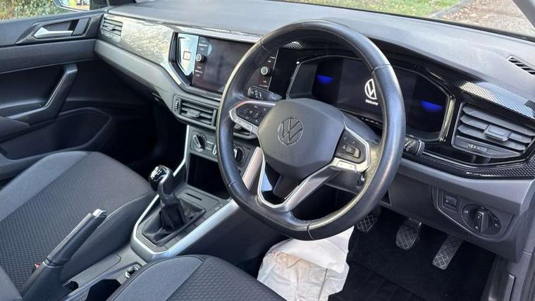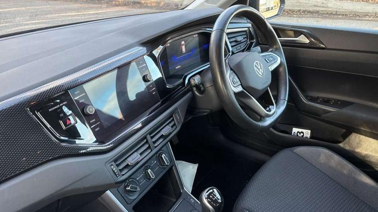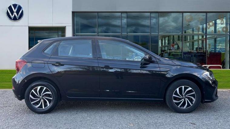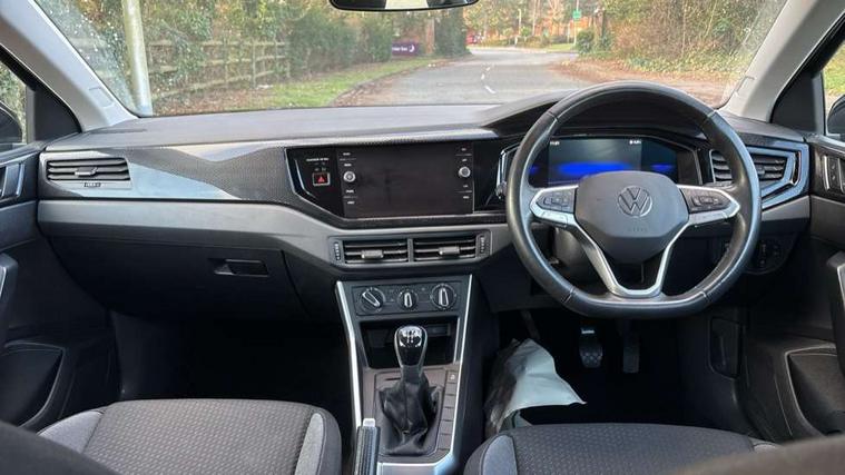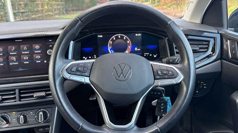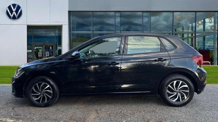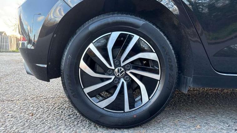 Adaptive cruise control without follow-to-stop and speed limiter, Bluetooth mobile phone interface, Driver alert system, Emergency call service, Front assist system, Power assisted speed sensitive steering, Preparation for We connect and We connect plus, Speedo and rev counter, electronic odometer, trip, service interval display and fuel gauge, Standard rear axle, Travel Assist - Lane keeping system and traffic jam assist, Travel assist including emergency assist, Trip computer, Warning signal and warning light for front and rear seatbelts not fastened, Washer fluid level indicator, Wireless app connect, Front wheel drive, Rear shock absorpion, Start-stop system with battery regeneration (recuperation - energy recovery during braking), DAB Digital radio, Diversity antenna for FM reception, Automatic dimming interior rear view mirror, Body colour bumpers, Body colour door handles, Body colour door mirrors, Electric front windows, Heat insulating darkened glass in side and rear windows, Heat insulating glass windscreen, Power folding adjustable/heated exterior mirrors and front passenger exterior mirror lowering function, Rain sensor, Rear electric windows, Rear fog light, Rear windscreen washer and wiper with interval delay, Third brake light, 12V power socket in centre console, 2 front and 2 rear reading lights, 2 USB-C ports in the front, 2 USB-C charging sockets on the center console in the rear, 3 rear head restraints, 60/40 split folding rear seat and rear seat bench not split, Ceramique headliner, Chrome plated radiator grille inserts, air vent surrounds and light switch surrounds, Door and side trim panel, Driver and front passenger seat height adjustment, Driver/passenger sunvisors with illuminated vanity mirrors, Front centre armrest, Front seat backrest storage pockets, Front standard seats, Handbrake lever handle in leather, Hartley/Thomas cloth upholstery, Isofix child seat preparation easy-fit (for two outer rear seats, and front passenger seat) compatible with I-size, Leather trimmed gear knob, Luggage compartment cover, Luggage compartment floor, Luggage compartment lighting, Multifunction steering wheel, Standard pedal cluster, Light and vision pack - Polo, 3 point height adj front seatbelts + pretensioners, 3x3 point rear seatbelts, ABS, Driver and front passenger airbag with front passenger airbag deactivation, Drivers and front passengers safety optimised head restraints, ESC (Electronic stability control) + EDL (Electronic Differntial lock) and ASR (Traction control), Extended and predictive pedestrian/ cyclist protection, Front curtain and side airbags with center airbag, Front disc brakes, Hill hold control, Rear drum brakes, Single tone horn, Tyre pressure loss indicator, Alarm with interior protection, Anti-theft alarm system with interior monitoring, backup horn, and towing protection, Anti-theft wheel bolts, Electronic engine immobiliser, Lava stone black gloss/matt decorative inserts in dash and front door panels, Low rolling resistance tyres,