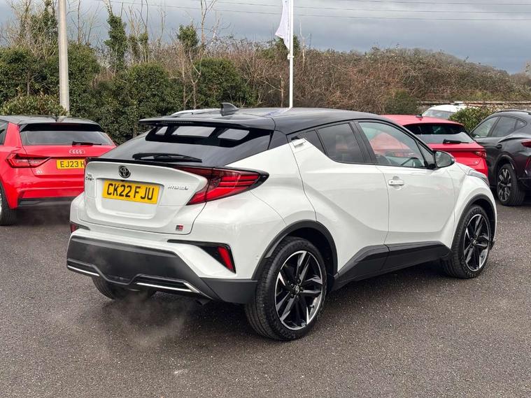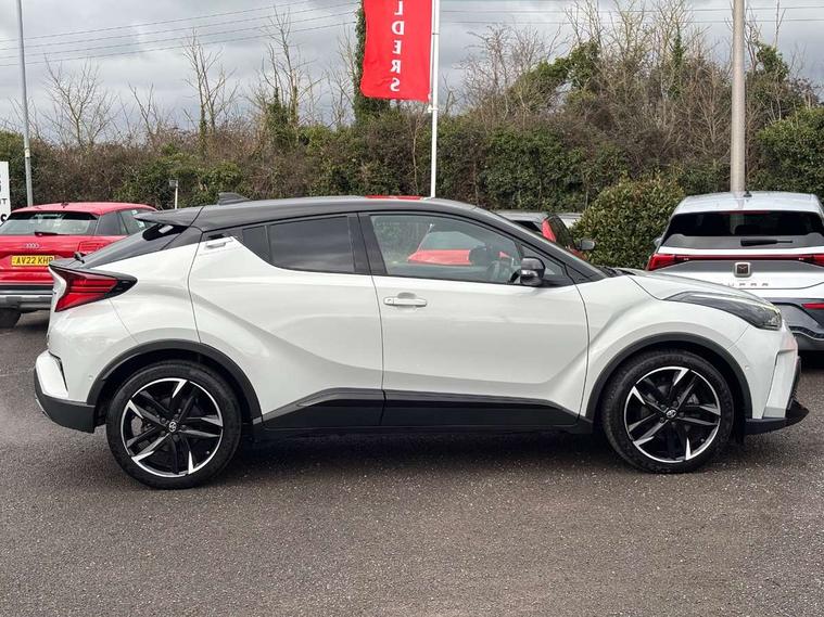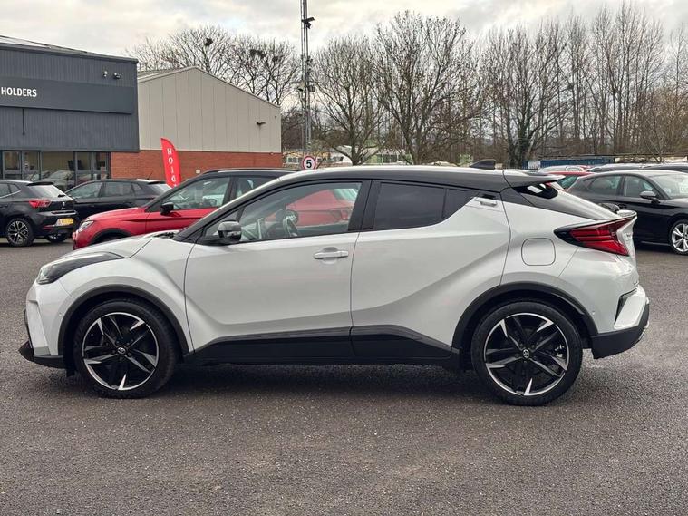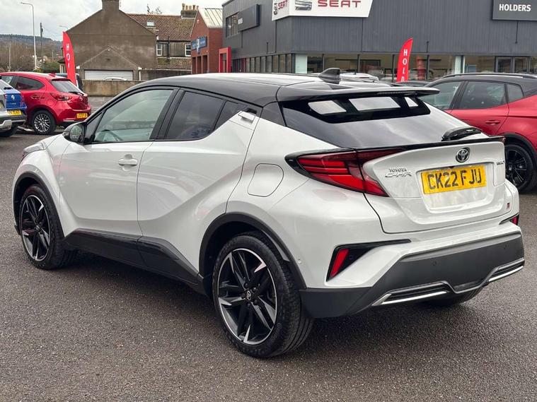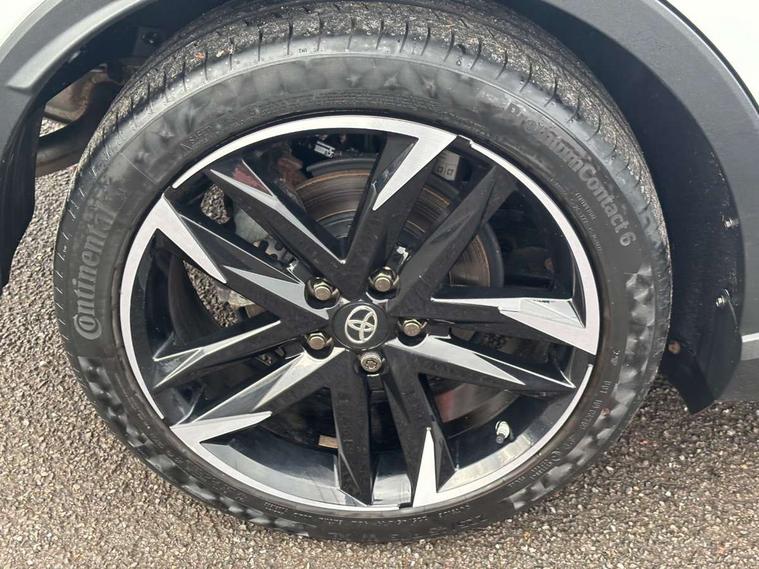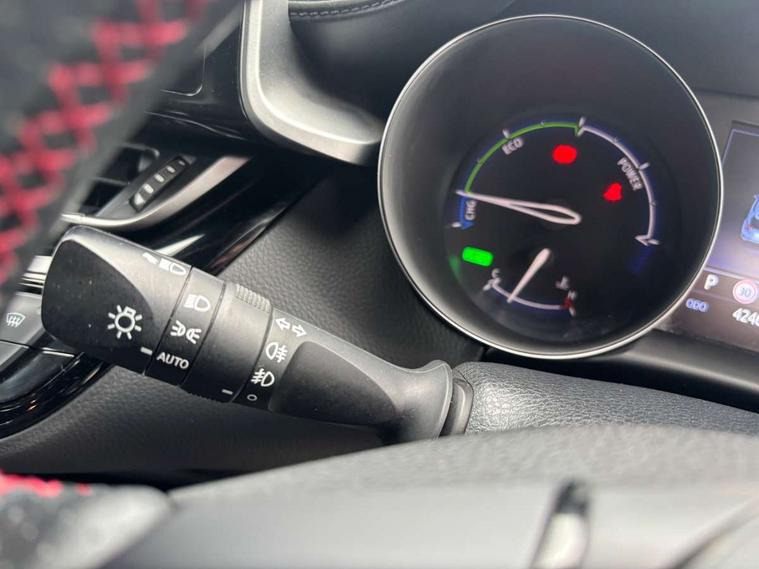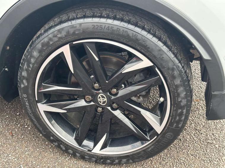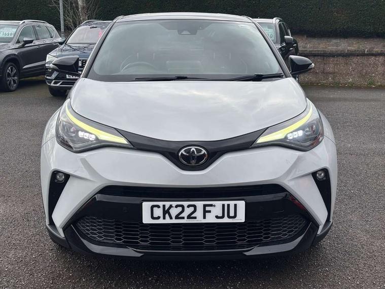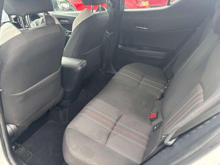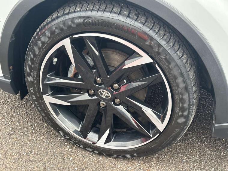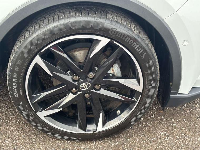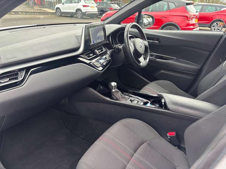 4.2" coloured TFT screen for multi-information display, Adaptive cruise control, Bluetooth connectivity, E-call, Electric power steering, Hybrid system indicator, Lane departure alert with steering control, Remote boot door release in cabin, Remote boot door release in key, Reversing camera, Road sign assist - RSA, Simple Intelligent parking assist, Touch 2 Go navigation system, Trip computer, Voice recognition, Vehicle Stability Control (VSC), 6 speakers, AM/FM radio, DAB Radio (Digital Audio Broadcasting), Toyota touch 2 multimedia system with 8" display, USB connector, Wi-fi connectivity, Adaptive front light system, Adaptive LED Headlights, Anti-jam protection on power windows, Auto high beam, Auto up and down function on all power windows, Automatic headlight levelling, Automatic headlights, Automatic headlights cut-off, Black and body coloured rear bumper, Black upper front grille, Body colour door handles, Body colour door mirrors, Body coloured front bumper, Boot door release with push button, Chrome front lower bumper, Electric heated door mirrors, Follow me home headlights, Front and rear power windows, Front spoiler lip in black, Honeycomb lower front grille, LED daytime running lights, LED fog lights, LED front light guide, LED High mounted stop light, LED rear brake lights, LED rear combination lights, Noise reduction layer on front windows and windscreen, Power adjustable door mirrors, Privacy glass, Rain sensor, Rear sequential indicators, Rear side wing doors, Rear spoiler, Rear tailgate, Rear window defogger, Rear window wiper, Shark fin antenna, UV-filter on driver and passenger windows, UV-filter on rear windows, 12v power outlet - front, 3 rear headrests, 3 seat bench in 2nd row, 3 spoke perforated leather steering wheel, 60/40 split folding rear seat, Adjustable rear headrests, Adjustable speed limiter switch on steering wheel, Assist grips front and centre pillar, Audio and telephone switches on steering wheel, Black front door assist grips, Blue ambient lighting on front cup holders, Blue ambient lighting on front doors, Boot light, Chrome interior door handles, Driver and front passenger personal light, Driver and front passenger Whiplash Injury Lessening seats, Driver and passenger seatback pockets, Dual zone automatic air conditioning, Fabric upholstery, Floor mats, Front cupholders, Front head restraints, Front sports seats, Glovebox with internal light, Hard tonneau cover, Heated driver and front passenger seats, Hooks for luggage holding net, Humidifying Nanoe air purifier, Illuminated entry system, Isofix attachments on outer rear seats, Leather gearshift, Light on driver sun visor, Light on passenger sun visor, Manual telescopic steering wheel, Manual tilt steering wheel, Manually height adjustable driver seat, Manually height adjustable front passenger seat, Manually reclining driver seat, Manually reclining front passenger seat, Manually sliding driver seat, Manually sliding front passenger seat, Microphone on front personal light, Mirror on driver sun visor, Mirror on passenger sun visor, Multimedia switches on steering wheel, Pollen filter, Power adjustable lumbar support on driver seat, Shopping bag hooks, Single front passenger seat, Slow opening on lower glovebox, Voice recognition switch on steering wheel, Tech with parking sensor pack - C-HR, 16 Disk front wheel brake, 3x3 point rear seatbelts, ABS+EBD+Brake assist, Electronic parking brake, Front and rear seatbelt reminder, Front passenger airbag on/off switch, Hill start assist control (HAC), Pre collision system with pedestrian detection, Pre-tensioners and force limiters, Rear door child safety locks, SRS Airbags - Driver + Front passenger, front side, front and rear curtain and driver's knee airbags, Toyota safety sense, Tyre pressure monitoring system, Acoustic vehicle alert system (AVAS), Glass-breaking alarm sensors, Immobiliser, Intrusion alarm, Intrusion sensor, Motion sensor alarm, Power passenger window lock, Remote central locking, Black lower dashboard, Black upper dashboard, Piano black console, Silver deco line on upper dashboard, 19" Black machined alloy wheels, Tyre repair kit,