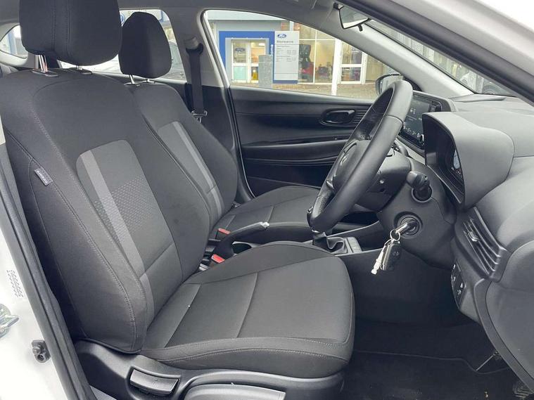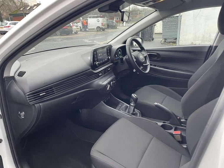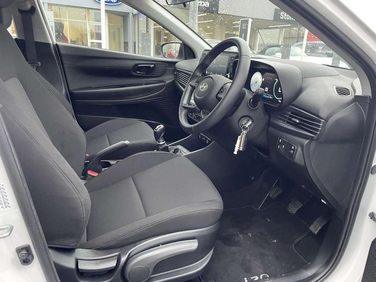 10.25" digital supervision cluster, 2nd Gen eCall, 8" Touchscreen with DAB, Apple car play/Android Auto, Cruise control + speed limiter, Forward collision assist with car, pedestrian and cycle detection, Intelligent speed limit warning, Lane follow assist, Lane keep assist, PAS, Rear parking sensor, Rear view camera with dynamic guidelines, USB C port front, 3rd brake light, Dusk sensor, Electric adjustable heated door mirrors, Front grille mesh pattern design, High beam assist, LED daytime running lights, LED Headlights, LED taillights, Rain sensor, Rear side wing doors, Rear wiper, Repositioned flat metal hyundai emblem, 3 seat bench in 2nd row, Adjustable head restraints, Air conditioning, Cloth upholstery, Floor mats, Leather steering wheel, Single front passenger seat, 3x3 point rear seatbelts, ABS with front and rear diagonally split, Autonomous emergency braking, Child locks on rear doors, Front ventilated disc brakes, Rear solid disc brakes, Tyre pressure monitoring system, 16" alloy wheels, Tyre repair kit,