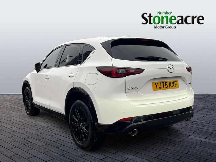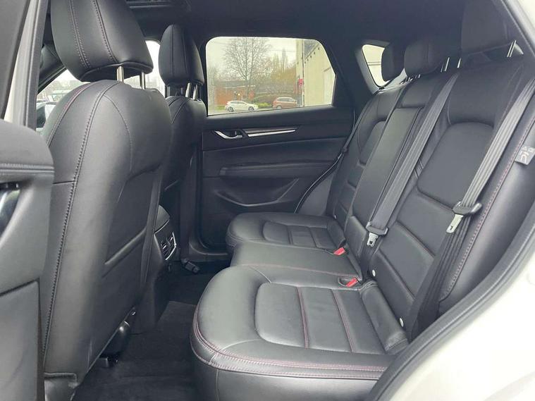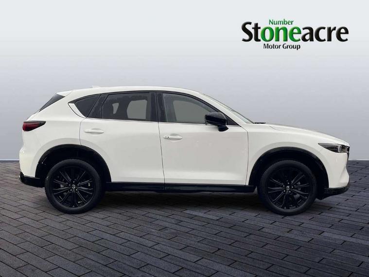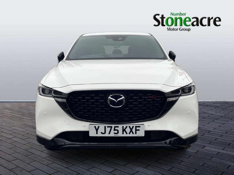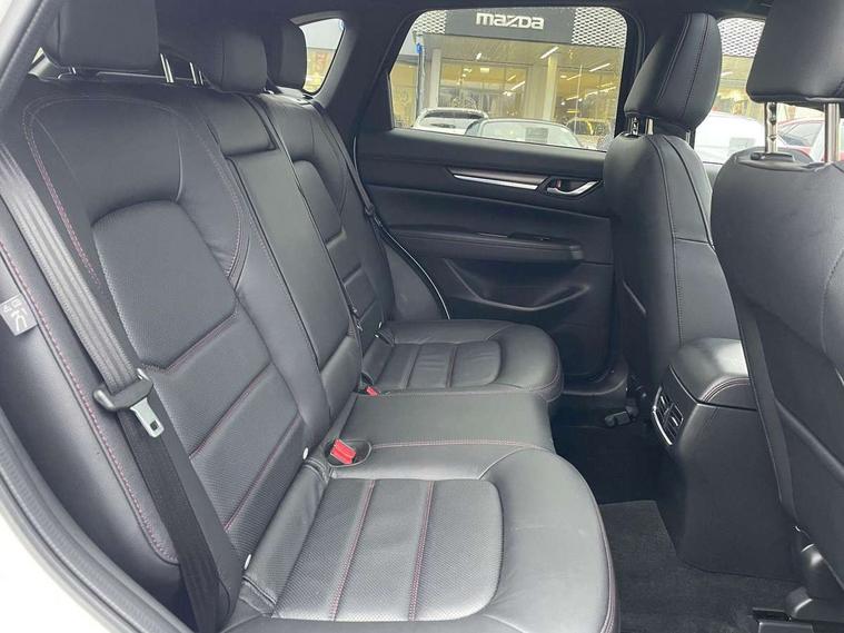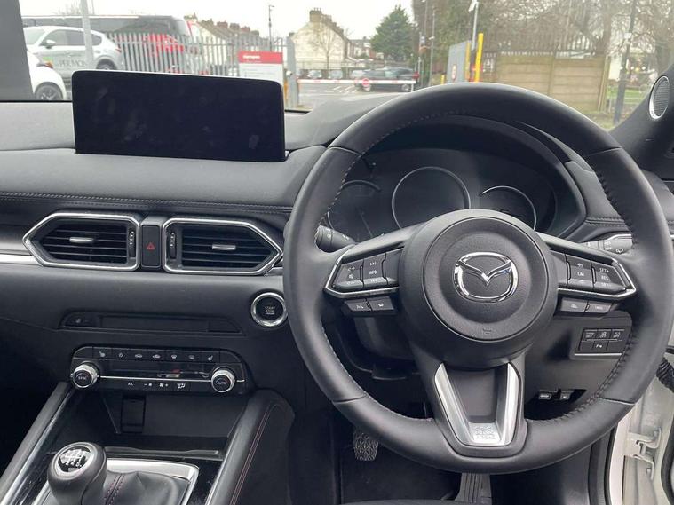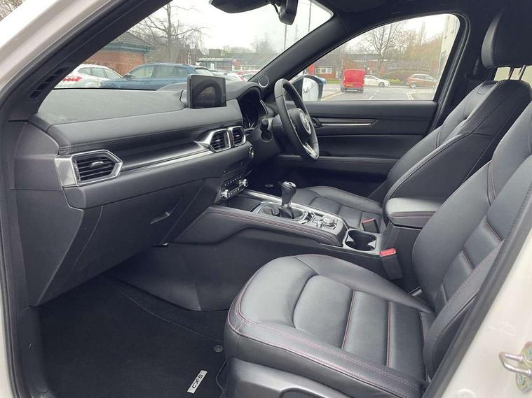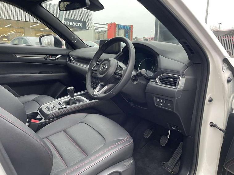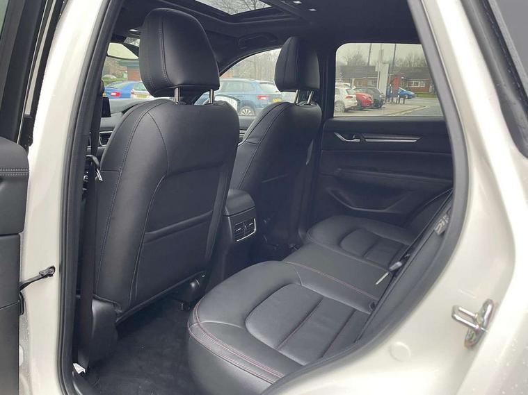 10.25" display with Mazda Connect infotainment, 7" colour TFT display, Advanced blind spot monitoring, Bluetooth connectivity with voice control, Collision prevention assist, Connected services, Cruising Traffic Support, Electric power steering, Emergency stop signalling system, Engine start/stop button, Forward collision warning, Front and rear parking sensors, Integrated navigation system, Intelligent speed assist, Lane departure warning system, Lane keep assist, Power liftgate, Qi wireless phone charging, Radar cruise control, Rear cross traffic alert, Reversing camera, Service indicator, Traffic sign recognition (TSR), Trip computer, Windscreen projected colour active driving display (HUD) with memory, Wireless apple car play/android Auto, Cylinder Deactivation, i-stop, AM/FM radio, Bluetooth audio streaming, Bose premium sound system with 10 speakers, DAB Digital radio, Multimedia Commander including separate volume dial, Steering wheel mounted audio controls, Adaptive front lighting system, Auto dimming rear view mirror, Automatic headlights, Black honeycomb door trim decoration panel, Black honeycomb interior decoration panel, Body colour roof spoiler, Coming/leaving home lighting function, Door mirror integrated indicators, Dual large chrome tailpipes, Dusk sensitive headlamps, Electric front/rear windows with one touch auto up/down, Front grille in gloss black finish, Front grille in gloss black with red accent + gloss black signature wing, Gloss black B and C pillars garnish, Gloss black door mirrors, Gloss black front and rear lower bumper mouldings, Gloss black tire arch and side mouldings, High beam assist, Intermittent rear wash/wipe, LED auto levelling, LED daytime running lights, LED front fog lights, LED Headlights, LED third brake light, Power folding and heated door mirrors, Power tilt/slide sunroof, Privacy glass (rear side windows only), Rain sensing front wipers, Rear side wing doors, Red front grille accent, Red stitching and accents on door trim, knee pad, console lid, steering wheel, shift boots, Scuff plates, Shark fin antenna, Signature LED rear combination lights, Variable intermittent front wash/wipe, Windscreen wiper de-icer, 12v electrical power outlet, 3 seat bench in 2nd row, 3 stage heated front seats, 40:20:40 Karakuri fold-flat seat system, 6 way electric adjustable passenger seat, 8 way electric driver seat with lumbar support + memory, Black roof lining, Cargo room flat floor board with waterproof undertray, Driver seat power slide, recline and height adjustment, Driver, Front passenger and two rear grab handles with coat hooks, Driver/passenger front seatback pockets, Driver/passenger sunvisors + illuminated vanity mirrors (drivers with ticket holder), Dual zone climate control, Folding centre armrest with 2 cup holders, Front and rear door pockets, Front centre storage with two cupholders, Front passenger seat power slide, recline and height adjustment, Gear shift indicator, Heated steering wheel, Humidity sensor, Illuminated glovebox, Interior dome light with integral spotlight, ISOFIX child seat anchorage points attached on outer rear seats, Karakuri tonneau cover, Leather upholstery, Leather wrapped steering wheel and gear knob, Luggage compartment LED lighting, Luggage compartment power outlet, Rear air vents, Rear headrests, Rear seat recline, Roof mounted sunglasses holder, Single front passenger seat, Three height adjustable head restraints, Tilt/height adjustable steering wheel, USB Connectivity (2x front Type-C, 2x rear Type-B), White interior LED illumination lighting, 3 point front seatbelts with pre-tensioners, 3 rear 3 point seatbelts, ABS, Advanced Smart City Brake Support - SCBS, Child locks on rear doors, Driver and front passenger side airbags, DSTC-Dynamic Stability and Traction Control, Dual front airbags, Electronic brake force distribution, Electronic parking brake with auto hold, ESP, Front and rear curtain airbags, Front passenger airbag deactivation, G-Vectoring control, Hill hold assist, Seatbelt reminder front and rear, Single stage passenger airbags, Smart brake support with forward obstruction warning, Tyre pressure monitoring system, Automatic door locking when moving off, Deadlock, Immobiliser, Power door locks, Remote central locking, Smart keyless entry, Thatcham Cat.1 alarm, 19" Black alloy wheels, Tyre repair kit,