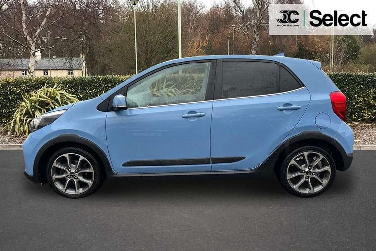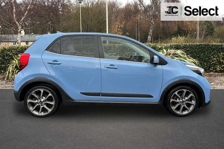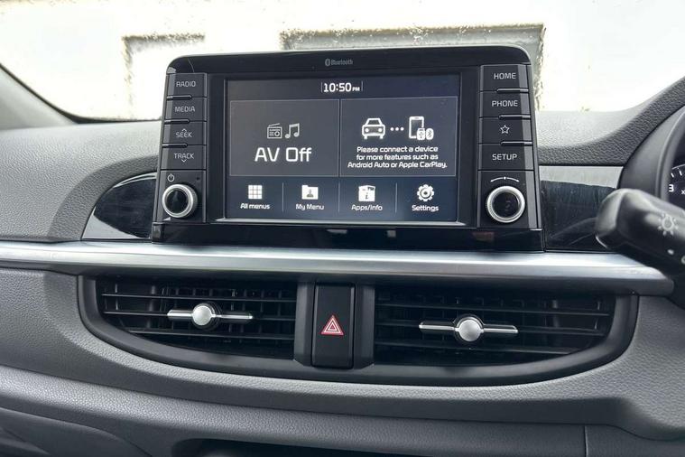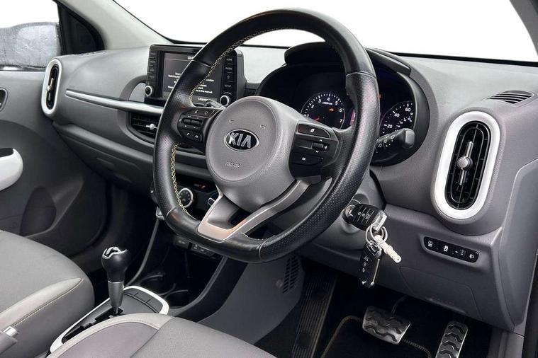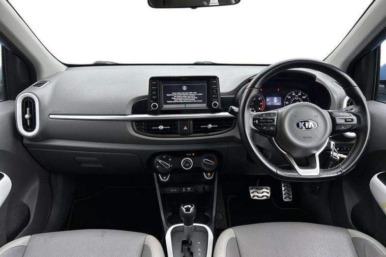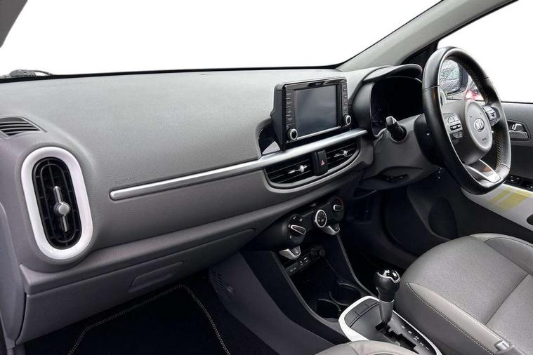 7" touch screen, Apple car play/Android Auto, Digital clock, Emergency stop signalling system, External temperature gauge, PAS, Rear parking sensors, Reversing camera, Tachometer, Trip computer, Voice control system, 6 speakers, Bluetooth connectivity including audio streaming, DAB Digital radio, Steering wheel mounted controls, USB and auxiliary socket, Automatic headlights, Black bodyside mouldings, Black grille with chrome surround, Black wheel arch cladding, Body colour bumpers, Body colour door handles, Body colour door mirrors, Chrome side window trim, Day/night rear view mirror, Electric adjustable/heated/folding door mirrors, Front and rear electric windows, Front fog lights, Headlamp levelling, Heated rear window, LED daytime running lights, LED rear lights, Privacy glass, Projector headlamps, Rear wash/wipe, Silver skid plates, Twin exhaust pipes, Variable front intermittent wipers, Welcome home function, 12V power point front, 60/40 split/folding 2nd row of seats, Assist grips, Centre console storage and sliding armrest, Coat hooks, Cupholders in centre console, Driver seat height adjust, Driver's sun visor with vanity mirror, Faux leather upholstery, Front interior light, Glovebox, Height adjustable front seat head restraints, Height adjustable rear seat head restraints (x2), Isofix child seat attachment, Leather steering wheel and gear knob, Load area light, Manual air conditioning, Passenger front seat pockets, Passenger sunvisor with vanity mirror, Rear parcel shelf, Satin chrome interior door handles, Slide/reclining front seats, Stainless steel pedals, Tilt adjustable steering wheel, Advanced Driver Assistance Pack - Picanto, 3x3 point rear seatbelts, ABS/EBD, Automatic unlocking of doors in case of impact, Curtain airbags, Dual front airbags, ESC + BAS + VSM + HAC, Front seatbelt pretensioners + load limiters, Front side airbags, Height adjustable front seatbelt anchors, Hill start assist, Passenger airbag deactivate switch, Rear child proof door locks, Seatbelt warning, Side impact protection, Traction control, Tyre pressure monitoring system, Anti theft alarm, Engine immobiliser, Folding key, Locking wheel nuts, Remote central door locking, Speed sensitive auto door locking, High gloss black centre fascia, 16" alloy wheels, Tyre repair kit,