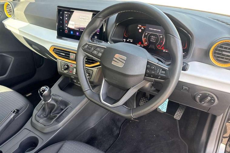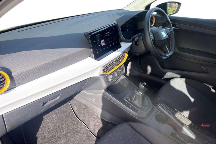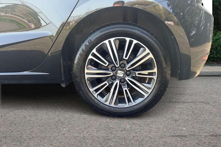 'Lights On' Reminder warning buzzer, 8" Digital cockpit, 9.2" touchscreen navigation system with type C USB socket, Voice control and DAB/AM/FM radio, Auto start and stop system, Bluetooth audio streaming with handsfree system, Cruise control, Digital clock, E-call, Full link smartphone integration with mirror link, wireless apple carplay, Google android auto + USB Type C cable for apple and android devices, Lane assist, Low fuel warning light, Outside temperature gauge, Power Steering, Rear parking sensor, Seat connect plus with safety, service, remote and online, SEAT logo boot release, Speed limiter, Traffic sign recognition, Trip computer, Comfort suspension, 6 speakers, Auxiliary input socket, Radio/MP3 player, SD card slot, Steering wheel mounted controls, Anti theft roof antenna, Body colour bumpers, Body colour door handles, Body colour door mirror caps, Dimming interior rear view mirror, ECO LED automatic headlights and LED daytime running lights, Electric front windows, Electric headlight adjustment, Electrically adjustable door mirrors, Front/rear fog lights, Halogen tailights, Rain sensor, Rear side wing doors, Rear wiper, Third brake light, 3 seat bench in 2nd row, 60/40 split folding rear seat, Air conditioning with dust and pollen filter, Chrome interior detailing and grey headlining, Cloth upholstery, Comfort seats, Front courtesy lights, Front cupholders x 2, Front reading lights, Gear shift indicator, Glovebox, Height adjustable front and rear headrests (five), Height adjustable front seats, Height/reach adjust steering wheel, Illuminated boot, Instrument lighting with brightness control, Isofix, Leather multifunction flat bottomed sports steering wheel, Passenger sunvisor, Single front passenger seat, Sunvisors with mirror and driver side card holder, Safety and driving pack (S) - Ibiza, 3 point seatbelts on all 3 rear seats, ABS, Active front headrests, Child locks on rear doors, Electronic stability control, Energy recovery system, Front assist forward collision warning and autonomous emergency braking, Front driver and passenger side airbags with curtain airbag and front passenger airbag deactivation, Hill hold control, Multi-Collision braking, Seat belt reminder for front and rear seats, Tiredness recognition system, Tyre pressure monitoring system, Electronic engine immobiliser, Locking wheel bolts, Remote central locking + deadlocks, 16" Design machined alloy wheels in Nuclear grey,