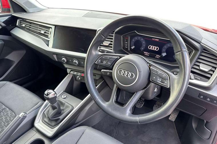 10.25" Digital instrument cluster display classis style instrument dials + speed, odometer, time, outside temperature, telephone menu + fuel level warning, Audi drive select - power steering assistance + engine, Audi smartphone interface with connect compatible smartphone via USB directly MMI display + Nav, music, third party apps controlled via MMI controller, Automatic start/stop system, Bluetooth interface, Cruise control, Driver's information system, Electromechanical power steering, Emergency e-call, Lane departure warning system, Rear parking sensor, Service interval indicator, Speed limiter, Voice control system, Washer fluid level indicator, Dynamic suspension, 2 x USB type C connection points, 6 passive loudspeakers, DAB Digital radio, MMI radio plus with 10.1" colour MMI display screen and MMI touch, Auto dimming rear view mirror, Body coloured bumpers, Body coloured door mirrors, Electric front and rear windows, Electrically adjustable, heated, folding door mirrors with integrated LED side indicator, Front side air inlets in grained matt black and C frame in anthracite black, Heat insulating glass windscreen and side windows, Heated rear windscreen, High level LED brake light, LED headlights with LED rear lights + dynamic rear indicators + headlight adjustment and high beam, turning light + LED daytime running lights, Radiator grille and rear diffuser in matt anthracite black, Radiator protective grille frame in matt aluminium silver, Rain and light sensors, Rear fog lights, Rear side wing doors, Rear wiper, Side front spoiler lips in grained matt black, 12V socket in centre console with two cup holders, 3 rear seats with headrests, 3 seat bench in 2nd row, 3 spoke leather multifunction plus steering wheel, 40:60 Split folding rear seat or folded fully, Black front and rear floor mats, Door sill trims with aluminium inlay, Driver and passenger seat with manual height adjust with forward and backwards adjustment, Front head restraints, Front passenger seat, Grey cloth headlining, Height and reach adjustable steering wheel, ISOFIX child seat mounting for front passenger and outer rear seats including top tether attachment point of outer rear seats, Leather gear knob with aluminium trim, Leather handbrake grip, Luggage compartment light with front and rear reading lights, Manual air conditioning, Manually adjustable lumbar support in front seats, Novum cloth upholstery with front sport seats, Luggage compartment pack - A1, 3x3 point rear seatbelts, Audi pre-sense front with pedestrain and cyclist recognition, Brake assist function, Driver and front passenger airbag with front side and head airbags, Electronic Stability Control including ABS, EBD, ASR and EDL, Front passenger airbag deactivation switch, Hill hold assist, Manual rear child locks, Seatbelt height adjustment for front seats, Seatbelt monitoring, Tyre pressure warning light, Warning triangle and first aid kit, Anti theft alarm, Anti theft wheel bolts and loose wheel warning, Immobiliser, Remote central locking with 2 foldaway keys, Aluminium trim for control switches, air vents and digital instrument cluster, Black dashboard, Silver grey accent areas including air vents, door handle recesses and centre console in diamond paint finish, Slate grey inlays polygon structure in fine paint finish,
