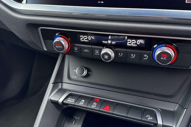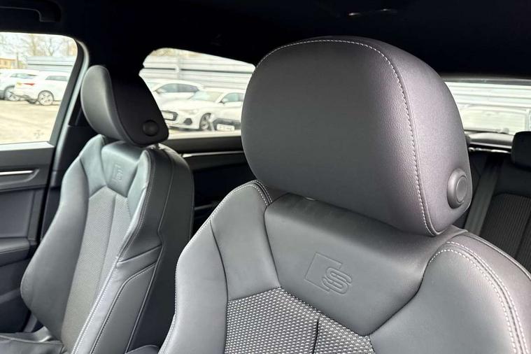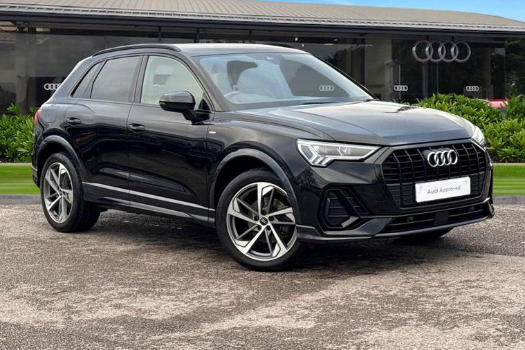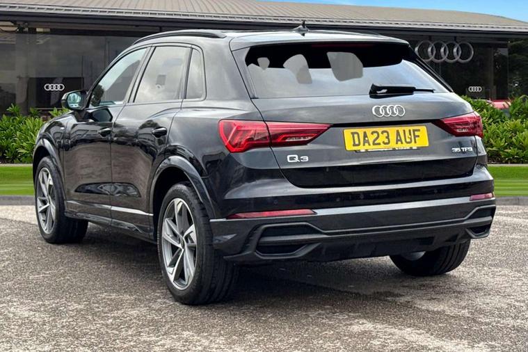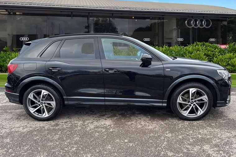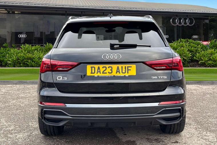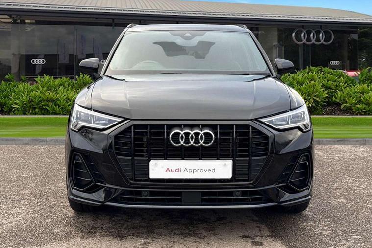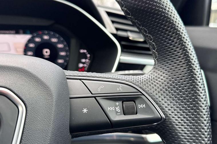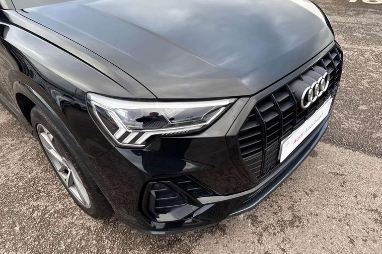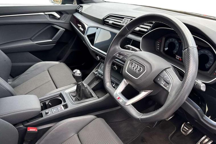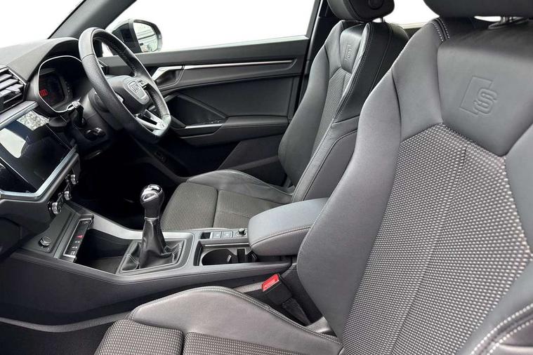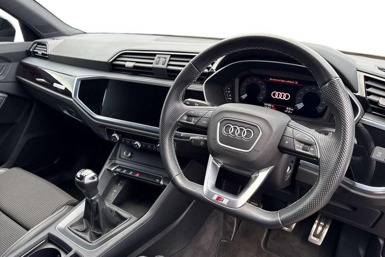 Amazon alexa Integration, Audi drive select, Audi lane departure warning, Audi Virtual Cockpit - 10.25" display, Bluetooth interface, Camera based traffic sign recognition, Cruise control + speed limiter, Legal emergency call, MMI Navigation Plus with high resolution 10.1 inch touchscreen colour display, Power operated tailgate, Progressive steering, Rear parking sensors, Service interval indicator, Smartphone interface includes wireless Apple carplay/Android Auto, Start stop system with recuperation, Voice control system with natural language interaction, Sports suspension, 2 USB-C ports with charge and data functions, 6 passive loudspeakers, DAB digital radio module, Acoustic windscreen, Auto dimming frameless rear view mirror, Black roof rails, Electrically folding, adjustable and heated door mirrors with integrated LED side indicators and kerb view function for passenger side, Front and rear electric windows, Front fog lights, Grille vertical bars in aluminium silver/Matt, High gloss black finish B and C pillars, LED Dynamic rear indicators, LED headlights with LED daytime running lights, LED rear lights, LED third brake light, Privacy glass dark tinted rear and rear-side windows (from B-pillar backwards), Rain and light sensors, Rear diffuser grille in grained matt black, Rear diffuser strip in matt anthracite black, Rear side wing doors, Rear wiper, S line bumpers in contrasting Manhattan grey, Variable front intermittent wipers, 12V socket in rear centre console, 3 seat bench in 2nd row, 3 spoke flat bottomed multi-function leather sport steering wheel, 40:20:40 folding with manual adjustment for 60:40 forwards/backwards position and backrest angle, Adjustable rear seat bench/backrest with centre armrest and cupholder, Black cloth headlining, Dual zone electronic climate control, Front and rear black floor mats with contrast stitching in rock grey, Front and rear headrests, Front and rear roof module including reading lights, Front centre armrest, Glove compartment lighting, Height and reach adjustable steering wheel, Illuminated door sill trims with S logo, ISOFIX child seat mounting for front passenger with airbag deactivation and outer rear seat including top tether attachment point for outer rear seats, Luggage compartment light, Manual front seats with height adjustment, Perforated leather gearknob, Single front passenger seat, Stainless steel luggage compartment sill finisher, Stainless steel pedals, Ambient lighting pack - Q3, Black styling pack - Q3, Non smoking pack - Q3, 3x3 point rear seatbelts, 6 airbags - Driver, front passenger, curtain and side windows, Audi pre-sense front with pedestrain and cyclist recognition, Electrically operated child locks on rear doors, Electromechanical parking brake, Electronic stabilisation control including ABS, ASR and EDL, Front seatbelt reminder, Hill descent control, Hill hold assist, Pre sense basic, Seatbelt monitoring, Tyre pressure warning, Warning triangle and first aid kit, Anti theft alarm, Anti theft wheel bolts, Immobiliser, Remote central locking, Aluminium look interior elements, Detail dashboard around MMI touch colour display in glass look, black with surround in aluminium look, Leatherette door armrest, Piano black inlay, 19" 5 twin arm design diamond cut audi sport alloy wheels in matt grey look,