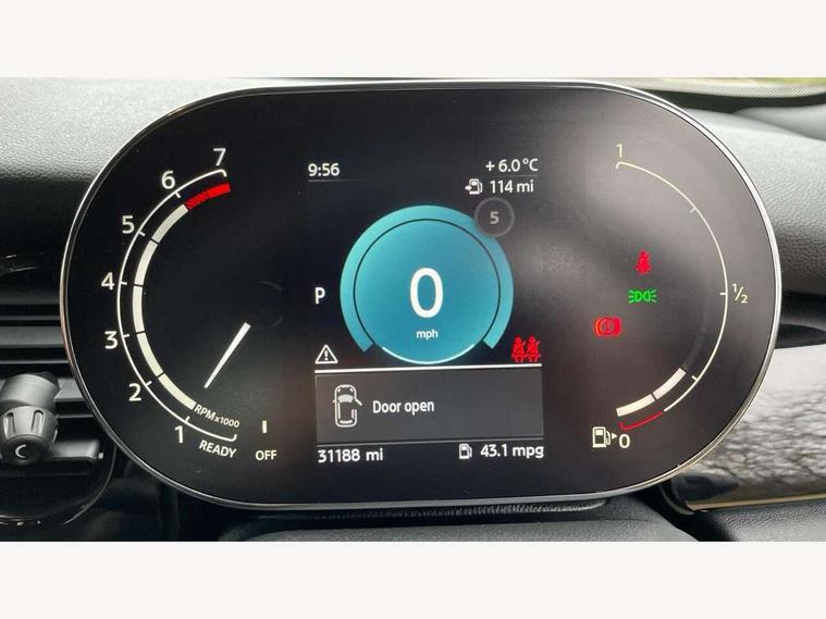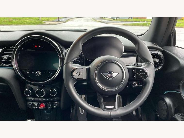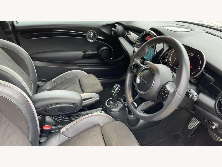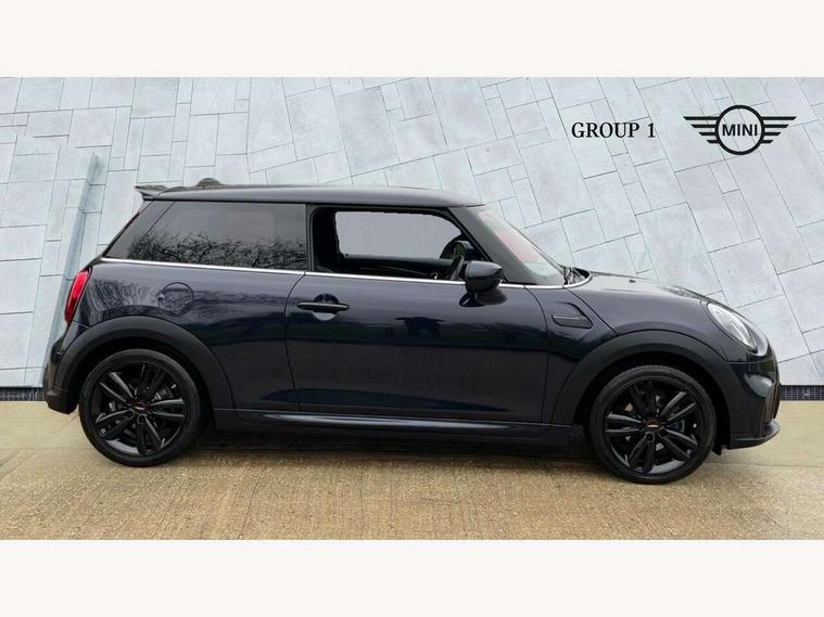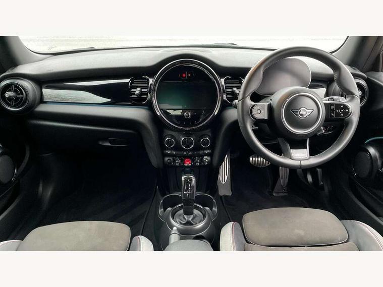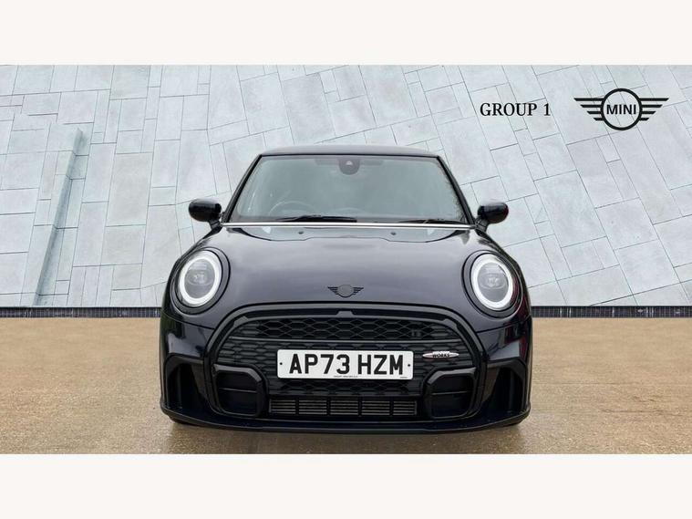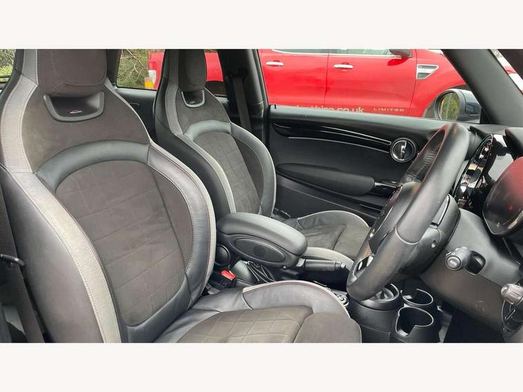 Apple CarPlay, Automatic start/stop function with brake energy recuperation, Compatible mobile phone bluetooth with audio streaming, Digital dashboard display, Electro-mechanical speed dependant steering assistance, Flexible car sharing preparation, Instrument cluster, Mini E-call, MINI TeleServices, On board computer, Service interval indicator, Double Vanos system, Fully variable valve control, High precision injection, Intelligent adaptive suspension, Performance Control, Steptronic transmission with double clutch, 4 speakers in front door trims and underneath front seats, 8.8" touchscreen with LED ring, FM tuner and DAB digital radio, 3rd brake light, Automatic headlight activation switch, Dynamic brake lights, Electric front windows, Heated rear window, Heated windscreen washer jets, JCW Aerodynamic kit - Front and rear bumpers with sporty JCW styling and part-painted side sills with MINI John Cooper Works door sill finishers, John Cooper Works rear spoiler, LED headlight with closed ring and daytime driving lights, Metal door sill strips with MINI imprint, Model logo Cooper on right of tailgate, Rain sensor window wipers, Rear fog lights, Rear LED lights with union jack design, Rear window wiper, Side scuttle panel with integrated indicator, Sun/heat protection glass, White indicator lenses, 12V Accessory socket in centre console, 2 seat bench in 2nd row, 4 lashing eyes in luggage compartment, 60/40 split folding rear seat, Anthracite headliner including grab handles and clothes hooks, Carbon black colour line - Knee roll and door armrest, Chrome interior highlights, Cupholders, Front and rear isofix with front passenger airbag deactivation, Front floor mats in velour, Glove compartment, Height and length steering column adjustment, Integrated headrests, adjustable thigh support for seats, Interior lighting with 12 different colours across the dashboard, underneath door bezel with illuminated laser-engraved design on central display, Leatherette gearshift lever and handbrake gaiters, LED reading lights, vanity mirror lights, front foot well light and spotlight on front seats, Mechanical seat adjustment - forward/back & backrest for front seats and driver seat height adjust, Multifunction steering wheel, Passenger seat height adjuster, Single front passenger seat, Storage compartments in doors, Sunvisors with vanity mirrors, Walknappa leather steering wheel with grey seam and John Cooper Works badge on Piano Black lower steering wheel spoke, Driving assistant pack - Mini Hatchback, Piano black exterior pack - Mini Hatchback Cooper, Premium pack - Hatchback, 3 point seatbelts on all four seats, 6 Airbags - front, side, head and seat belt tensioners, Anti-lock braking system (ABS), DSC - Dynamic Stability Control, Front and rear disc brakes, Single tone fanfare horn, Tyre pressure monitoring system, Alarm system with tilt sensor, monitoring doors, bonnet interior and tailgate, Electronic vehicle immobiliser, Start/stop toggle with keyless go, Piano black interior trim, Tool kit,