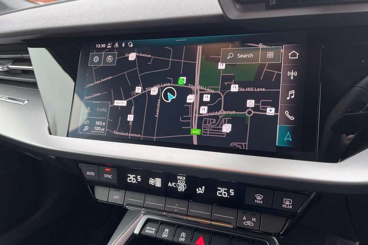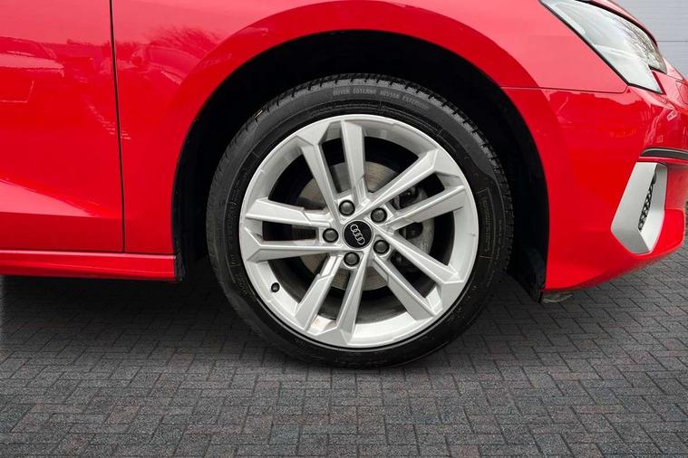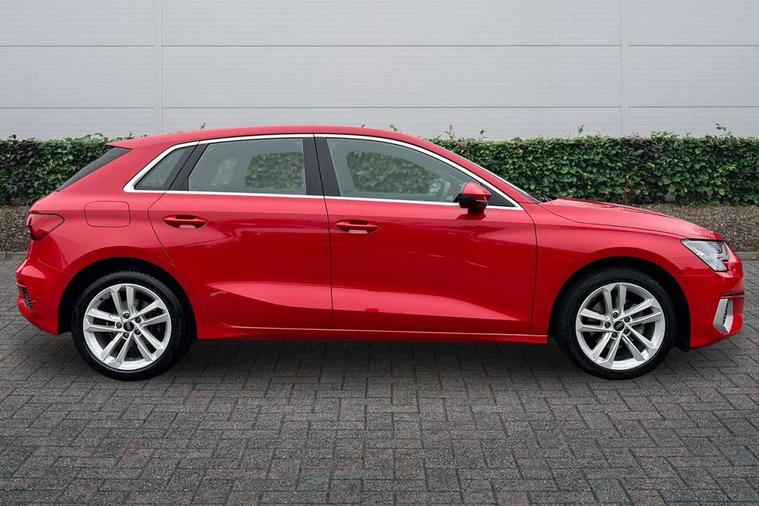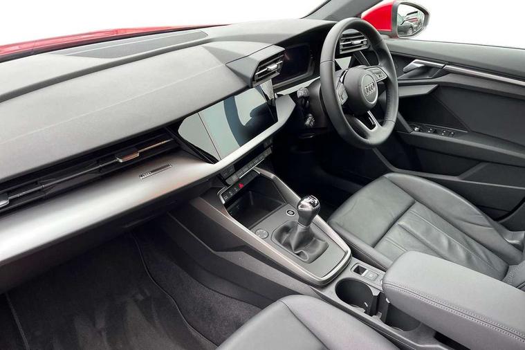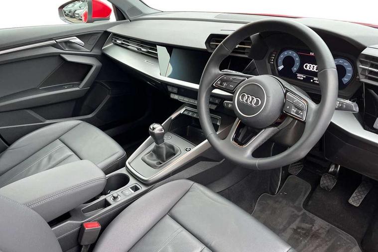 Audi drive select (Auto, Comfort, Dynamic, Efficiency and Individual), Audi smartphone interface, Audi Virtual Cockpit - 10.25" digital and colour instrument cluster, Automatic start/stop system with recuperation, Bluetooth interface, Collision avoidance assistant, Cruise control, e-Call (emergency call), Electromechanical power speed sensitive steering, Lane departure warning system, MMI Navigation Plus with high resolution 10.1" colour touch screen display, Rear parking sensors, Service indicator, Trip computer, Voice control system with natural language interaction, Standard suspension, 2xUSB-C connection with data and charging functions, 6 passive loudspeakers, DAB Digital radio, 3rd brake light, Acoustic glass windscreen, Aluminium window trim, Auto dimming frameless rear view mirror, Body colour exterior mirrors, Body colour roof spoiler, Electrically adjustable/heated/folding/auto dimming door mirrors with integrated LED indications + kerb view function for passenger side, Front electric windows, LED daytime running lights, LED headlights and halogen rear lights, Light and rain sensors, Rear electric windows, Rear side wing doors, Rear window, rear door windows and rear side windows in clear glass, Rear wiper, 12V socket and storage compartment in front centre console, 3 seat bench in 2nd row, 40/20/40 split folding rear seat bench with cupholder, Dual zone electronic climate control, Front and rear centre armrest, Front and rear headrests, Front door sill trims with aluminium inlay, Front/rear floor mats, Height and reach adjustable steering wheel, Interior lighting - Front and rear roof module including reading lights, glove compartment light and right hand side, Luggage compartment floor covering, Manual boot compartment lid, Manually adjustable front seats, Seat side bolsters, Single front passenger seat, Steel grey cloth headlining, Twin leather upholstery, Aluminium interior elements pack - A3 Sportback, Sport styling pack - A3 Sportback, 3x3 point rear seat belts, Audi pre sense front, Driver and front passenger airbag with passenger airbag deactivation, Electronic Stabilisation Control (ESC) including ABS, ASR and EDL, First aid kit with warning triangle and 2 safety vests, Front side airbags with head airbags and interaction airbag, Pre-sense front with pedestrian and cyclist detection, Seatbelt monitoring, Tyre pressure loss indicator, Anti theft alarm, Anti-theft wheel bolts, Electronically operated child lock, Immobiliser, Remote control central locking, Inlays with silk effect paint in platinum grey,