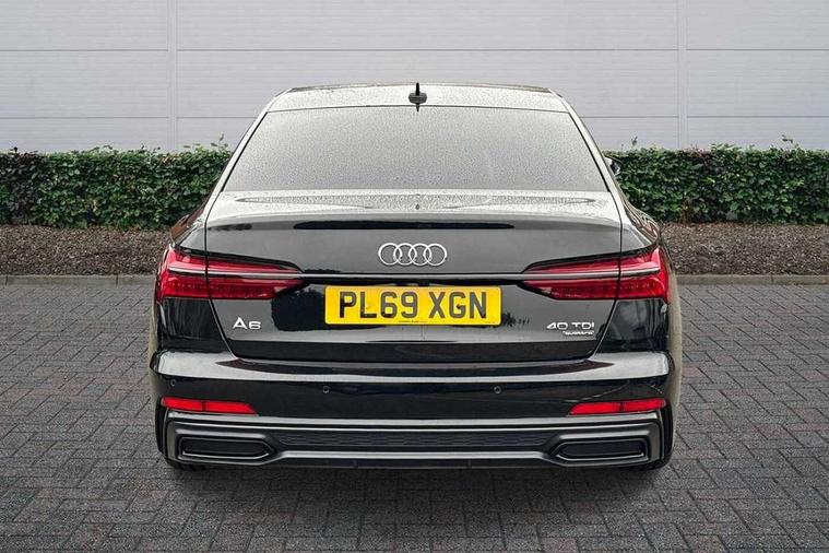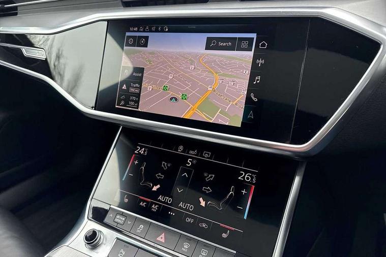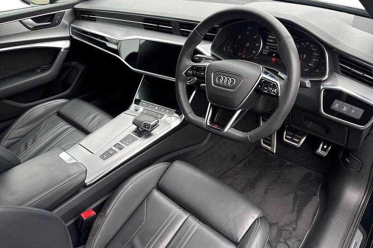 7" high resolution colour driver information display system, Amazon alexa Integration, Audi connect safety and service (e-call), Audi drive select, Audi parking system plus with front and rear sensors, Audi smartphone interface, Automatic start/stop system with coasting functionality, Bluetooth interface, Electric boot lid release, Lane departure warning system, MMI navigation with MMI touch + twin touch screens 8.8" and 8.6" with haptic and acoustic feedback, Progressive steering, Service interval indicator, Voice control system, Diesel particulate filter, Sports suspension, Audi music interface, Auxiliary input socket, DAB Digital radio, USB connection, Electric front/rear windows, Electrically adjustable, heated and folding door mirrors with driver memory function and integrated LED indicators, Frameless auto dimming interior rear view mirror, Gloss black exterior mirror housings, Gloss black highlights on the exterior area of the Audi Single frame, Gloss black highlights on the front and rear bumpers, Gloss black highlights on the radiator grille, Gloss black highlights on the side windows trim strips, Headlight washers, Heat insulating glass in side and rear windows, LED signature front daytime running light, Matrix LED headlights with dynamic rear indicators, Privacy glass, Rain and light sensors, S line air inlet design with inlay in matt aluminium, S Line badge on front fender, S line rear diffuser and grille in matt black with matt aluminium tailpipes, S Line side skirts, Signature rear LED light design, Windscreen with acoustic glazing, 2 zone deluxe electronic climate control, 3 Spoke flat bottom high multi-function leather steering wheels with shift paddles, 4 way electric lumbar support for driver and front passenger, 40/20/40 split folding 3 rear seat bench in 3 parts with rear centre armrest, Black cloth headlining, Electrically adjustable front seats with driver memory, Front centre armrest, Front head restraints, Heated front seats, Height/reach adjust steering wheel, Illuminated door sill trims with S logo, Illuminated sun visors with vanity mirrors, ISOFIX child seat mounting and Top Tether with front passenger airbag deactivation, Leather gear knob, Leatherette on upper instrument panel and door shoulders, Rear headrests, S line front and rear floor mats with contrast stitching, Stainless steel pedals and foot rest, Tool kit and car jack, LED Interior Ambient Lighting Pack - A6, Non smoking pack - A6, 3 point seatbelts on all seats, Airbags - Front side, front and rear including head, Audi pre-sense front, EBD - Electronic brakeforce distribution, Electromechanical parking brake, Electronic Stability Control (ESC) including ABS, ASR and EDL, Extended pedestrian protection measures, Seatbelt monitoring, Tyre pressure warning light, Warning triangle and first aid kit, Anti theft alarm with tow away protection, Anti-theft wheel bolts and wheel loosening detection, Immobiliser, Keyless Go, Remote central locking, 20" 5 V spoke star design Audi sport cast aluminium alloy wheels in matt titanium look,