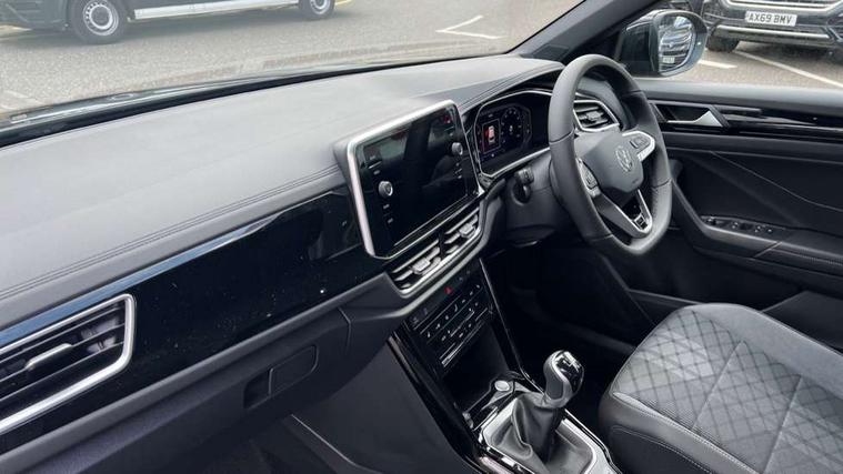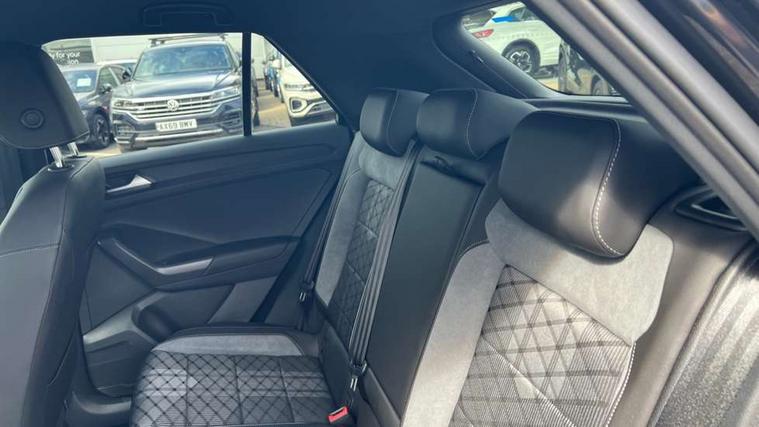 10.25" Digital cockpit pro, Advanced driver attention and drowsiness monitor, Emergency call service, Lane keeping system Lane Assist, Mobile phone interface, Modified key software - reduce switch off time for key status change to Long no motion, Online services, Park assist including front and rear parking sensors, Service interval indicator, Tailgate/trunk lid release from outside, Think blue trainer driver tips and journey analysis, Warning sound and light for front seatbelts unfastened, Wireless app connect, Battery regeneration during braking, Start/stop function with battery regeneration, DAB Digital radio, Diversity antenna for FM reception, Front and rear 6 speakers, Music playback - MP3, WMA and AAC files, Premium USB cable in choice of either Apple or Android smartphone compatibility, SD card slot, Simultaneous pairing of 2 compatible mobile devices, Title and cover art display, We Connect and We Connect Plus functionality, Auto dimming interior rear view mirror, Automatic hazard lights activation under emergency braking, Automatic headlight control with LED separate daytime running lights with coming/leaving home function, Body coloured exterior mirror housings and door handles, Electrically adjustable and heated door mirrors, Extended roof spoiler, Exterior mirrors aspherical on driver side, convex on front passenger side, External USB type C socket and charging sockets, Front windscreen wiper with intermittent wipe and 4 position delay, Heated rear window, LED 3rd brake light, LED rear combination lamps, LED rear number plate lights, Power windows with comfort operation and circuit breaker, Privacy glass for rear side windows and rear window, R-Line design body coloured bumpers, Rain sensor, Rear exhaust tailpipe, Rear fog light on one side and reversing lights on both sides, Rear side wing doors, Rear wash/wipe with intermittent wipe setting, Remote electrically foldable door mirrors, puddle lights and reverse activated passenger's door mirror, 12V power socket in centre console, 3 rear head restraints, 3 seat bench in 2nd row, 4 load lashing points in luggage compartment, Air care climatronic air conditoning system with active combination filter and 2-zone temperature control, Black roof lining, Chrome plated decorative trims, Chrome plated radiator grille inserts, air vent surrounds and light switch surrounds, Door and side trim panel with leatherette insert, Front + rear carpet mats, Front centre armrest, Front cupholders x 2, Front footwell illumination, Front reading light, Front scuff plates with R Line logo, Front seat back storage pockets, Glove compartment door with light, Instrument lighting, white adjustable panel illumination, Interior ambient lighting and surround lighting, Interior light delay, Isofix child seat preparation, Leather gearshift handle, Load-through provision with cup holder when folded down ('Unsplit rear seat bench, split folding backrest, with centre armrest), Luggage compartment lighting, Single front passenger seat, Stainless steel pedals, Storage compartment in left and right luggage area, Storage compartment in rear doors, Storage compartments in driver and front passenger doors, Sunvisors with illuminated vanity mirrors, Variable boot floor, height adjustable and removable, Driver assistance pack without proactive passenger protection - T-Roc, 3 point height adj front seatbelts + pretensioners, 3 point seatbelts in outer rear with ECE label, ABS, Child locks on rear doors, City emergency braking and pedestrian monitoring, Driver and front passenger airbag with front passenger airbag deactivation, Driver and front passenger safety-optimised head restraints, Drivers seatbelt reminder, Electronic parking brake, Electronic Stability Control (ESC) inc EDL (Electronic Differential Lock) and ASR (Traction Control), Front and rear passengers curtain airbag system including front side airbags, Hill start assist, Predictive pedestrian protection, Rear disc brakes, Two tone horn, Tyre pressure loss indicator, Volkswagen roadside assistance, Piano black decorative inserts in dashboard and front door trim panels, Trims for alloy wheels,