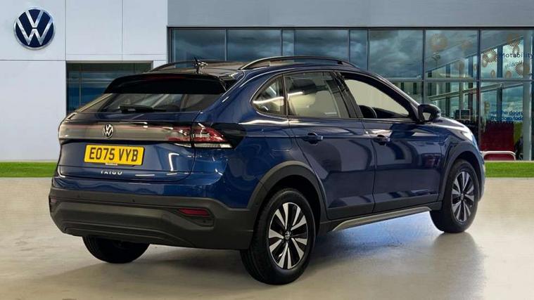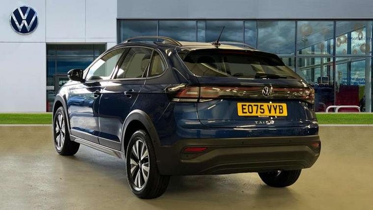 8" Digital cockpit basic display, Advanced driver attention and drowsiness monitor, Dynamic road sign display, e-Call (emergency call), Power Steering, Predictive adaptive cruise control, Travel assist including emergency assist, Washer fluid level indicator, Wireless Charging including Bluetooth, Start-stop system with battery regeneration (recuperation - energy recovery during braking), Digital radio reception (DAB+), WeConnect plus, Ambient lighting with logo projection, Aspherical driver's exterior mirror, Auto headlights, Body coloured bumpers, Body coloured exterior mirror housings and door handles, Electric windows, External USB type C socket and charging sockets, Heat insulating glass windscreen, LED rear combination lamp, LED third brake light, Left convex exterior mirror, Power folding adjustable/heated exterior mirrors and front passenger exterior mirror lowering function, Rear fog light on one side, reversing light on both sides, Rear side wing doors, Rear wash/wipe with intermittent wipe setting, 'Slash/ Austin' Cloth upholstery, 12V socket in centre console, 2 front reading lights, 3 rear head restraints, 3 seat bench in 2nd row, Black carpets, Child seat anchor for child seat system i-Size, 2x top tether and child seat anchor in front on front passenger side, Door and side trim panels in titan black, Driver and front passenger seat height adjustment, Front centre armrest, Handbrake lever handle in leather, Height and reach adjustable steering wheel, Leather trimmed gear knob, Leather wrapped multifunction steering wheel, Luggage compartment floor, Luggage compartment light, Lumbar support for driver's and front passengers seat, Seat covers in titanium black, Single front passenger seat, Split folding backrest with centre armrest and unsplit rear seat bench, Storage compartment under front seats, Sun visors with illuminated vanity mirrors, Chrome Package - Taigo, Drivers assistance pack - Taigo, Light and Sight pack including High beam assist - Taigo, 2 x 3-point seatbelts/outer rear seats with ECE label, 3-point seat belts in front with pretensioner and height adjustment, 3-point seatbelt for centre rear seat, Adaptive driver and front passenger airbags with passenger airbag deactivation function, Driver and front passenger airbags with front passenger airbag de-activation, front side and curtain airbags, Driver and front passenger safety-optimised head restraints, Electronic stability control, Extended and predictive pedestrian/ cyclist protection, Front and rear disc brakes, Front curtain and side airbags with center airbag, Hill start assist, Manual rear child locks, Single tone horn, Tyre pressure loss indicator, Anti-theft alarm system with interior monitoring, backup horn, and towing protection, Lava stone black gloss/matt decorative inserts in dash and front door panels, Low rolling resistance tyres,
