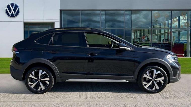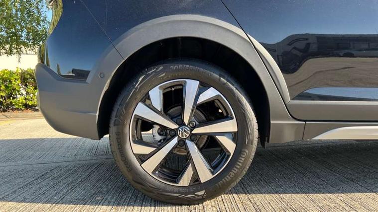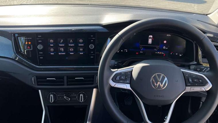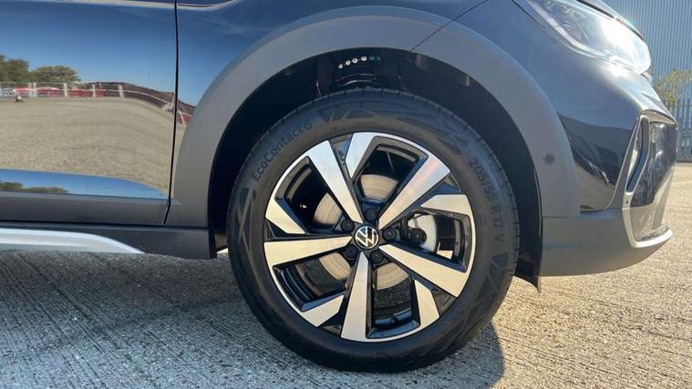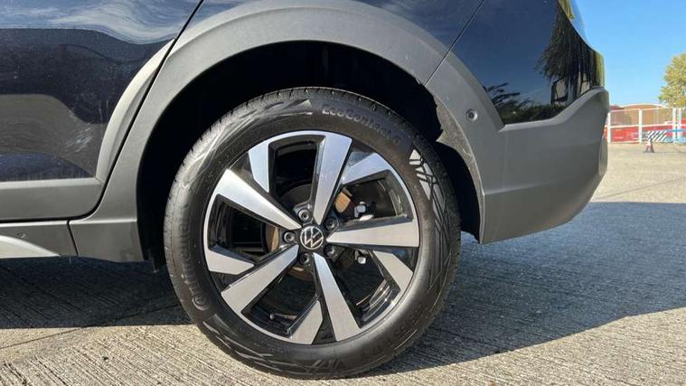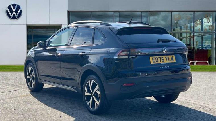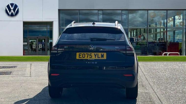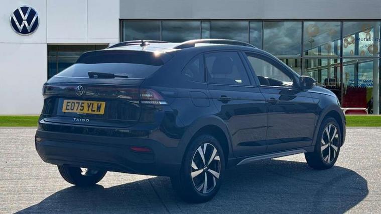 8" Digital cockpit basic display, Advanced driver attention and drowsiness monitor, Dynamic road sign display, e-Call (emergency call), Power Steering, Predictive adaptive cruise control, Rear view camera, Travel assist including emergency assist, Washer fluid level indicator, Wireless Charging including Bluetooth, Start-stop system with battery regeneration (recuperation - energy recovery during braking), Digital radio reception (DAB+), WeConnect plus, Ambient lighting with logo projection, Aspherical driver's exterior mirror, Body coloured bumpers, Body coloured exterior mirror housings and door handles, Electric windows, External USB type C socket and charging sockets, Heat insulating glass windscreen, LED rear combination lamp, LED third brake light, Left convex exterior mirror, Power folding adjustable/heated exterior mirrors and front passenger exterior mirror lowering function, Rear fog light on one side, reversing light on both sides, Rear side wing doors, Rear wash/wipe with intermittent wipe setting, Side windows in heat-insulating glass, from B-pillar and rear window dark tinted, 'Slash/ Austin' Cloth upholstery, 12V socket in centre console, 2 front reading lights, 3 rear head restraints, 3 seat bench in 2nd row, Black carpets, Ceramique headliner, Child seat anchor for child seat system i-Size, 2x top tether and child seat anchor in front on front passenger side, Door and side trim panels in titan black, Driver and front passenger seat height adjustment, Front centre armrest, Handbrake lever handle in leather, Height and reach adjustable steering wheel, Leather trimmed gear knob, Leather wrapped multifunction steering wheel, Luggage compartment floor, Luggage compartment light, Lumbar support for driver's and front passengers seat, Seat covers in titanium black, Single front passenger seat, Split folding backrest with centre armrest and unsplit rear seat bench, Storage compartment under front seats, Sun visors with illuminated vanity mirrors, Titanium black instrument panel, Chrome Package - Taigo, Drivers assistance package - Taigo, Light and sight pack - Taigo, 2 x 3-point seatbelts/outer rear seats with ECE label, 3-point seat belts in front with pretensioner and height adjustment, 3-point seatbelt for centre rear seat, Driver and front passenger airbag with front passenger airbag deactivation, Driver and front passenger safety-optimised head restraints, Electronic stability control, Extended and predictive pedestrian/ cyclist protection, Front and rear disc brakes, Front curtain and side airbags with center airbag, Hill start assist, Manual rear child locks, Single tone horn, Tyre pressure loss indicator, Anti-theft alarm system with interior monitoring, backup horn, and towing protection, Keyless locking and starting system keyless access with safelock, Black (slush) Dashboard, Lava stone black gloss/matt decorative inserts in dash and front door panels, Low rolling resistance tyres,