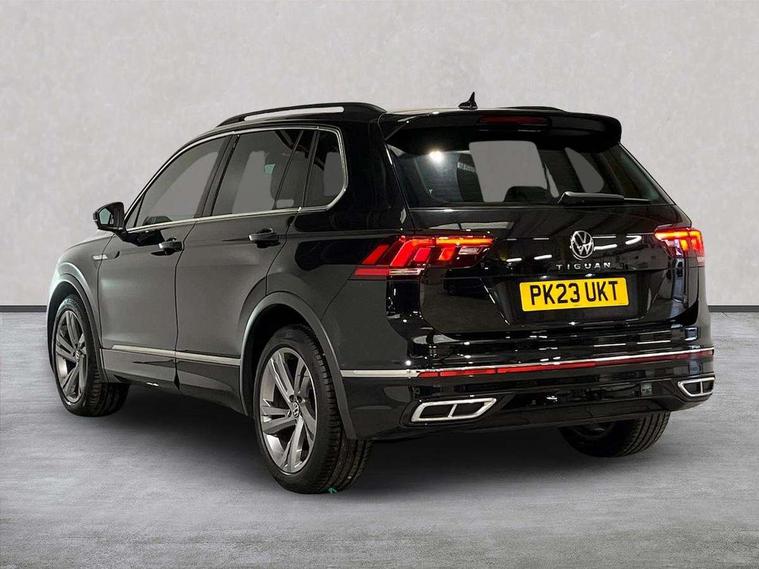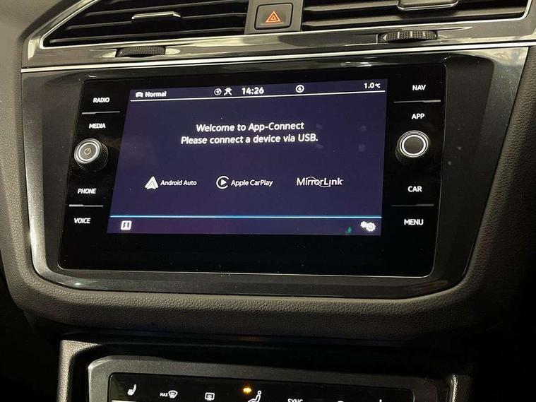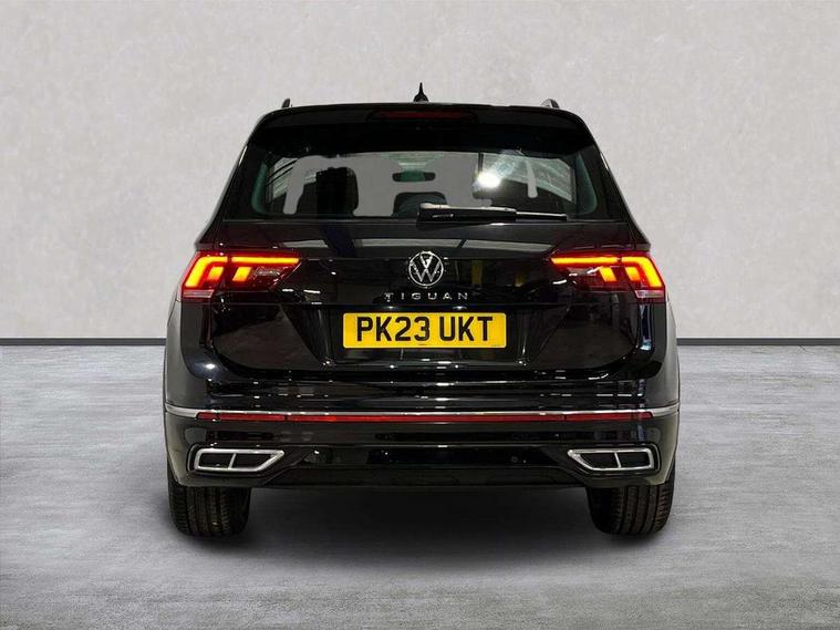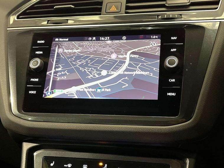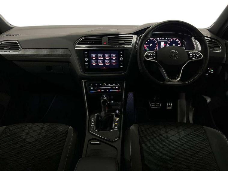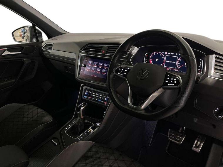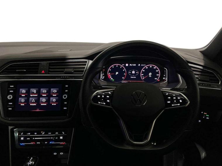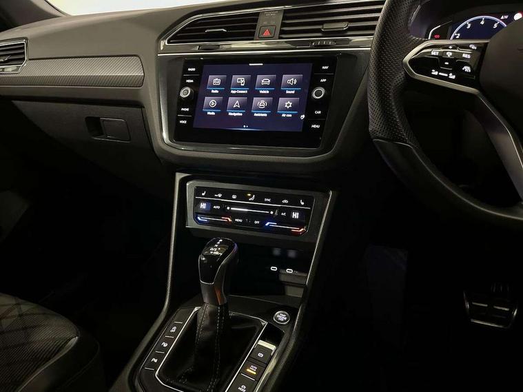 Adaptive cruise control ACC stop and go including speed limiter, App-Connect incl. App-Connect Wireless for Apple CarPlay and Android Auto, Bluetooth phone integration system, Comfort drive travel assist, Digital cockpit pro, Driver alert system, Driver profile selection, Dynamic road sign display, eCall emergency call system, Electromechanical speed sensitive power steering, Emergency assist, Front and rear parking distance sensors, Instrument cluster mph speedometer Great Britain, Lane keeping system Lane Assist, Lights on warning, Multifunction front facing camera, Outside temperature display, Premium multifunction display with multi colour display, Preparation for subsequent activation Navigation feature Discover Media includes Streaming and Internet, Remote control boot opening, Rev counter, Service interval indicator, Speed limit display, Start/stop system with regenerative braking, Tailgate/trunk lid unlocking from outside, Trip computer, Warning sound and light for doors and tailgate open, Battery regeneration during braking, Sports suspension, 8 Speakers, Digital radio reception DAB+, Diversity antenna for FM reception, Radio, Auto dimming interior rear view mirror, Automatic headlight control system, Body colored bumpers in R-Line style, Body colored exterior mirror housings, Body colour door handles, Chrome moldings on the side windows, Coming/leaving home lighting function, Dynamic headlight range control, Front and rear electric windows, Heated rear window, High level 3rd brake light, Laminated safety glass windshield, heat and sound insulating, LED headlamps with LED separate daytime running light and dynamic cornering light, LED rear combination lamps, LED rear number plate lights, License plate carrier in front and rear, Poor weather light and cornering light, Power adjustable, folding and heated door mirrors with surround lighting, front passenger exterior mirror lowering function, Privacy glass for rear side windows and rear window, R Line body kit, R Line side sills, Rain sensor, Rear exhaust tailpipe, Rear fog lamp, Rear side wing doors, Rear spoiler in R style, Rear windscreen washer and wiper with interval delay, Side and rear windows in heat insulating glass, Trailer Stability Programme, Unique R Line badging, Windscreen wipers/ intermittent wipe + 4 position delay, 12V outlet in center console rear and in luggage compartment, 12V outlet in front and tray, 2 LED front reading lights, 2 LED rear reading lights, 3 bench rear seats in 2nd row, 3 rear headrests, Air Care Climatronic 3 zone automatic climate control with enhanced air filter and controls in the rear, Art Velours greyson sports cloth upholstery, Backrest release for left front seat, Black headlining, Brushed stainless steel pedals and footrest, Carpet mats in front and rear with decorative stitching in Gray, Climate control unit rear with touch function, Door and side trim panel in foam film, insert in leatherette, Driver + front passenger lumbar support, Front footwell illumination, Front scuff plates in aluminum with R-Line logo, Front seats head restraints (x-adjustment), Height adjustable front seats, Height/reach adjust steering wheel, Isofix Preparation 2 Rear child seats, Leather gear knob, Rear bench seat asymetrically split folding, longitudinally movable and folding with load-through hatch and center armrest, Remote unlocking for rear seat backrest, Single front passenger seat, Sun visors with illuminated vanity mirrors, Top front comfort seats, Winter pack - Tiguan, 3 point seat belt for centre rear seats, 3 point seat belts with seat belt pretensioners for the outer rear seats, Curtain airbags for front and rear passengers, Driver/Front Passenger airbags, Drivers knee airbag, Electronic parking brake with auto hold, Electronic Stability Control with driver steering recommendation, ABS, ASR, EDL, EDTC and trailer stabilization, Front assist with autonomous emergency braking (for Adaptive Cruise Control ACC up to 130 mph), Front disc brakes, Front passenger airbag deactivation, Front side airbags, Height adjustable front 3 point seatbelts + pretensioners, Manual child proof rear door locks, Pedestrian monitoring system, Proactive passenger protection system in combination with front assist, Rear disc brakes, Two tone horn, Tyre pressure loss indicator, Warning sound and light for front seat belts if unfastened, Warning triangle, Anti theft alarm system with interior monitoring, backup horn and towing protection, Anti theft wheel bolts, Electronic engine immobiliser, Keyless locking and starting system keyless access with safelock, Chrome elements on the mirror switch power window switches and door pulls, Decorative inserts Carbon Gray for dashboard and front door trim panels, Interior door handle in matte chrome, 19" Valencia alloy wheels with AirStop tyres, Tool kit, Tyre mobility kit Includes 12V compressor and tyre sealant,