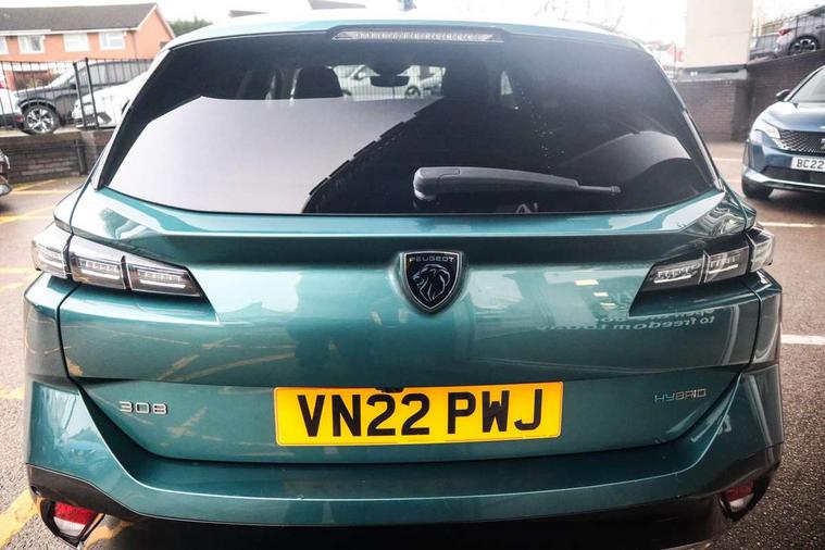 10" capacitive colour touchscreen with connected 3D navigation includes Peugeot Connect SOS and assistance, Bluetooth telephone facility, Compact automatic gearbox impulse selector, Driver attention warning, Exterior temperature indicator with ice warning, Front and rear parking sensors, Intelligent speed adaptation, Lane keep assist, Mirror screen with mirror link, apple carplay and android auto, Multi driving mode selector - Electric/HYBRID /Sport mode, Multi function trip computer, PEUGEOT i-Cockpit with 10" digital instrument panel display, PEUGEOT i-Cockpit with compact steering wheel, PEUGEOT SOS and assistance, Service interval indicator, Speed limit recognition and recommendation, Sport pedals with foot rest, Mode 3 type 2 cable for wallbox charging, 6 speakers radio with mp3 compatible, DAB Digital radio, Peugeot customisable iToggles, Steering column mounted multifunction controls, Voice recognition for radio, navigation and telephony features, Acoustic and tinted windscreen, Automatic hazard light activation upon heavy brake application, Automatic triggered rear windscreen wiper in reverse gear, Body colour door handles, Dark tinted rear side and tailgate windows, Dichroic hybrid badging, EcoLED headlights, Electric operated/heated door mirrors, Frameless electrochrome rear view mirror with ZEV indicator, Front and rear electric windows with one touch/anti pinch, Front grille with horizontal chrome stamping, Gloss black finish B pillar, Gloss black rear cluster connecting strip, High beam assist, LED rear number plate lights, LED side indicator lights integrated into door mirrors, Manual headlight position correction/adjustment, Model designation badges on front and rear, Nera black door mirrors, Peugeot signature LED daytime running lights, Power folding door mirrors, Rain sensor, Rear full LED 3D peugeot signature claw effect lights with daylight function, Rear lower bumper gloss black diffuser effect trim, Rear reversing lights, Rear side wing doors, Tailgate with heated rear windscreen and wiper blade, Twin exhaust pipes with chrome surround, 12V socket, 2 front USB socket including 1 USB type c, 2 rear USB socket including 1 USB type c, 3 seat bench in 2nd row, 40/20/40 flat folding rear seats, 8 Colour personalisable ambient lighting, Automatic air conditioning with AQS 3, Central front armrest with storage compartment, Driver and front passenger seat height adjustment, Driver and front passenger seat manual adjustment in longitudinal and back rest angle, Driver seat lumbar adjustment, Dynamic front seats, Electric power steering with reach and rake adjustable steering column, Falgo tri-material with isabella leather effect and cloth upholstery, Fixed boot floor with access to the charging cable storage box, Flat folding rear seats, Front central console with two cup holders, Manual driving mode - change gear manually via steering mounted paddles, Multifunction split leather and gloss steering wheel, Piano keys gloss black plated toggle switches to access main functions of the vehicle, Rear centre armrest with cupholders, Roof lining - light grey, Seatbelt unfastened on the move audible and visual alert for front and rear seats, Single front passenger seat, Sunvisor with concealable mirrors and LED lighting, Visibility pack with automatic magic wash windscreen wipers - 308, 2x Isofix child seat fitting on outer rear seats, 3x Rear three-point retractable seatbelts with force limiters in the outer rear seats, ABS + EBD + EBA, Active safety brake with night function/cyclists/pedestrians, Adaptive driver and front passenger airbags with passenger airbag deactivation function, Automatic post collision braking, Child locks on rear doors, Driver/front passenger side airbags, Electronic parking brake, ESP, Front and rear curtain airbags, Front optimised safety headrests and rear retractable headrests (x3), height adjustable, Front three point retractable seatbelts with force limiters, Front/rear disc brakes, Hill start assist, Tyre pressure sensor, Acoustic vehicle alert system (AVAS), Automatic door locking when moving off, Deadlocking system, Electronic code immobiliser, Locking wheel nuts, Thatcham cat. 1 alarm with anti lift sensor, 17" Calgary diamond cut alloy wheels, Tyre repair kit,