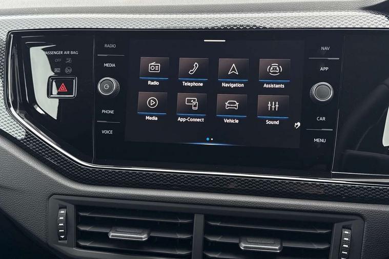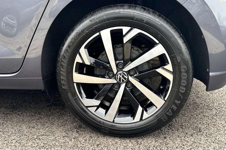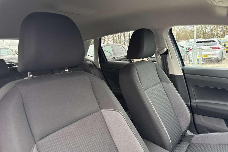Advanced driver attention and drowsiness monitor, Bluetooth mobile phone interface, Dynamic road sign display, Emergency call service, Mobile phone preparation with inductive charging function, Multifunction front facing camera for distance control, Power assisted speed sensitive steering, Predictive adaptive cruise control without follow-to-stop and speed limiter, Preparation for navigation system with media and internet package, Preparation for We connect and We connect plus, Rear view camera, Speedo and rev counter, electronic odometer, trip, service interval display and exterior temperature gauge, Standard rear axle, Travel Assist - Lane keeping system and traffic jam assist, Travel assist including emergency assist, Trip computer, Warning signal and warning light for front and rear seatbelts not fastened, Washer fluid level indicator, Wireless app connect, Front wheel drive, Rear shock absorpion, Start-stop system with battery regeneration (recuperation - energy recovery during braking), DAB Digital radio, Diversity antenna for FM reception, Automatic dimming interior rear view mirror, Automatic headlight control with LED separate daytime running lights with coming/leaving home function, Body colour bumpers with chrome inserts, Body colour door handles, Body colour door mirrors, Electric front windows, Engine badge deletion, Headlight range adjustment, Heat insulating and laminated safety glass windshield, LED Headlights, LED rear combination lamps, Power folding adjustable/heated exterior mirrors and front passenger exterior mirror lowering function, Rain sensor, Rear electric windows, Rear fog light, Rear side wing doors, Rear tinted glass from B-pillar backwards approx 65% tinted, Rear windscreen washer and wiper with interval delay, Third brake light, 12V power socket in centre console, 2 front and 2 rear reading lights with switch off delay and dimmer, 2 USB-C ports in the front, 2 USB-C charging sockets on the center console in the rear, 3 rear head restraints, 60/40 split folding rear seat and rear seat bench not split, Ceramique roof lining, Chrome plated radiator grille inserts, air vent surrounds and light switch surrounds, Door and side trim panel, Driver and front passenger seat height adjustment, Driver/passenger sunvisors with illuminated vanity mirrors, Front centre armrest, Front seat backrest storage pockets, Front standard seats, Handbrake lever handle in leather, Hartley/Thomas cloth upholstery, Headliner in recycled material, Isofix child seat preparation easy-fit (for two outer rear seats, and front passenger seat) compatible with I-size, Leather trimmed gear knob, Luggage compartment cover, Luggage compartment lighting, Removable luggage compartment floor, Single front passenger seat, Standard climatic zones, Standard pedal cluster, Three spoke leather wrapped multifunction steering wheel with shifting paddles, Light and vision pack - Polo, 3 point height adj front seatbelts + pretensioners, 3 point seat belt for centre rear seat, 3 point seatbelts, outer rear with ECE lable, ABS, Driver and front passenger airbag with front passenger airbag deactivation, Drivers and front passengers safety optimised head restraints, ESC (Electronic stability control) + EDL (Electronic Differntial lock) and ASR (Traction control), Extended and predictive pedestrian/ cyclist protection, Front assist with autonomous emergency braking (for Adaptive Cruise Control ACC up to 130 mph), Front curtain and side airbags with center airbag, Front disc brakes, Hill hold control, Manual child lock in rear doors, Rear drum brakes, Single tone horn, Tyre pressure loss indicator, Alarm with interior protection, Anti-theft alarm system with interior monitoring, backup horn, and towing protection, Anti-theft wheel bolts, Electronic engine immobiliser, Lava stone black gloss/matt decorative inserts in dash and front door panels, 16" Torsby alloy wheels, Low rolling resistance tyres,