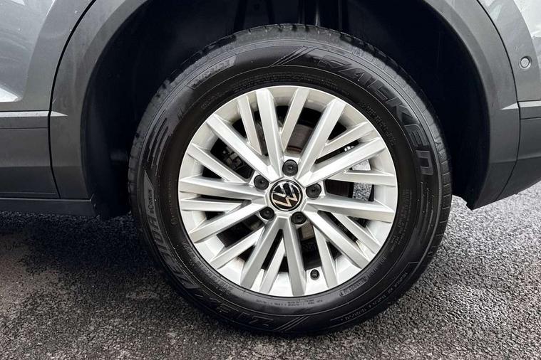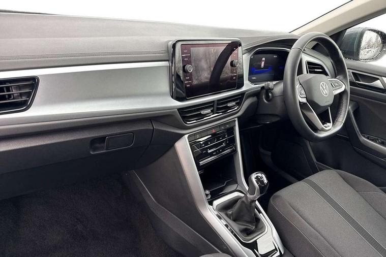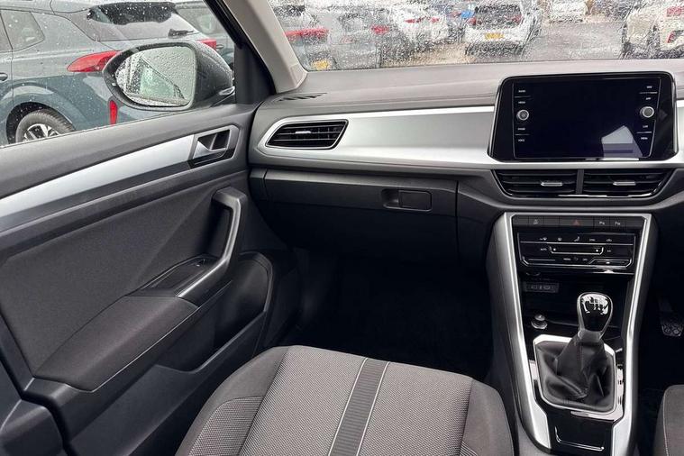 Advanced driver attention and drowsiness monitor, Dynamic road sign display, Emergency call service, Lane keeping system Lane Assist, Mobile phone interface, Modified key software - reduce switch off time for key status change to Long no motion, Online services, Park assist including front and rear parking sensors, Power assisted speed sensitive steering, Service interval indicator, Tailgate/trunk lid release from outside, Think blue trainer driver tips and journey analysis, Warning sound and light for front seatbelts unfastened, Wireless app connect, Battery regeneration during braking, Front shock absorption, Rear shock absorption chassis with increased ride height, Start/stop function with battery regeneration, DAB Digital radio, Diversity antenna for FM reception, Front and rear 6 speakers, Music playback - MP3, WMA and AAC files, Premium USB cable in choice of either Apple or Android smartphone compatibility, SD card slot, Simultaneous pairing of 2 compatible mobile devices, Title and cover art display, We Connect and We Connect Plus functionality, Auto dimming interior rear view mirror, Automatic hazard lights activation under emergency braking, Automatic headlight control with LED separate daytime running lights with coming/leaving home function, Black roof rails, Body coloured bumpers and radiator grille with chrome trim and front fog lamps with chrome bezel, Body coloured exterior mirror housings and door handles, Electrically adjustable and heated door mirrors, Extended roof spoiler, Exterior mirrors aspherical on driver side, convex on front passenger side, External USB type C socket and charging sockets, Front windscreen wiper with intermittent wipe and 4 position delay, Heated rear window, LED 3rd brake light, LED rear combination lamps, LED rear number plate lights, Power windows with comfort operation and circuit breaker, Rain sensor, Rear exhaust tailpipe, Rear fog light on one side and reversing lights on both sides, Rear side wing doors, Rear wash/wipe with intermittent wipe setting, Remote electrically foldable door mirrors, puddle lights and reverse activated passenger's door mirror, 12V power socket in centre console, 3 rear head restraints, 3 seat bench in 2nd row, 4 load lashing points in luggage compartment, Air care climatronic air conditoning system with active combination filter and 2-zone temperature control, Ambient lighting with mirror logo projection, Cloth upholstery, Door and side trim panel in cloth, Drawer under drivers seat, Driver/front passenger seat height adjustment, Front centre armrest, Front comfort sports seats, Front cupholders x 2, Front reading light, Front seat back storage pockets, Glove compartment door with light, Instrument lighting, white adjustable panel illumination, Interior light delay, Isofix child seat preparation, Leather gearshift handle, Load-through provision with cup holder when folded down ('Unsplit rear seat bench, split folding backrest, with centre armrest), Luggage compartment lighting, Lumbar support for driver's and front passengers seat, Non-folding front passenger seat backrest, Single front passenger seat, Storage compartment in left and right luggage area, Storage compartment in rear doors, Storage compartments in driver and front passenger doors, Sunvisors with illuminated vanity mirrors, Variable boot floor, height adjustable and removable, Driver assistance pack without proactive passenger protection - T-Roc Life/Match, 3 point height adj front seatbelts + pretensioners, 3 point seatbelts in outer rear with ECE label, ABS, Child locks on rear doors, City emergency braking and pedestrian monitoring, Driver and front passenger airbag with front passenger airbag deactivation, Driver and front passenger safety-optimised head restraints, Drivers seatbelt reminder, Electronic parking brake, Electronic Stability Control (ESC) inc EDL (Electronic Differential Lock) and ASR (Traction Control), Front and rear passengers curtain airbag system including front side airbags, Front disc brakes, Hill start assist, Predictive pedestrian protection, Rear disc brakes, Two tone horn, Tyre pressure loss indicator, Volkswagen roadside assistance, Alarm with interior protection, Pewter matt decorative inserts for intrument panel, centre console and door panels at the front, Trims for alloy wheels,