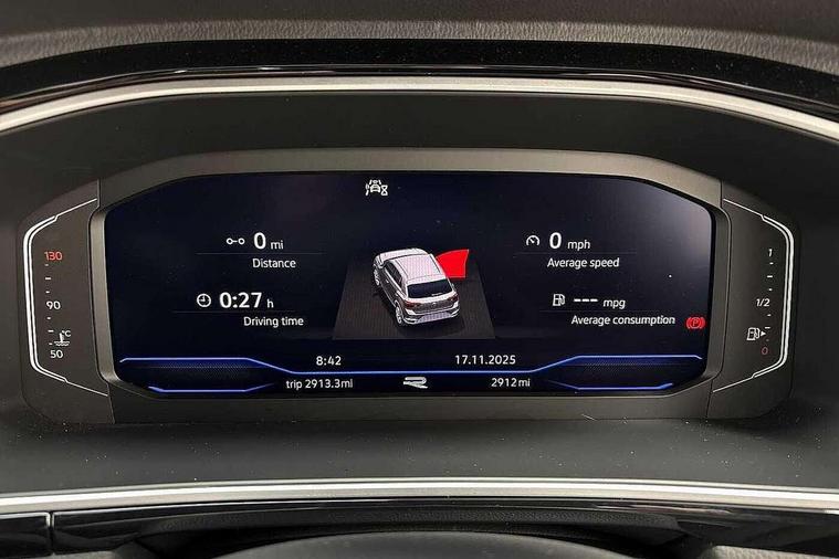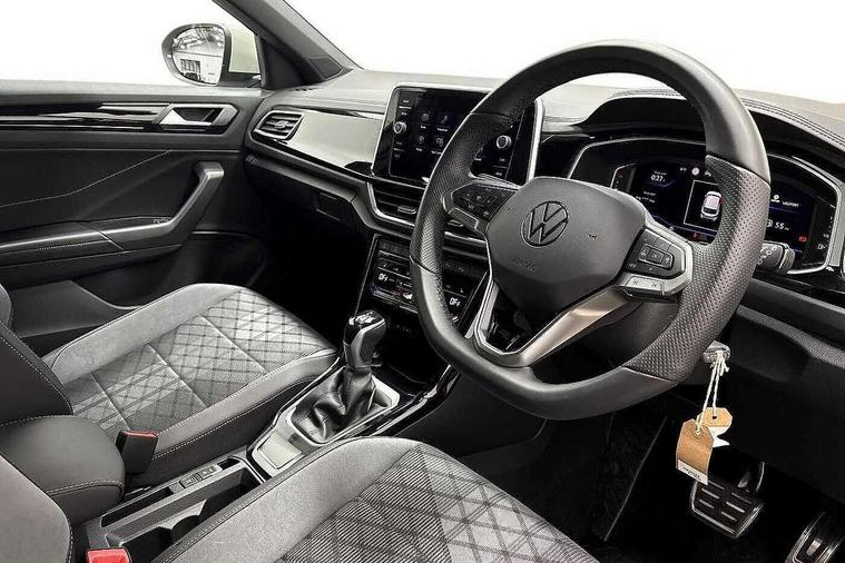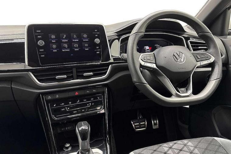 10.25" Digital cockpit pro, Advanced driver attention and drowsiness monitor, Emergency call service, Lane keeping system Lane Assist, Mobile phone interface, Modified key software - reduce switch off time for key status change to Long no motion, Online services, Park assist including front and rear parking sensors, Service interval indicator, Tailgate/trunk lid release from outside, Think blue trainer driver tips and journey analysis, Warning sound and light for front seatbelts unfastened, Wireless app connect, Battery regeneration during braking, Start/stop function with battery regeneration, DAB Digital radio, Diversity antenna for FM reception, Front and rear 6 speakers, Music playback - MP3, WMA and AAC files, Premium USB cable in choice of either Apple or Android smartphone compatibility, SD card slot, Simultaneous pairing of 2 compatible mobile devices, Title and cover art display, We Connect and We Connect Plus functionality, Auto dimming interior rear view mirror, Automatic hazard lights activation under emergency braking, Automatic headlight control with LED separate daytime running lights with coming/leaving home function, Body coloured exterior mirror housings and door handles, Electrically adjustable and heated door mirrors, Extended roof spoiler, Exterior mirrors aspherical on driver side, convex on front passenger side, External USB type C socket and charging sockets, Front windscreen wiper with intermittent wipe and 4 position delay, Heated rear window, LED 3rd brake light, LED rear combination lamps, LED rear number plate lights, Power windows with comfort operation and circuit breaker, Privacy glass for rear side windows and rear window, R-Line design body coloured bumpers, Rain sensor, Rear exhaust tailpipe, Rear fog light on one side and reversing lights on both sides, Rear side wing doors, Rear wash/wipe with intermittent wipe setting, Remote electrically foldable door mirrors, puddle lights and reverse activated passenger's door mirror, 12V power socket in centre console, 3 rear head restraints, 3 seat bench in 2nd row, 4 load lashing points in luggage compartment, Air care climatronic air conditoning system with active combination filter and 2-zone temperature control, Black roof lining, Chrome plated decorative trims, Chrome plated radiator grille inserts, air vent surrounds and light switch surrounds, Door and side trim panel with leatherette insert, Front + rear carpet mats, Front centre armrest, Front cupholders x 2, Front footwell illumination, Front reading light, Front scuff plates with R Line logo, Front seat back storage pockets, Glove compartment door with light, Instrument lighting, white adjustable panel illumination, Interior ambient lighting and surround lighting, Interior light delay, Isofix child seat preparation, Leather gearshift handle, Load-through provision with cup holder when folded down ('Unsplit rear seat bench, split folding backrest, with centre armrest), Luggage compartment lighting, Single front passenger seat, Stainless steel pedals, Storage compartment in left and right luggage area, Storage compartment in rear doors, Storage compartments in driver and front passenger doors, Sunvisors with illuminated vanity mirrors, Variable boot floor, height adjustable and removable, Driver assistance pack without proactive passenger protection - T-Roc, 3 point height adj front seatbelts + pretensioners, 3 point seatbelts in outer rear with ECE label, ABS, Child locks on rear doors, City emergency braking and pedestrian monitoring, Driver and front passenger airbag with front passenger airbag deactivation, Driver and front passenger safety-optimised head restraints, Drivers seatbelt reminder, Electronic parking brake, Electronic Stability Control (ESC) inc EDL (Electronic Differential Lock) and ASR (Traction Control), Front and rear passengers curtain airbag system including front side airbags, Hill start assist, Predictive pedestrian protection, Rear disc brakes, Two tone horn, Tyre pressure loss indicator, Volkswagen roadside assistance, Piano black decorative inserts in dashboard and front door trim panels, Trims for alloy wheels,