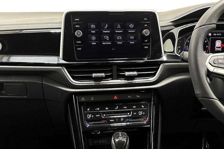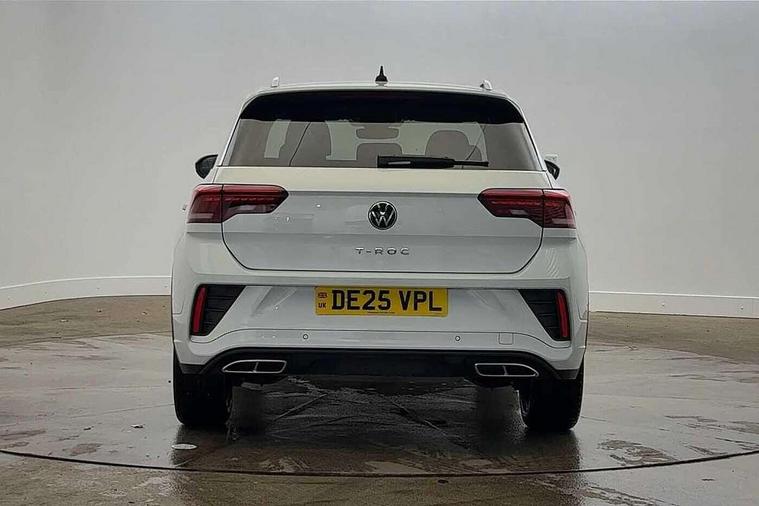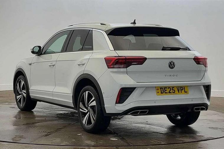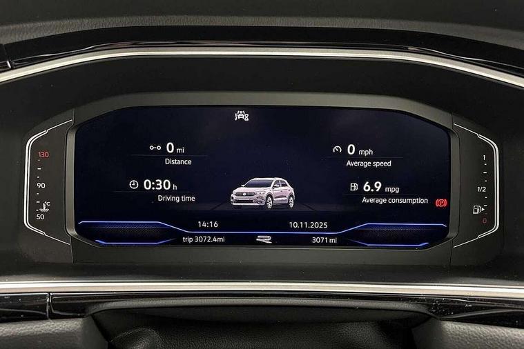 10.25" Digital cockpit pro, Advanced driver attention and drowsiness monitor, Emergency call service, Lane keeping system Lane Assist, Mobile phone interface, Modified key software - reduce switch off time for key status change to Long no motion, Online services, Park assist including front and rear parking sensors, Service interval indicator, Tailgate/trunk lid release from outside, Think blue trainer driver tips and journey analysis, Warning sound and light for front seatbelts unfastened, Wireless app connect, Battery regeneration during braking, Start/stop function with battery regeneration, DAB Digital radio, Diversity antenna for FM reception, Front and rear 6 speakers, Music playback - MP3, WMA and AAC files, Premium USB cable in choice of either Apple or Android smartphone compatibility, SD card slot, Simultaneous pairing of 2 compatible mobile devices, Title and cover art display, We Connect and We Connect Plus functionality, Auto dimming interior rear view mirror, Automatic hazard lights activation under emergency braking, Automatic headlight control with LED separate daytime running lights with coming/leaving home function, Body coloured exterior mirror housings and door handles, Electrically adjustable and heated door mirrors, Extended roof spoiler, Exterior mirrors aspherical on driver side, convex on front passenger side, External USB type C socket and charging sockets, Front windscreen wiper with intermittent wipe and 4 position delay, Heated rear window, LED 3rd brake light, LED rear combination lamps, LED rear number plate lights, Power windows with comfort operation and circuit breaker, Privacy glass for rear side windows and rear window, R-Line design body coloured bumpers, Rain sensor, Rear exhaust tailpipe, Rear fog light on one side and reversing lights on both sides, Rear side wing doors, Rear wash/wipe with intermittent wipe setting, Remote electrically foldable door mirrors, puddle lights and reverse activated passenger's door mirror, 12V power socket in centre console, 3 rear head restraints, 3 seat bench in 2nd row, 4 load lashing points in luggage compartment, Air care climatronic air conditoning system with active combination filter and 2-zone temperature control, Black roof lining, Chrome plated decorative trims, Chrome plated radiator grille inserts, air vent surrounds and light switch surrounds, Door and side trim panel with leatherette insert, Front + rear carpet mats, Front centre armrest, Front cupholders x 2, Front footwell illumination, Front reading light, Front scuff plates with R Line logo, Front seat back storage pockets, Glove compartment door with light, Instrument lighting, white adjustable panel illumination, Interior ambient lighting and surround lighting, Interior light delay, Isofix child seat preparation, Leather gearshift handle, Load-through provision with cup holder when folded down ('Unsplit rear seat bench, split folding backrest, with centre armrest), Luggage compartment lighting, Single front passenger seat, Stainless steel pedals, Storage compartment in left and right luggage area, Storage compartment in rear doors, Storage compartments in driver and front passenger doors, Sunvisors with illuminated vanity mirrors, Variable boot floor, height adjustable and removable, Driver assistance pack without proactive passenger protection - T-Roc, 3 point height adj front seatbelts + pretensioners, 3 point seatbelts in outer rear with ECE label, ABS, Child locks on rear doors, City emergency braking and pedestrian monitoring, Driver and front passenger airbag with front passenger airbag deactivation, Driver and front passenger safety-optimised head restraints, Drivers seatbelt reminder, Electronic parking brake, Electronic Stability Control (ESC) inc EDL (Electronic Differential Lock) and ASR (Traction Control), Front and rear passengers curtain airbag system including front side airbags, Hill start assist, Predictive pedestrian protection, Rear disc brakes, Two tone horn, Tyre pressure loss indicator, Volkswagen roadside assistance, Piano black decorative inserts in dashboard and front door trim panels, Trims for alloy wheels,