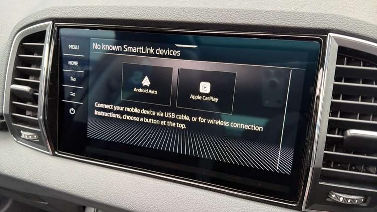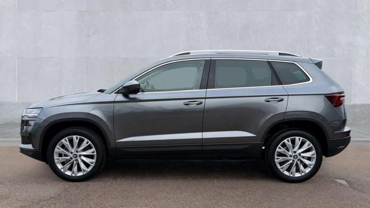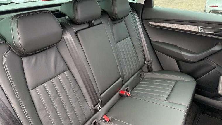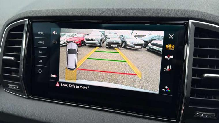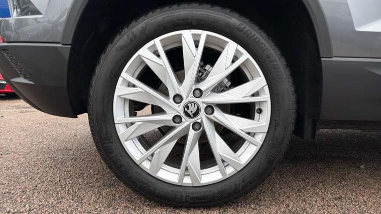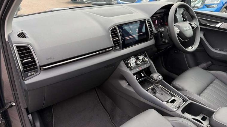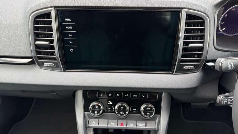Advanced driver attention and drowsiness monitor, Drive Mode Selection including ECO function, Electro-mechanical PAS, Emergency services call system, Outside temperature gauge, Sensor for driver assistance systems, Service interval indicator, SmartLink wireless for Apple and wired for Android, Start/stop system with regenerative braking, Traffic sign recognition, USB C Port x 2 in front centre console, Virtual Cockpit - 10.25" digital display, Virtual pedal with electrically operated boot door, Wireless smartphone charging, DAB radio with Bluetooth, USB connection, Acoustic glass, Aero front windscreen wipers with intermittent function, Auto dimming rear view mirror with light and rain sensors, Black electric window control buttons, Body colour door mirrors and handles, Electric front and rear windows with child proof lock, Extended rear roof spoiler, Heated rear windscreen, LED daytime running lights, LED rear lights with high functionality welcome effect and dynamic indicators, Light assistant (coming/leaving home/tunnel light), Plastic scuff plates in door apertures, Privacy glass, Rear side wing doors, Rear window wiper with washer system and intermittent control, Safety reflectors on front doors, Third brake light, Unique dark chrome design logo on alloy wheels, 1.5 litre bottle holders in driver and front passenger door panels, 12V socket in boot, 12v socket in front centre armrest with storage compartment and rear air vents, 2 spoke leather heated multifunction steering wheel with DSG paddles, 2 x Tablet holder, 3 rear height adjustable headrests, 3 seat bench in 2nd row, 4 foldable roof handles with rear coat hooks, Black floor carpet, Cargo elements in boot, Chrome inner door handles, Decorative door sills with KAROQ badging, Foldable hooks in the boot, Front head restraints, Height adjustable front three point seats belts with tensioners, Height/reach adjust steering wheel, Ice scraper, Illuminated glovebox, Illuminated luggage compartment, Interior noise suppression, Isofix child seat preparation for front passenger seat, Isofix child seat preparation outer rear, Manual lumbar support for front seats, Pearl grey interior ceiling, Pen holder, Pollen filter, Rear boot cover, Rear package tray, Rear reading lights, Rubbish bin door, Safety vest holder, Single front passenger seat, Skoda lettering on steering wheel, Storage box in upper central dashboard closed, Sunvisors with illuminated vanity mirrors, Textile floor mats, Ticket holder, Columbus pack - Karoq, Design Pack - Karoq, Non Smokers pack, Parking pack - Karoq, Automatic door unlocking in case of crash, Automatic fuel cut off in case of crash, Driver airbag, Electronic parking brake with auto hold function, Emergency rear braking signal, ESC (incl. ABS+MSR+ASR+EDS+HBA+DSR+RBS+MKB), Front side airbags, Head airbags, Hill hold control, Knee airbags, Passenger airbag with switch-off function, Pedestrian monitor, Power operated child safety locks, Seatbelt reminder signalisation and pretensioner for all seats, Three point seatbelts rear, Two tone horn, Tyre pressure monitor, Alarm with interior monitoring, back up horn and tilt sensor with safe function, Electronic engine immobiliser, Keyless entry and start/stop, Remote central locking with 2 remote folding keys, Black centre console, Chrome framed air vents, Satin black dashboard, Anti-theft wheel bolts protection, Breakdown and tool kit,