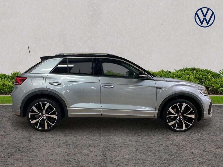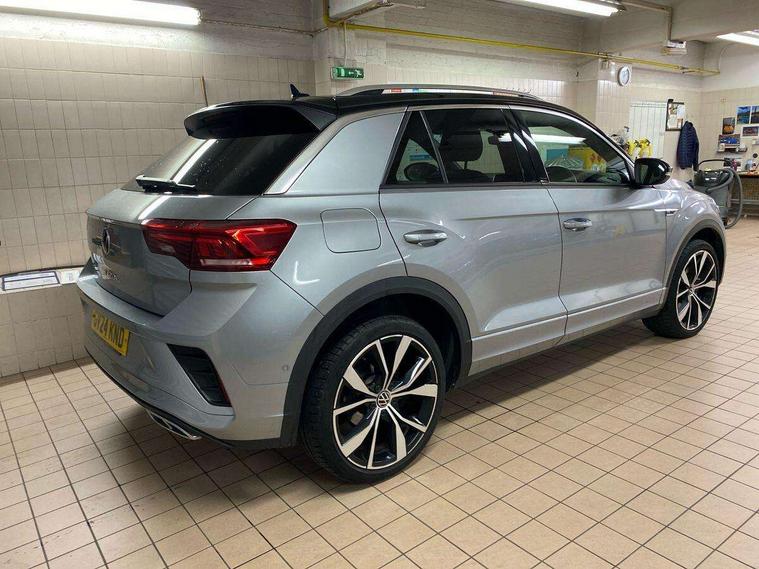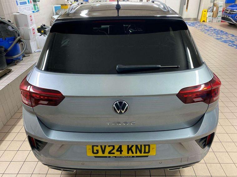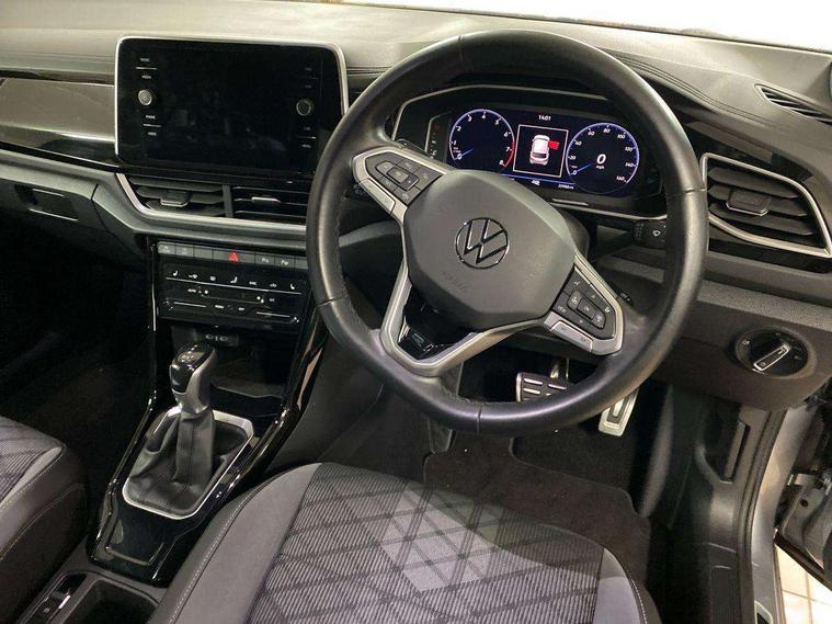10.25" Digital cockpit pro, Advanced driver attention and drowsiness monitor, Bluetooth mobile phone interface, Emergency call service, Lane keeping system Lane Assist, Modified key software - reduce switch off time for key status change to Long no motion, Online services, Park assist including front and rear parking sensors, Service interval indicator, Tailgate/trunk lid release from outside, Think blue trainer driver tips and journey analysis, Warning sound and light for front seatbelts unfastened, Wireless app connect, Battery regeneration during braking, Start/stop function with battery regeneration, Diversity antenna for FM reception, Music playback - MP3, WMA and AAC files, Premium USB cable in choice of either Apple or Android smartphone compatibility, SD card slot, Simultaneous pairing of 2 compatible mobile devices, Title and cover art display, We Connect and We Connect Plus functionality, 3rd brake light, Auto dimming interior rear view mirror, Automatic hazard lights activation under emergency braking, Automatic headlight control with LED separate daytime running lights with coming/leaving home function, Electrically adjustable and heated door mirrors, Extended roof spoiler, Exterior mirrors aspherical on driver side, convex on front passenger side, External USB type C socket and charging sockets, Front windscreen wiper with intermittent wipe and 4 position delay, Heated rear window, LED rear combination lamps, LED rear number plate lights, Power windows with comfort operation and circuit breaker, R-Line design body coloured bumpers, Rain sensor, Rear exhaust tailpipe, Rear fog light on one side and reversing lights on both sides, Rear side wing doors, Rear wash/wipe with intermittent wipe setting, Remote electrically foldable door mirrors, puddle lights and reverse activated passenger's door mirror, 12V power socket in centre console, 3 rear head restraints, 3 seat bench in 2nd row, 4 load lashing points in luggage compartment, Air care climatronic air conditoning system with active combination filter and 2-zone temperature control, Black roof lining, Chrome plated radiator grille inserts, air vent surrounds and light switch surrounds, Door and side trim panel with leatherette insert, Front + rear carpet mats, Front centre armrest, Front cupholders x 2, Front footwell illumination, Front reading light, Front scuff plates with R Line logo, Front seat back storage pockets, Glove compartment door with light, Instrument lighting, white adjustable panel illumination, Interior ambient lighting and surround lighting, Interior light delay, Isofix child seat preparation, Leather gearshift handle, Load-through provision with cup holder when folded down ('Unsplit rear seat bench, split folding backrest, with centre armrest), Luggage compartment lighting, Single front passenger seat, Stainless steel pedals, Storage compartment in left and right luggage area, Storage compartment in rear doors, Storage compartments in driver and front passenger doors, Sunvisors with illuminated vanity mirrors, Variable boot floor, height adjustable and removable, Driver assistance pack without proactive passenger protection - T-Roc, 3 point height adj front seatbelts + pretensioners, 3 point seatbelts in outer rear with ECE label, ABS, Child locks on rear doors, City emergency braking and pedestrian monitoring, Driver and front passenger airbag with front passenger airbag deactivation, Driver and front passenger safety-optimised head restraints, Drivers seatbelt reminder, Electronic parking brake, Electronic Stability Control (ESC) inc EDL (Electronic Differential Lock) and ASR (Traction Control), Front and rear passengers curtain airbag system including front side airbags, Hill start assist, Predictive pedestrian protection, Rear disc brakes, Two tone horn, Tyre pressure loss indicator, Volkswagen roadside assistance, Anti-theft alarm system with interior monitoring, backup horn, and towing protection, Remote central locking with SAFELOCK, radio remote control with 2 remote control folding keys, Trims for alloy wheels,