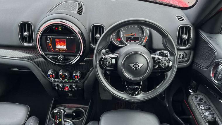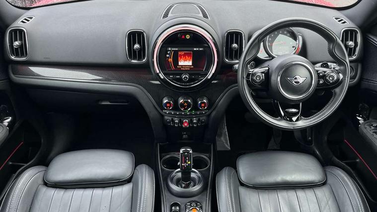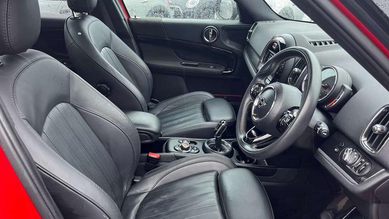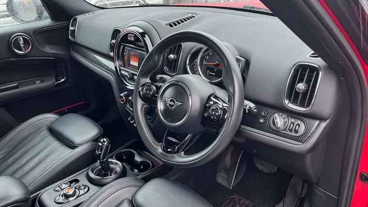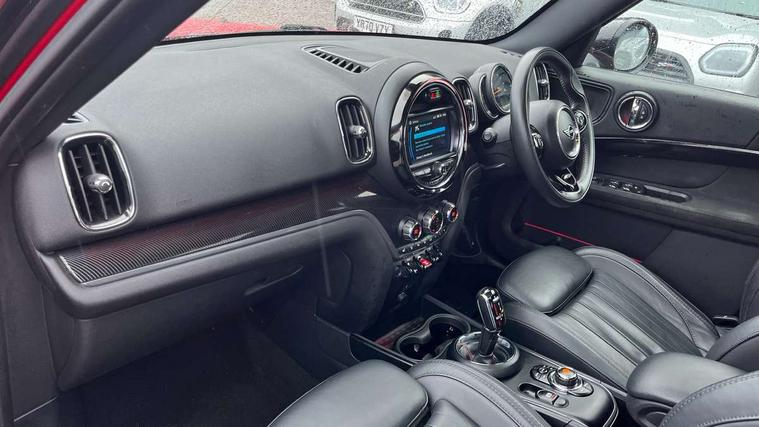 Active Guard incl speed limiting and lane departure functions with auto steering, and front collision warning with brake intervention, Automatic start/stop function with brake energy recuperation, Electro-mechanical speed dependant steering assistance, Instrument cluster, Mini E-call, MINI TeleServices, On board computer, Rear parking distance control, Double Vanos system, Fully variable valve control, High precision injection, Performance Control, Steptronic sport transmission with double clutch and steering wheel paddles, FM tuner and DAB digital radio, Bonnet scoop, Chrome border honeycomb structure radiator grille with S badge, Chrome fuel filler cap, Chrome line exterior, Day time driving lights, Dynamic brake lights, Electric windows, Heated rear window, Heated windscreen washer jets, Metal door sill strips with Cooper S imprint, Model logo, Model logo on Tailgate, Rain sensor with auto headlights, Rear fog lights, Rear window wiper, Side scuttle panel with integrated indicator, Split rear doors, Sun/heat protection glass, Twin exhaust tailpipe, White indicator lenses, 12V Accessory socket in centre console, 360L luggage compartment capacity, 4 lashing eyes in luggage compartment, 40:20:40 split folding rear seats, Chrome interior highlights, Cupholders, English handbook, Glove compartment, Height and length steering column adjustment, Isofix rear child seat preparation, Leather gearshift lever and handbrake gaiters, LED reading lights, vanity mirror lights, front foot well light and spotlight on front seats, Manual air conditioning, Mechanical seat adjustment, driver seat height adjust, forward/back and front seats backrest, MINI Yours fine walk nappa leather steering wheel with contrast stitching in silver and MINI Yours badge, Multifunction steering wheel, Passenger seat height adjuster, Storage compartments in doors, Sunvisors with vanity mirrors, Excitement pack - Countryman, Navigation pack - Countryman, 2 tone horn, 3 point seatbelts on all seats, 6 Airbags - front, side, head and seat belt tensioners, Anti-lock braking system (ABS), DSC - Dynamic Stability Control, Electronic handbrake, Front and rear disc brakes, Hill start assist, Tyre pressure monitoring system, Alarm system with tilt sensor, monitoring doors, bonnet interior and tailgate, Auto drive away locking, Deadlocking function, Electronic vehicle immobiliser, Locking wheel bolts, Start/stop toggle with keyless go, Chrome line interior, Tool kit,