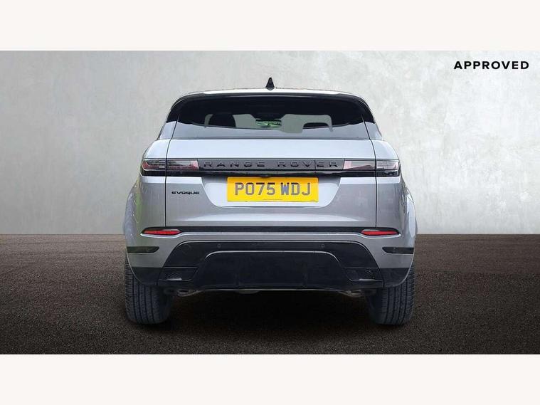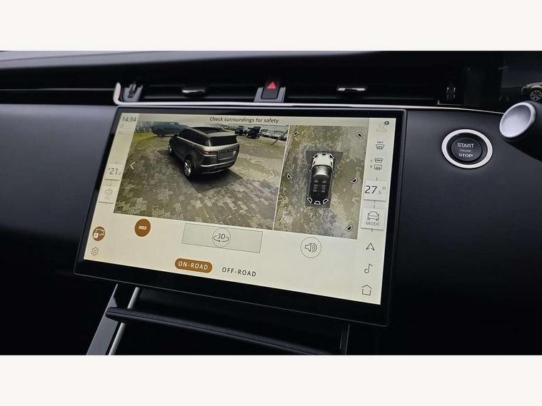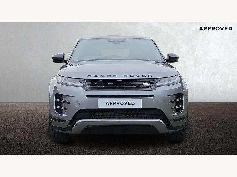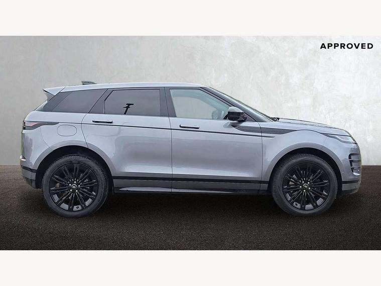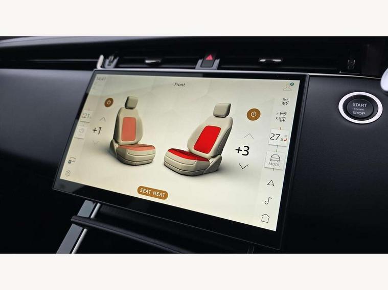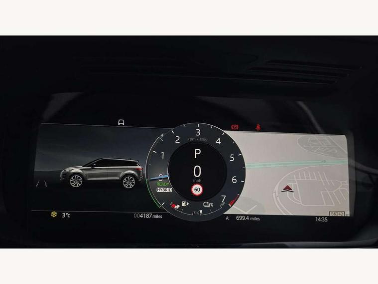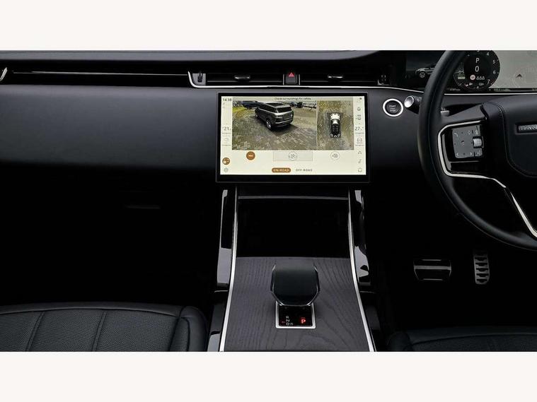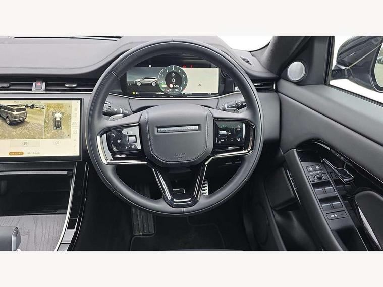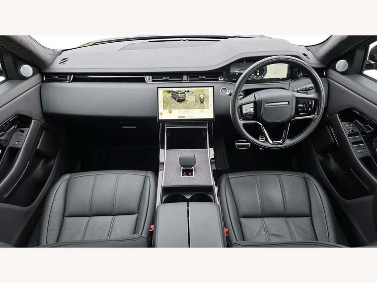11.4" touch screen, 3D 360 degree surround camera with wade sensing, Adaptive cruise control, Android Auto, Apple car play, Blind spot assist, Bluetooth connectivity, Brake pad wear indicator warning light, Driver condition monitor, eCall emergency system, Eco mode, Electronic power assisted steering (EPAS), Front and rear parking sensors with auto brake, InControl remote, Interactive driver display, Land Rover InControl apps, Lane keep assist, Pivi pro connected includes diamond pivi variant, smart settings, connected navigation pro, nuance speech licence, Powered tailgate/boot lid, Rear collision monitor, Rear traffic monitor, Tailgate, Traffic sign recognition with adaptive speed limiter, Voice control system, Wireless device charging, All terrain progress control, Electric rear axle drive, Large fuel tank, Passive suspension, Public charging cable, Terrain Response 2, Digital Audio Broadcast radio-DAB, Meridian surround sound system with 650W subwoofer and 14 speakers, Steering wheel mounted controls, Acoustic laminated windscreen, Auto headlights, Automatic headlight levelling, ClearSight interior rear view mirror, Electric windows with one touch open/close and anti trap, Flush deployable exterior door handles, Front and rear recovery eyes, Heated rear window with timer, Heated washer jets, Heated windscreen, Pixel LED headlights with signature DRL and LED tail Lights, Power fold, auto-dimming, heated door mirrors with approach lights and auto dimming driver side, Rain sensing windscreen wipers, Rear animated directional indicators, Rear fog lights, Rear side wing doors, Rear wiper, Sliding panoramic roof with powered sunblind, Tailgate spoiler, Third brake light, Winter wiper park position, 14 way driver memory electric front seats with 2 way manual headrests + 4 way lumbar support, bolsters, 40:20:40 split folding rear seats with centre headrest and armrest, Bright metal pedals, Carpet mats, Customer configurable single point entry, Electrically adjustable steering column with memory function and easy entry/exit, Front and rear cupholders, Heated steering wheel, Isofix system on outer rear seats, Overhead lighting console, Overhead stowage for sunglasses, Passive front head restraints, Rear air vents, Rear head restraints, Satin chrome gearshift paddles, Single passenger seat, Sunvisors with illuminated vanity mirrors, Twin sliding front centre armrest, Power socket pack 2 - Evoque, 3 rear 3 point seatbelts, Anti-lock braking system (ABS), Brake hold function, Customer configurable autolock, DSC - Dynamic Stability Control, Electronic brake force distribution, Electronic parking brake, Electronic traction control, Emergency braking, Front and rear seatbelt reminder, Hill descent control, Hill launch assist, Low traction launch, Occupant protection assist, Passenger seat occupant detector, Power operated child locks, Roll stability control, Six airbags - Driver and passenger airbags/driver knee airbag/front side airbag and curtain airbags, Torque vectoring brake, Tyre pressure monitoring system, Alarm, Immobiliser, Intrusion sensor, Keyless entry, Locking wheel nuts, All season tyres,
