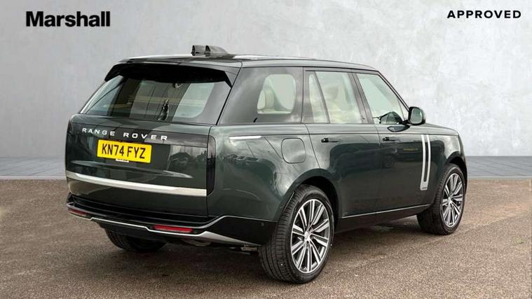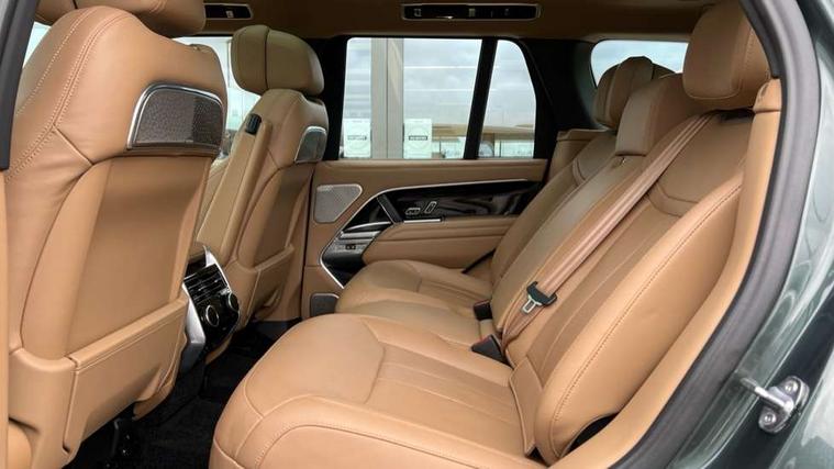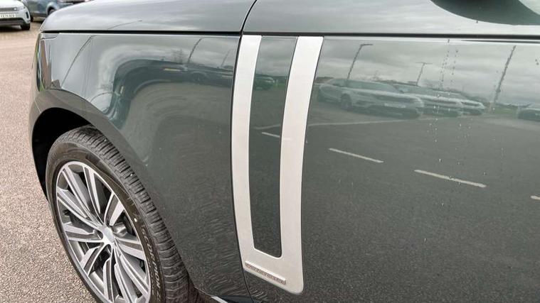13.1" Touchscreen, 3D surround camera inc frwd traffic detection, vehicle clearance guidance, 3D view, clearsight ground view, manoevure light, 360 parking aid, wade sensing, All Terrain Info Centre, All wheel steering, Android Auto, Apple car play, Blind spot assist, Bluetooth connectivity streaming, Configurable programs, Driver condition response, Eco mode, Electric power assisted steering (EPAS), Emergency call service, Front and rear parking aid, Head up Display, Interactive driver display, Lane keep assist, Rear collision monitor, Rear traffic monitor, Remote, Traffic sign recognition with adaptive speed limiter, Wi-Fi Enabled with data plan, Wireless device charging with phone signal booster, 8 speed automatic transmission, Active damper technology system, Adaptive dynamics, All terrain progress control, All Wheel Drive (AWD), Automatic access height, Terrain Response 2 Auto, Twin speed transfer box, Digital Audio Broadcast radio-DAB, Pivi pro including smart settings, Connected navigation pro, nuance speech, USB socket, Acoustic laminated windscreen, Animated directional indicators, Automatic headlights, Automatic levelling headlights, Centre high mounted stop light, ClearSight interior rear view mirror, Electric windows with one touch open/close and anti trap, Engine cover, Flush deployable exterior door handles, Front and rear recovery eyes, Front fog lights, Headlamp power wash, Heated rear window, Heated washer jets, Illuminated metal treadplates with Autobiography script, Laminated front and rear side glass, LED tail lights, Power fold, auto-dimming, heated door mirrors with approach lights, Rain sensing windscreen wipers, Rear boot, Rear fog lights, Rear side wing doors, Side repeater indicators in mirror, Solar attenuating windscreen, Trailer stability assist, Winter wiper park position, 12V power sockets, 3 seat bench in 2nd row, Air quality sensor, Auto folding loadspace cover, Bright metal pedals, Cabin air purification pro, Cabin lighting, Customer configurable single point entry, Driver and passenger front seat armrests, Easy boot loading, Ebony Carpet, Electric rear side window sunblinds, Four zone climate control, Front and rear cupholders, Front and rear grab handles, Front head restraints, Gearshift paddles, Heated steering wheel, Hook in load space, Loadspace light, Luggage tie down in loadspace, Multifunction steering wheel, Rear centre armrest, Rear head restraints, Rear ISOFIX, Single front passenger seat, SV bespoke carpet mats, Twin blade sunvisors with Illuminated vanity mirrors, Upper and lower glovebox, Versatile loadspace floor in tailgate, Online pack with data plan - Range Rover, 3x3 point rear seat belts, Anti-lock braking system (ABS), Black brake calipers, Brake hold function, Cornering brake control (CBC), Customer configurable autolock, DSC - Dynamic Stability Control, Electronic brake force distribution, Electronic parking brake, Electronic traction control, Emergency brake assist, Emergency braking, Front airbags with passenger seat occupant detector, Front side airbags, Hill descent control, Hill launch assist, Illuminated seat belt buckles, Low traction launch, Occupant protection assist, Power operated child locks, Roll stability control, Tyre pressure monitoring system (TPMS), Immobiliser, Intrusion sensor and alarm, Keyless entry, Locking wheel nuts, Remote central locking, Noble chrome controls,