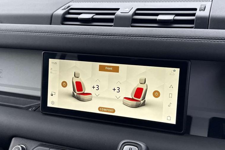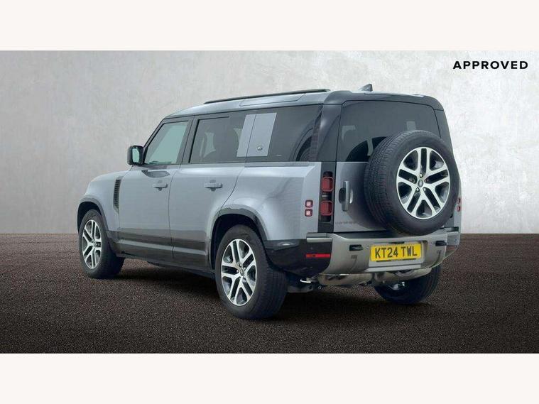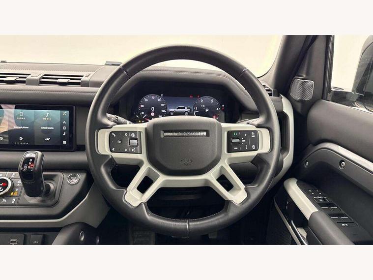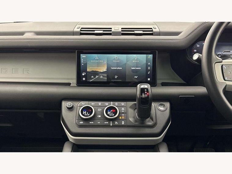 360 degree parking aid, 3D Surround Camera with 360 View, 180 Rear View, Front Traffic Detection, Forward Vehicle Guidance, Tow Hitch Assist and clear sight Ground View, Adaptive cruise control, Android Auto, Apple CarPlay, Assisted tailgate with soft close, Blind spot assist, Bluetooth system, Brake pad wear indicator, Clear exit monitor, Connected navigation pro, Driver condition monitor, Electric power assisted steering (EPAS), Interactive driver display, Lane keep assist, Push button start, Rear traffic monitor, Traffic sign recognition with adaptive speed limiter, Trip computer, Wade Sensing, 8 speed automatic transmission, Adaptive dynamics, All wheel drive system, Twin speed transfer box, DAB Radio (Digital Audio Broadcasting), Meridian 400w sound audio system with 11 speakers and subwoofer, Pivi pro connected, Automatic headlight levelling, Automatic headlights, Black exposed rear recovery eyes, Centre high mounted stop light, Electric heated/power fold door mirrors with approach lights and auto dimming driver side, Electric windows with one touch open/close and anti-trap, Follow me home lighting, Heated rear window with timer, Heated windscreen, LED tail lights, Privacy glass, Puddle lights, Rain sensing windscreen wipers, Rear fog lights, Rear side wing doors, Rear wiper, Side hinged tailgate, Trailer stability assist, X-Dynamic badge, 12V power socket in loadspace, 2 seat bench in 3rd row, 3 seat bench in 2nd row, Alpine lights, Configurable cabin lighting, Durable rubber cabin flooring, Durable rubber loadspace flooring, Footwell lights, Front passenger isofix child seat attachment, Loadspace cover, Loadspace Hook, Multifunction steering wheel, Overhead stowage for sunglasses, Premium cabin lighting, Rear headrests, Rear ISOFIX, Rear reading lights, Single front passenger seat, Storage glovebox, Sunvisors with illuminated vanity mirrors, Online pack with data plan - Defender, 7 three point seatbelts, ABS, Brake hold function, Cornering brake control (CBC), Customer configurable autolock, DSC - Dynamic Stability Control, EBD - Electronic brakeforce distribution, Electric parking brake (EPB), Emergency brake assist, Emergency braking, ESP + traction control, Front airbags with passenger seat occupant detector, HDC - Hill descent control, Hill launch assist, Low traction launch, Power operated child locks, Remote for (e-Call, Optimised assistance call, InControl app, Climate, beep and flash and door), RSC - Roll stability control, Seat belt reminder, TPMS (Tyre pressure monitoring system), Alarm, Immobiliser, Intrusion sensor, Keyless entry, Locking wheel nuts,