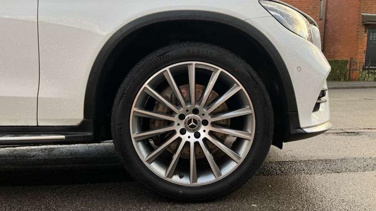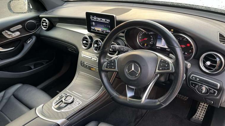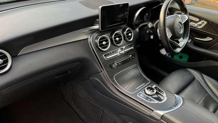7" colour screen, Active park assist with parktronic system, Attention assist, Bluetooth interface for hands free telephone, Collision prevention assist plus, Crosswind Assist, DYNAMIC SELECT with a choice of driving modes (ECO, Comfort, Sport, Sport+ and Individual), Garmin Map Pilot navigation system with SD card, touchpad and voice control, Instrument cluster with 5.5-inch TFT multi-function display, Multi function trip computer, Outside temperature gauge, Power opening/closing tailgate, Remote boot release, Service indicator (ASSYST), 66 litre fuel tank, 5 speakers, DAB Digital radio, Frontbass loudspeakers, Mercedes Audio 20 radio/single CD + telephone keypad, USB connection, Adaptive brake lights, Aerodynamic rear spoiler, AMG bodystyling, Automatic headlights, Body coloured bumpers, Chrome exterior trim, Electric panoramic sunroof with sunblind, Electric windows one touch open/close, Electrically adjustable and heated door mirrors, Exhaust tailpipe finisher, LED daytime running lights, LED rear lamps, Privacy glass (to rear of B post), Rain sensor windscreen wipers, Range adjustable headlights, Rear wiper, Tinted glass all round, 2 cupholders in front centre console, 2 way rear head restraints, 3 spoke flat bottom AMG steering wheel in nappa leather, 4 way adjustable front head restraints, 4 way electric lumbar support for driver and front passenger, 40:20:40 split folding rear seats, Ambient lighting, AMG floor mats, AMG sports seats, Auto Mercedes-Benz child seat recognition sensor, Automatic climate control, Black roof lining, Dividing net - rear, Easy-pack load compartment cover, Electric front seat height adjustment, Front armrest with storage box, Front door sills with Mercedes benz lettering, Gearshift paddles, Heated front seats, Height/reach adjustable steering column, Lockable/illuminated glovebox, Multifunction steering wheel, Rear top tether child seat ISOFIX attachment, Sports pedals with stainless steel surfaces and rubber studs, Sunvisors with illuminated vanity mirrors, Interior lighting pack - GLC, Memory pack - GLC, Mirror pack - GLC, Storage pack - GLC, 3 rear 3 point seatbelts, ABS with Brake Assist, Active bonnet, Adaptive brake system, Brake calipers with Mercedes-Benz lettering + perforated brake discs, Child proof door locks, Drivers knee airbag, Dual stage driver/passenger airbags, Electronic parking brake, ESP with ASR, Front and rear seatbelt reminder, Front passenger seat occupancy sensor, Front side airbags, Hill hold function, Tyre pressure monitoring system, Warning triangle and first aid kit, Window airbags, Alarm system/interior protection/immobiliser, Automatic door locking, Keyless entry and keyless start, Remote central locking, Tyre inflation kit,
