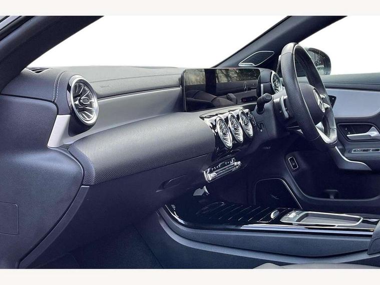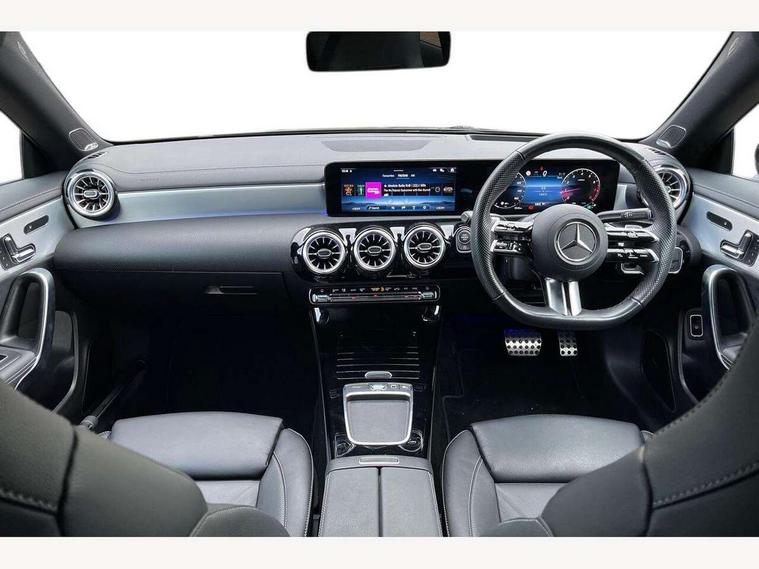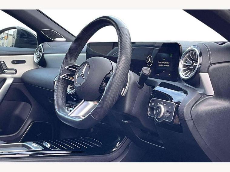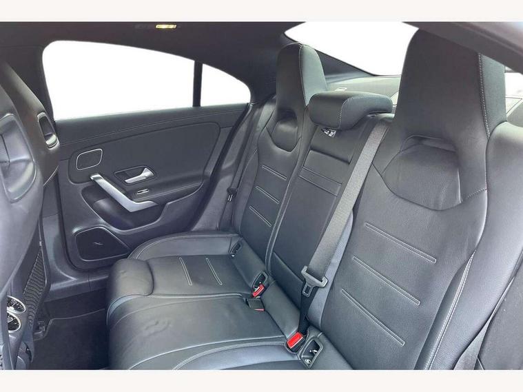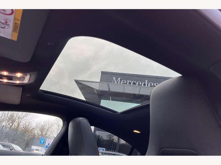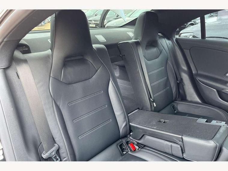 10.25 inch Instrument display with digital cockpit, 10.25 inch touchscreen central media display, Active lane keeping assist, Attention assist - Monitors steering behaviour and long journey fatigue, Bluetooth connection, Car wash mode, Cruise control with limiter, Direct steer system, DYNAMIC SELECT with a choice of driving modes (ECO, Comfort, Sport and Individual), ECO start/stop function, Fingerprint sensor, Fluid level warning indicator for fuel, oil, coolant and washer fluid, Hard-disk navigation, Head up Display, Hey Mercedes Voice activation, Lamp failure indicator, Mercedes me connect including emergency call system, accident recovery, breakdown and maintenance management, Mercedes me remote services, Outside temperature gauge, Owners manual in English, Pre-installation of private car share, Radio aerial integrated into front and rear windshields, Service indicator (ASSYST), Smartphone integration with Apple CarPlay and Android auto, Traffic sign assist, Trip computer in multifunction display with current consumption indicator, Wireless charging in the front centre console, Comfort suspension with ride height lowering, Rear axle multi-link, Burmester lettering on the speakers, Burmester surround sound system (710W) with dolby atmos, speakers - 1 central, 1 woofer, 1 tweeter, 1 subwoofer with 60W, 2 in C pillar, DAB digital radio tuner, MBUX multimedia system, Pre installation for Mercedes Benz Link, Adaptive brake lights, AMG body styling with AMG front apron and rear apron and visible exhaust tailpipe in chrome trim elements, Body colour door handles, Electric panoramic sunroof with automatic tilt and convenience closing fuinctions, rain sensor auto closing and electronic roller sunblind, Electric windows, Electrically adjustable and heated door mirrors with integrated LED indicators, Exhaust system with 2 Visible tailpipe trim elements and rear apron with trim in chrome, Hand free access, Headlamp assist automatic headlamp activation, Heated glass rear windscreen + timer control, High level LED third brake light, Integrated LED daytime running lights, Interior mirror with black reading lamps and frameless, LED tail lamp, Multibeam LED headlamps with adaptive highbeam assist plus, Privacy glass with dark tinting on rear side windows and rear window, Radiator grille with Mercedes-Benz pattern in chrome and central Mercedes star, single louvre in high-gloss black with chrome inserts, Rain sensing windscreen wipers with two sensitivity settings, Rear boot, Rear fog lamp, Rear side wing doors, Variable front intermittent wipers, 3 seat bench in 2nd row, 3 twin spoke flattened multifunction steering wheel in nappa leather - horizontal twin spoke in high gloss black, vertical twin spoke in silver chrome, 40:20:40 split folding rear seat backrests, Air conditioning - Two zone thermotronic luxury automatic climate control with display, Air vents with surround in silver chrome, Automatic child seat recognition sensor, Black roof lining, Brushed stainless steel sports pedals with rubber studs, Electrically adjustable front memory seats including 4 way lumbar support, Floor mats with stitched AMG lettering, Fluorescent jacket, Front centre armrest with stowage, Galvanished gear shift paddles in silver chrome, Interior lighting - 64 colour Ambient lighting, Luggage net on driver/front passenger seat backrest, Manually height and reach adjustable steering column, Rear armrest with two integral cup holders for drinks, Rear head restraints, Single front passenger seat, Sport seats with fixed head restraints, Stowage compartment in centre console with retractable cover, Sunvisors with illuminated vanity mirrors, Twin front cupholders, Two outer rear seat isofix and top tether child seat fixing points, Keyless go comfort pack - CLA, Light and sight pack - CLA, Mirror pack - CLA, Night package - CLA, Parking pack with 360 degree camera - CLA, Seat comfort pack - CLA, USB package plus - CLA, Winter pack - CLA, Active bonnet pedestrain safety measure which detects an impact and raises bonnet by 65mm, Adaptive brake assist with hold function and hill start assist, Anti lock braking system (ABS) with brake assist, Black seat belts, Bonnet with power domes, Brake calipers with Mercedes-Benz lettering, Brake pad wear warning indicator, Childproof locks manually operated for rear doors and electrically operated for rear power windows, Crash responsive emergency lighting, Driver and front passenger head and sidebags, Driver and front passenger windowbags, Drivers knee airbag, Dual stage driver and front passenger airbags, Electric parking brake, Electronic stability programme with acceleration skid control, ESP curve dynamic assist, Exit warning, Front and rear seatbelt reminder, Front passenger seat occupancy sensor, Perforated front brake discs, Sports braking system, Three point rear seat belts, Tyre pressure monitoring system, Warning triangle and first aid kit, Alarm system with immobiliser and interior protection -Thatcham category 1, Guard 360 deg vehicle protection - tow away protection with visual, acoustic warning, interior monitoring, preinstallation for parking damage, Remote central locking and crash sensor with emergency opening function, Light aluminium with longitudinal grain interior trim, 19" AMG multi-spoke black painted light alloy wheels with high sheen rim flange, Summer tyres, Tirefit tyre sealant kit,