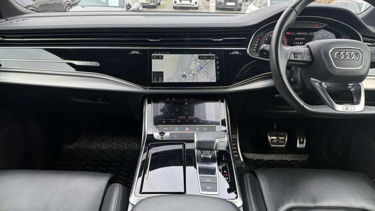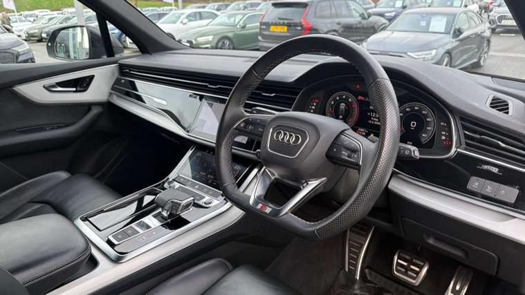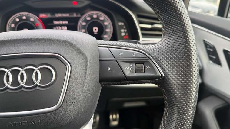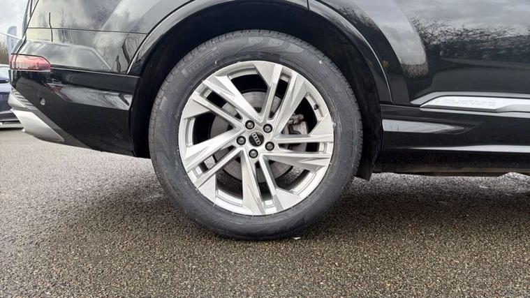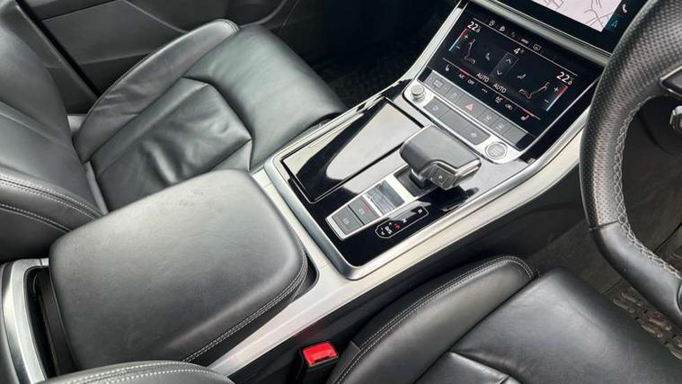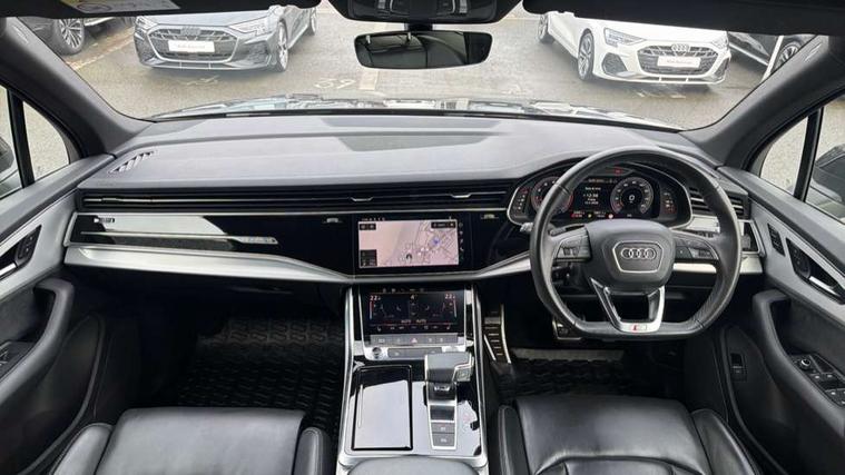Audi connect safety and service (e-call), Audi connect with Amazon Alexa Integration, Audi drive select (Auto, Comfort, Dynamic, Efficiency, Individual, Off-road and All road), Bluetooth interface, Camera based traffic sign recognition, Electromechanical steering, MMI navigation plus with MMI touch screens includes 10.1" and 8.6" screens with haptic feedback, Natural voice recognition, Parking system plus with 360 degree display (front, rear and side sensors) - acoustic and visual park assist system, Power operated tailgate, Rear view camera, Smartphone interface includes wireless Apple carplay/Android Auto, Start/stop system, 48V Mild hybrid technology, 85 litre fuel tank, Adaptive air suspension, Quattro all wheel drive with self locking centre differential, Audi music interface - front 2 USB-C ports with charger and data functions, Audi sound system with 6 channel amplifier, 180 watt amplifying capacity and 10 loudspeakers including subwoofer, DAB digital radio module, 3rd brake light, Aluminium roof rails, Aluminium window trim, Audi matrix LED headlights with dynamic front and rear indicators, Auto dimming frameless rear view mirror, Body coloured door mirrors, Electrically adj heated/folding + automatically dimming exterior mirrors with memory + automatic kerb side function for passenger side exterior mirror, Heat insulating glass in windshield, Integrated LED indications in door mirrors, LED daytime running lights, LED rear tail lights, Privacy glass - dark tinted rear and rear side windows from B-pillar backwards, Rear side wing doors, Rear wiper, S Line badge on wings, S line bumpers in full body colour paint finish, S line roof spoiler, S line styling side ventilation grilles and side skirts, 2 seat bench in 3rd row, 2 zone automatic climate control, 3 seat bench in 2nd row, 7 seat layout with ISOFIX points for the front passenger seat and rear passenger seat, Black cloth headlining, Comfort front centre armrest, Electric adjustable front seat with 4 way lumbar support, driver memory functionality, Folding rear seats, Front head restraints, Front/rear floor mats, Heated front seats, Illuminated door sill trims with S logo, LED interior ambient lighting, Luggage compartment cover, Luggage compartment sill protection in stainless steel, Rear head restraints, Single front passenger seat, Stainless steel pedals, Sunvisors with illuminated vanity mirrors, 3 point seatbelts on all rear seats, Audi pre sense front, Child locks on rear doors, Driver and front passenger, front side and curtain airbags, Electromechanical parking brake, Electronic Stabilisation Control (ESC) including ABS, ASR and EDL, Extended pedestrian protection measures, Hill hold assist, Seatbelt monitoring, Tyre pressure loss indicator, Warning triangle and first aid kit, Anti theft alarm, Anti-theft wheel bolts and wheel loosening detection, Keyless Go, Remote central locking, Darkened matt brushed aluminium inlays, Tool kit, Tyre repair kit,