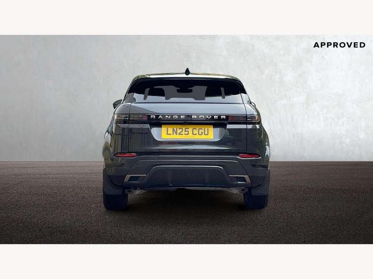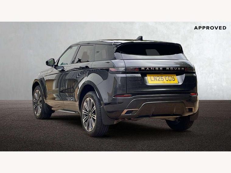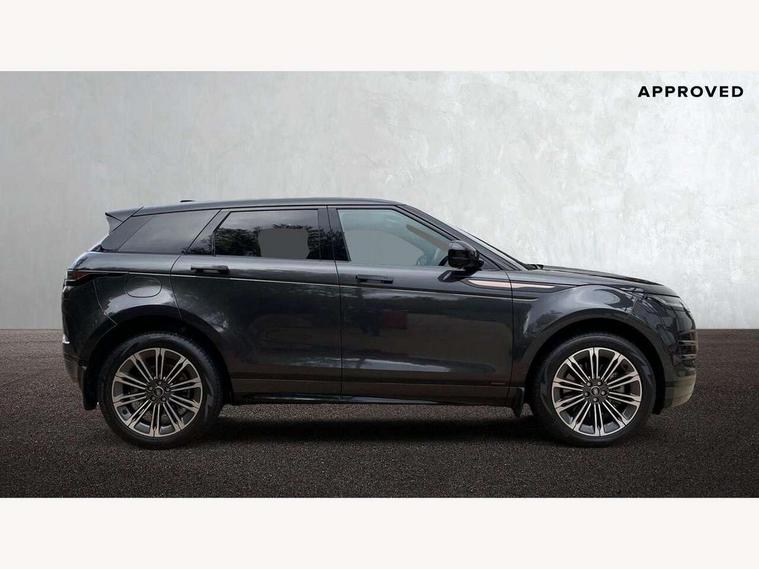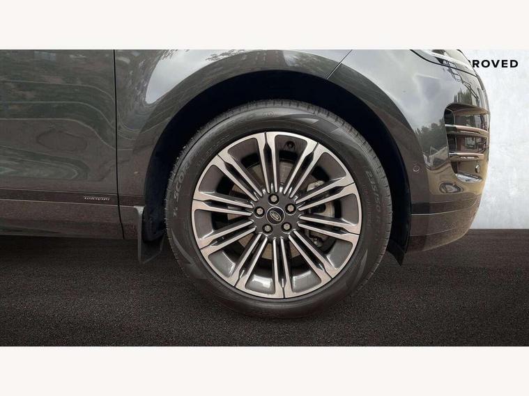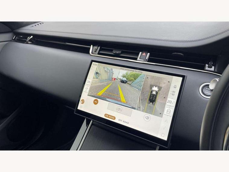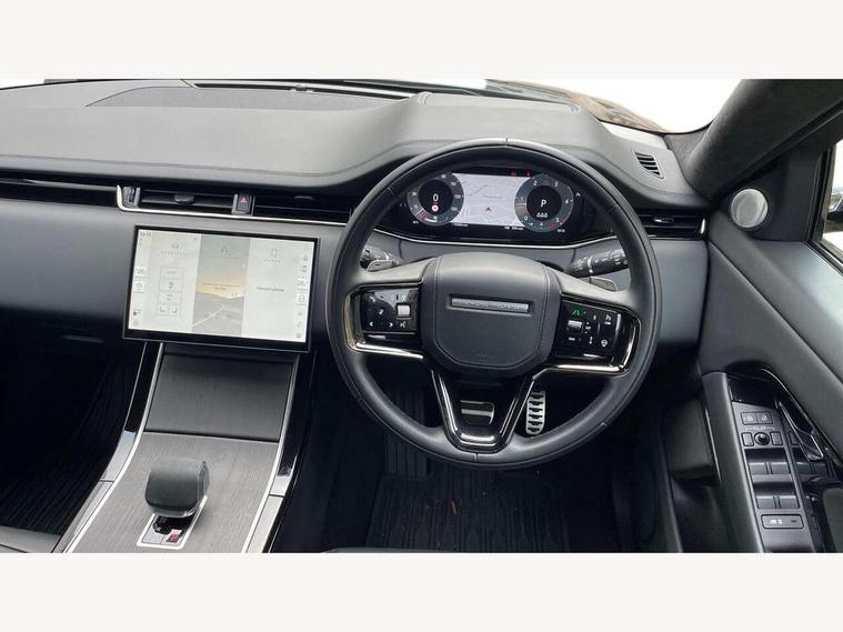 11.4" touch screen, 3D 360 degree surround camera with wade sensing, Adaptive cruise control, Android Auto, Apple car play, Blind spot assist, Bluetooth connectivity, Brake pad wear indicator warning light, Driver condition monitor, eCall emergency system, Eco mode, Electronic power assisted steering (EPAS), Front and rear parking aid, InControl remote, Interactive driver display, Land Rover InControl apps, Lane keep assist, Pivi pro connected includes diamond pivi variant, smart settings, connected navigation pro, nuance speech licence, Powered tailgate/boot lid, Rear collision monitor, Rear traffic monitor, Tailgate, Traffic sign recognition with adaptive speed limiter, Voice control system, Wireless device charging, All terrain progress control, Diesel exhaust fluid (DEF) large tank, Efficient Driveline, Large fuel tank, Terrain Response 2, Digital Audio Broadcast radio-DAB, Meridian surround sound system with 650W subwoofer and 14 speakers, Steering wheel mounted controls, Acoustic laminated windscreen, Auto headlights, Automatic headlight levelling, ClearSight interior rear view mirror, Electric windows with one touch open/close and anti trap, Flush deployable exterior door handles, Front and rear recovery eyes, Heated rear window with timer, Heated washer jets, Heated windscreen, Pixel LED headlights with signature DRL and LED tail Lights, Power fold, auto-dimming, heated door mirrors with approach lights and auto dimming driver side, Rain sensing windscreen wipers, Rear animated directional indicators, Rear fog lights, Rear side wing doors, Rear wiper, Side repeater indicators in mirror, Sliding panoramic roof with powered sunblind, Tailgate spoiler, Third brake light, Winter wiper park position, 14 way driver memory electric front seats with 2 way manual headrests + 4 way lumbar support, bolsters, 40:20:40 split folding rear seats with centre headrest and armrest, Ambient interior lighting, Bright metal pedals, Carpet mats, Customer configurable single point entry, Electrically adjustable steering column with memory function and easy entry/exit, Front and rear cupholders, Heated steering wheel, Isofix system on outer rear seats, Overhead lighting console, Overhead stowage for sunglasses, Passive front head restraints, Rear air vents, Rear head restraints, Satin chrome gearshift paddles, Single passenger seat, Sunvisors with illuminated vanity mirrors, Twin sliding front centre armrest, Power socket pack 2 - Evoque, 3 rear 3 point seatbelts, Anti-lock braking system (ABS), Brake hold function, Customer configurable autolock, DSC - Dynamic Stability Control, Electronic brake force distribution, Electronic parking brake, Electronic traction control, Emergency braking, Front and rear seatbelt reminder, Hill descent control, Hill launch assist, Low traction launch, Occupant protection assist, Passenger seat occupant detector, Power operated child locks, Roll stability control, Six airbags - Driver and passenger airbags/driver knee airbag/front side airbag and curtain airbags, Torque vectoring brake, Tyre pressure monitoring system, Alarm, Immobiliser, Intrusion sensor, Keyless entry, Locking wheel nuts, All season tyres,