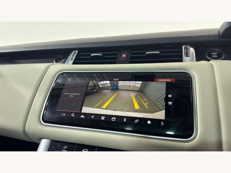 All Terrain Info Centre, Android Auto, Apple car play, Bluetooth connectivity, Electric power assisted steering (EPAS), Incontrol apps in vehicle touchscreen, Interactive Driver display instrument cluster, Mist sensor, Navigation pro system with 10" touch screen, app interface and media storage, Pro services and wifi hotspot, Push button start, Remote premium - Upgraded Incontrol remote app including remote climate control (engine dependent), remote lock + Unlock and remote beep + flash, TFT Virtual Instrument Panel, Touch pro duo system, Trip computer, Gradient release control (GRC), Bluetooth audio streaming, DAB Radio (Digital Audio Broadcasting), Incontrol protect - SOS emergency call with automatic collision detection, optimised assistance call and Incontrol remote app essential, USB/aux input socket, Acoustic front and toughened rear side glass, Acoustic laminated front windows, Adaptive brake lights, Auto dimming interior rear view mirror, Automatic headlights, Body coloured bumpers, Body coloured door mirrors, Centre high mounted stop light, Electric windows with one touch open/close and anti trap, Electrical towing preparation, Engine cover, Follow me home lighting, Front and rear recovery eyes, Front fog lights, Headlight power wash, Heated rear window, Heated windscreen includes heated washer jets, LED rear lamps, Privacy glass (Tinted glass rear of B pillar), Rain sensing windscreen wipers, Rear fog lights, Rear side wing doors, Rear wash/wipe, Remote window closing, Side repeater indicators in mirror, Sport Badge in silver, Standard bonnet, Trailer stability assist, 2 way active front head restraints, 2 way rear head restraints, 3 seat bench in 2nd row, 60/40 load through rear seats, Auto air recirculation, Bright metal foot pedals, Centre console with armrest, Climate control memory, Customer configurable single point entry, Driver's footrest, Front and rear cupholders, Front door storage space, Front map lights, Front seat back map pockets, Front stowage pocket, Front/rear passenger grab handles, Heated steering wheel, Isofix child seat preparation, Leather steering wheel with Atlas inserts, Loadspace light, Loadspace mounting provisions, Lockable glovebox, Multifunction steering wheel, Pollen filter, Power socket, Reach/rake electric adjustable steering column + entry/exit tilt away, Rear centre armrest, Rear ISOFIX, Roller blind loadspace cover, Satin chrome gearshift paddles, Single front passenger seat, Three 12V accessory power outlets, Smartphone pack - Range Rover Sport, 3 point seatbelts on all seats, Anti-lock braking system (ABS), Brake pre-fill technology, Cornering brake control (CBC), Curtain airbags, Customer configurable autolock, DSC - Dynamic Stability Control, Dual stage driver/passenger airbags, EBD - Electronic brakeforce distribution, Electric parking brake, Electronic traction control, Emergency braking includes city, urban AEB and pedestrian, Front seatbelt pretensioners, Gradient acceleration control, Grey anodised brake calipers, Height adjustable front seatbelts, Hill descent control, Hill launch assist, Low traction launch, Passenger seat occupant detector with front airbags, Power operated child locks, Roll stability control, Seatbelt warning, TPMS (Tyre pressure monitoring system), Immobiliser, Intrusion sensor, Keyless entry, Locking wheel nuts, Perimetric and volumetric anti theft alarm, Remote locking, Grand black veneer,
