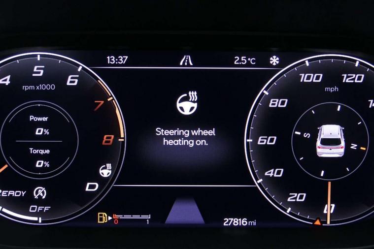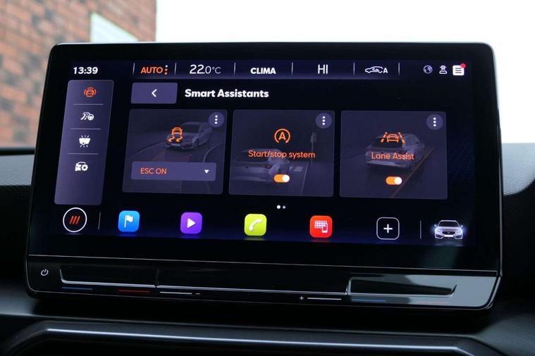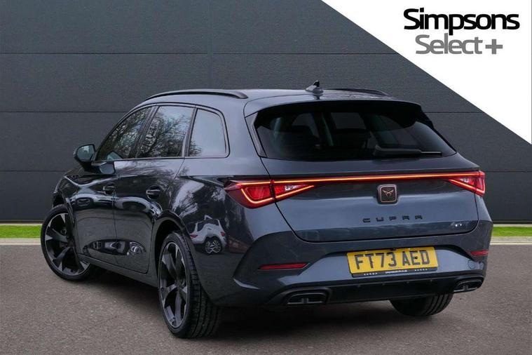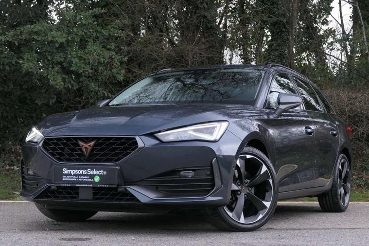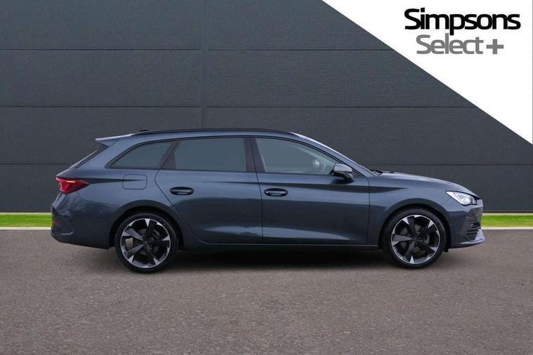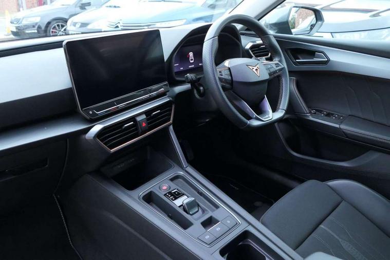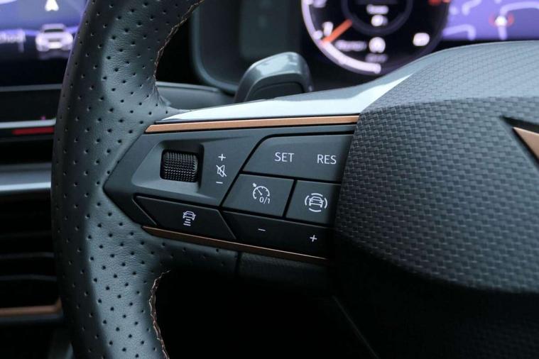 CUPRA drive profile selection with (Comfort/Sport/Individual), throttle response and gearshift mode, Digital cockpit, E-call, Electro mechanical speed sensitive power steering, Front assist with forward collision warning braking reaction to vehicles, pedestrians and cyclists, Full link smartphone integration with Mirror Link, wireless Apple CarPlay and wired Google Android Auto, Lane assist, Lockable tailgate, Park assist (inc front/rear parking sensors), Rear view camera, RPM, trip computer, outside temp gauge, instrument light brightness, low fuel warning light, lights on reminder, gearshift indicator, Service interval indicator, Start/stop system with regenerative braking, Wireless phone charger, Sports suspension, Auxiliary input socket, Auto dimming rear view mirror, Body colour door handles, Body coloured bumpers, Cupra sports bumpers, Dark tinted rear windows, Electric front/rear windows, Electrically adjustable, heated and folding door mirrors, Gloss black roof rails, LED front fog lamps with cornering function, LED headlights with dynamic turn signals, tail lights, rear fog lights with rear coast to coast lighting, Rain sensing wipers, Rear diffuser with twin exhaust pipe on each side, Rear side wing doors, Rear wash/wipe, Separate daytime running light with automatic headlight control and coming home feature, Third brake light, 12v power supply in centre console, 12v socket in loadspace, 3 seat bench in 2nd row, 5 headrests, 60/40 split rear bench seat with armrest, Ambient lighting with glovebox, footwell and single monocolour, CUPRA Leather flat bottomed, heated, perforated steering and gearshift paddles, Driver/passenger manual seat height adjustment, Four x USB Type C ports (2 in front and 2 in rear), Front and rear reading lights X 4, Front centre armrest, Front seats manual lumbar adjustment, Grey headlining, Height/reach adjust steering wheel, Illuminated interior front door sills, ISOFIX points in outer rear seats with top tether anchorage points, Jack and tool kit, PVC/Cloth upholstery with copper stitching, Single front passenger seat, Sliding boot cover, Sports seats, Storage pockets on rear of front seats, Sunvisors with illuminated mirror, Three zone climate control, Media system plus with navigation pack - Leon Cupra, Safety and driving pack (M) - Cupra leon, 3 point seatbelts on all rear seats, ABS, Brake control system - ESC and brake booster, Child proof door locks, Cupra black brake calipers, Driver and front passenger airbags with front passenger airbag de-activation, front side and curtain airbags, Electronic parking brake, Extended safety system - seat belt tensioner, window closure and hazard lights, Hill hold control, Rear disc brakes, Seat belt reminder for front and rear seats, Tiredness recognition system, Tyre pressure monitoring system, Anti theft alarm system with interior monitoring in cab, backup horn and towing protection, KESSY Advanced - Keyless start, keyless entry, Locking wheel bolts, Chrome and copper interior detailing, 18" Machined sport black and silver alloy wheels with 92Y tyres,