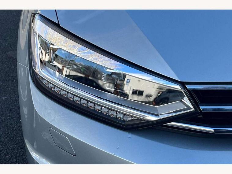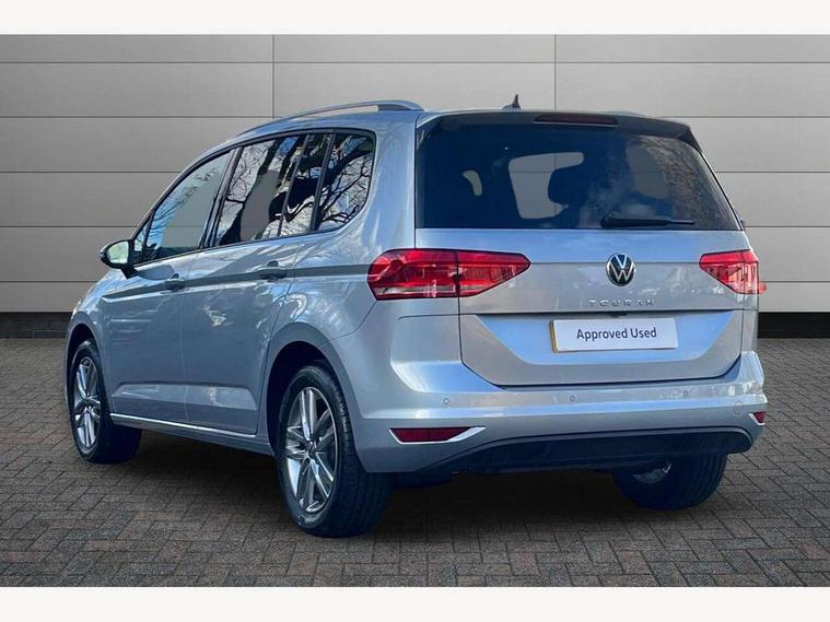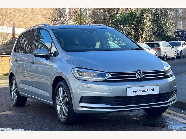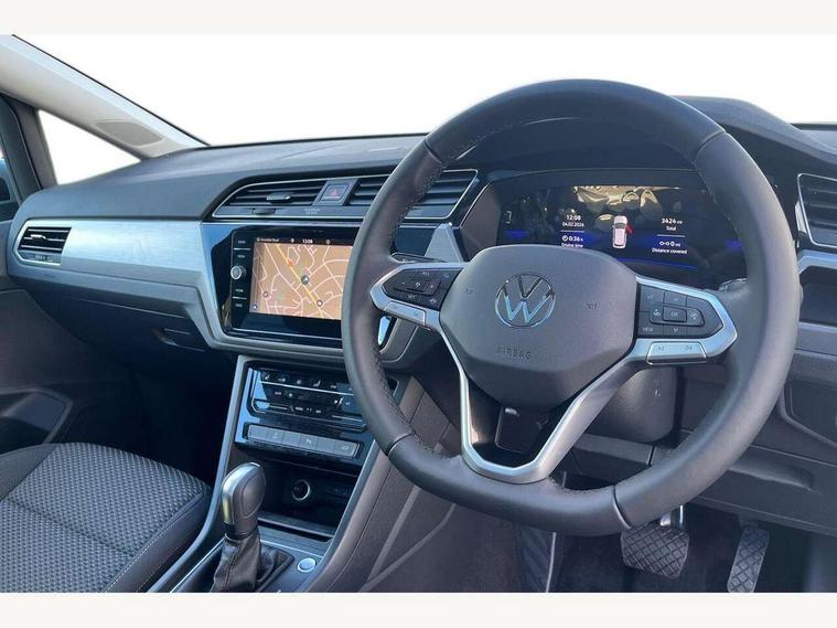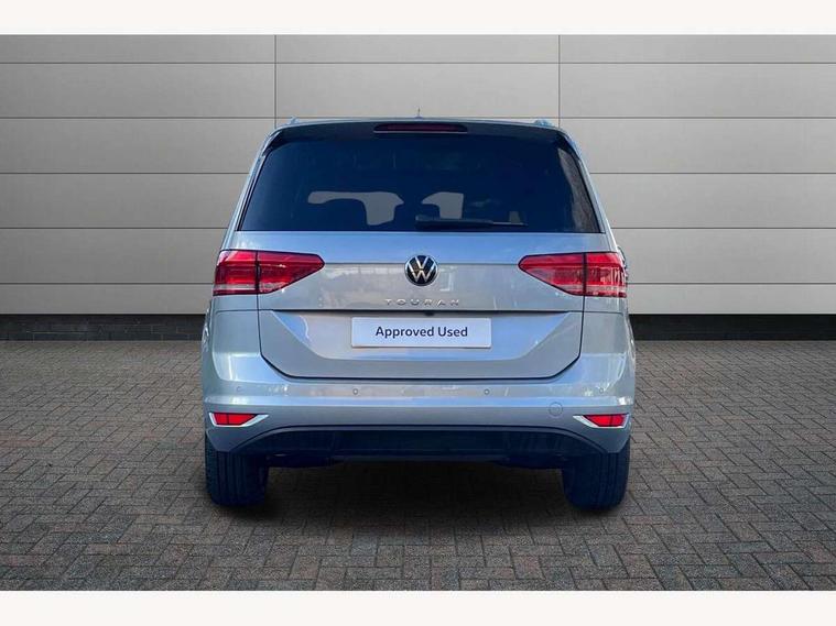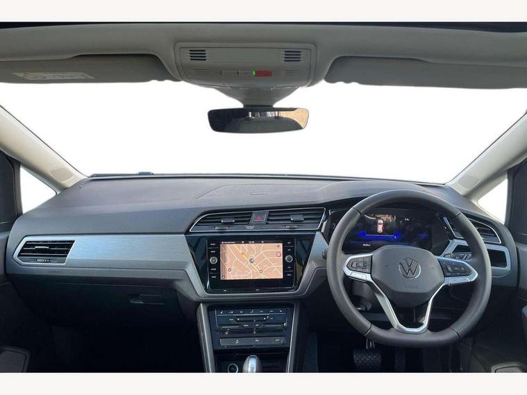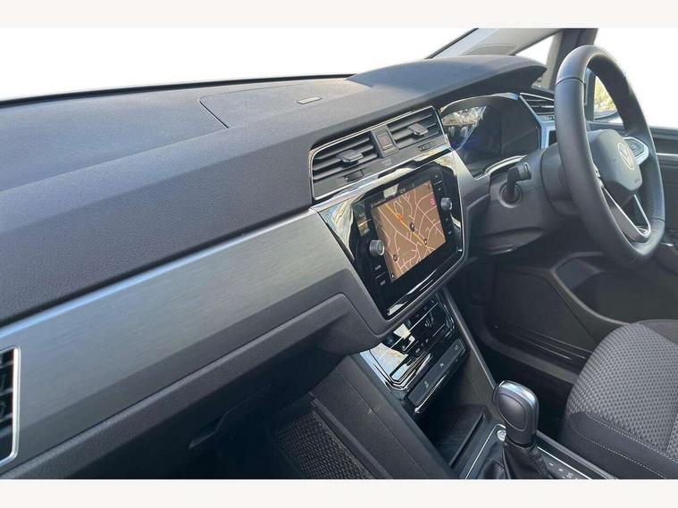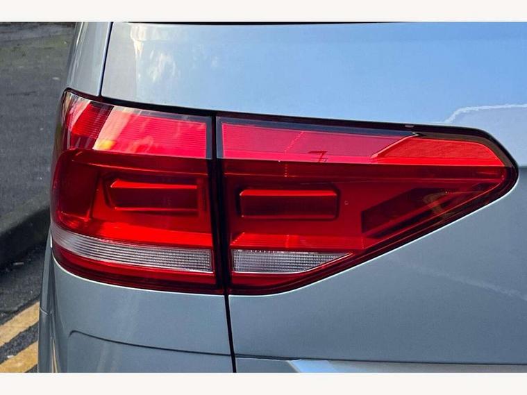 Adaptive cruise control, Audible lights on warning, Discover media navigation touchscreen navigation/radio system with streaming and internet, Driver alert system, Driver profile selection, Dynamic road sign display, Electric tailgate, Electronic odometer, Emergency services call system, Extended, crash-active and proactive Pedestrian and cyclist monitoring, External temperature gauge, Front parking sensors, Lane change system side assist and rear traffic alert, Lane keep assist, Misfuelling protection device, Mobile pairing with SMS function, Mobile phone interface with inductive charging, Rear view camera displayed via vehicles audio system display, Rev counter with fuel gauge, Side scan, Speed limiter, Speed sensitive power steering, Stop/start system, Think blue trainer driver tips and journey analysis, Trip and service interval display, We connect' and 'We connect plus' functionality, Petrol Particulate Filter, Rear stabiliser bar, XDS electronic differential lock, 4x20 watt output, 8 Speakers, Audio Connectivity System, DAB Digital radio, External USB-C data socket with increased charging performance - 2 USB sockets 45W, MP3/WMA compatability, SD card slot, Title and cover art display, USB connection, Aerial integrated into side window, Auto dimming door mirrors, on driver side, surround lighting and front passenger side mirror lowering function, Auto dimming rear view mirror, Automatic coming/leaving home lighting function, Body colour bumpers, Body colour door handles, Body colour door mirrors with integral indicators, Door mirrors with memory function, Dusk sensor + auto driving lights, Electric folding door mirrors, Electric heated + adjustable door mirrors, Electric, glass sliding/tilting panoramic sunroof including integrated roller blind and LED lighting around aperture, Front and rear electric windows, Fully galvanised body, Gloss black finish B pillar, Green tinted heat insulating glass, High level third brake light, Rain sensor, Rear fog lights, Rear side wing doors, Rear tinted glass from B-pillar backwards approx 65% tinted, Rear wash/wipe with intermittent wipe setting, Removable engine badge, Silver roof rails, Tailgate wiper- reverse gear activation, Twin chrome exhaust tailpipes, Volkswagen roundel, Windscreen wipers intermittent wipe, 12V power point for Row 2, 12V socket in luggage compartment, 2 individual fold flat 3rd row seats, 2 three point seatbelts in 3rd row, 2nd row centre armrest, 2nd row centre seat converts into table, 3 single slide/fold/removable 2nd row seats, 3 spoke steering wheel, 3x3 point seatbelts on 2nd row with height adjust on outer seats, 4 boot load lashing points, 4 way adjustable front head restraints, 5 headrests, Activated charcoal canister for intensified evaporation system, Air care climatronic 3 zone air conditioning system with rear air conditioning control panel, Chrome plated radiator grille inserts, air vent surrounds and light switch surrounds, Driver and front passenger under seat drawer, Dust/pollen filters, Foldable front passenger seat backrest with load through function, Front and rear reading lights X 2, Front centre armrest with storage compartment, Front comfort seats with lumbar support, Front cupholders x 2, Front passenger seat height adjust, Front seat storage pockets, Front seatback folding tables, Height adjustable driver's seat, Height/reach adjust steering wheel, Illuminated glovebox, Instrument lighting white adjustable panel illumination with red night time illumination, Interior light with delay, Isofix on 2nd row outer seats, Isofix on 3rd row seats, Large storage compartment in roof console, Lasano cloth upholstery, Leather multifunction steering wheel with gear knob, Leatherette on rear of front seats, Low tunnel 2nd row seat, Luggage compartment lighting, Media box in dashboard on passenger side, Multi storage in passenger/luggage areas, Multi-function centre console with storage facilities, Retractable luggage cover, Split folding rear seat backrests, Storage bins on all doors, Sun visors with illuminated vanity mirrors, Family Pack - Touran, Winter pack without heated washer jet - Touran, 3 point height adjustable front seatbelts, Auto hold function, Automatic post collision braking system, Door open warning reflectors, Driver/Front Passenger airbags, Drivers knee airbag, EDL + ASR, Electronic parking brake, Energy recovery system, ESC with ABS, First aid kit, Front and rear (row 2) curtain airbags, Front assist with autonomous emergency braking, Front seat side impact airbags, Front seatbelt pretensioners, Front/rear disc brakes, Hill hold control, Hydraulic Brake Assist (HBA), Loose wheel warning function, Manual passenger airbag deactivation function, Pre crash preventive occupant protection, Proactive passenger protection system with front and side assist, Rear child proof door locks, Road sign recognition, Seatbelt warning lamp and buzzer, Traction control, Two tone horn, Warning triangle, Alarm with remote central locking and interior protection, Electronic engine immobiliser, Keyless Access Keyless locking and starting system with SAFELOCK, New brushed design decorative inserts in dash and front doors, 17" Salvador alloy wheels with anti-theft wheel bolts, 215/55 R17 self sealing tyres with low rolling resistance,