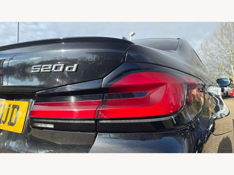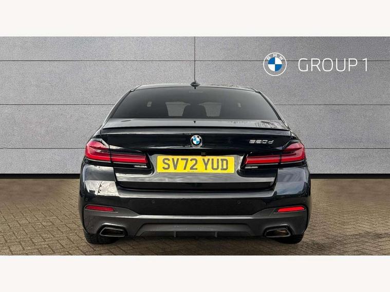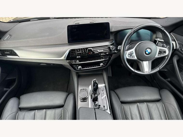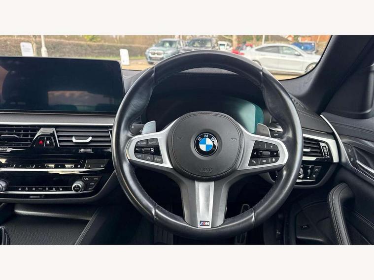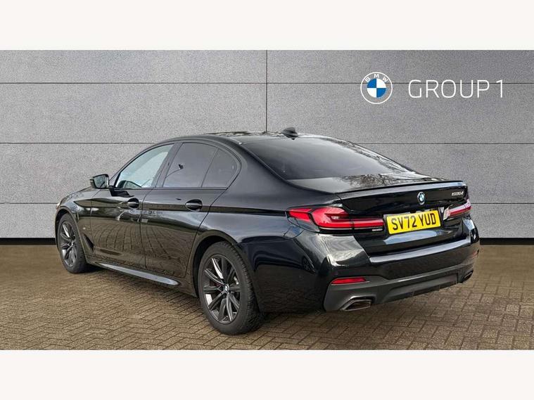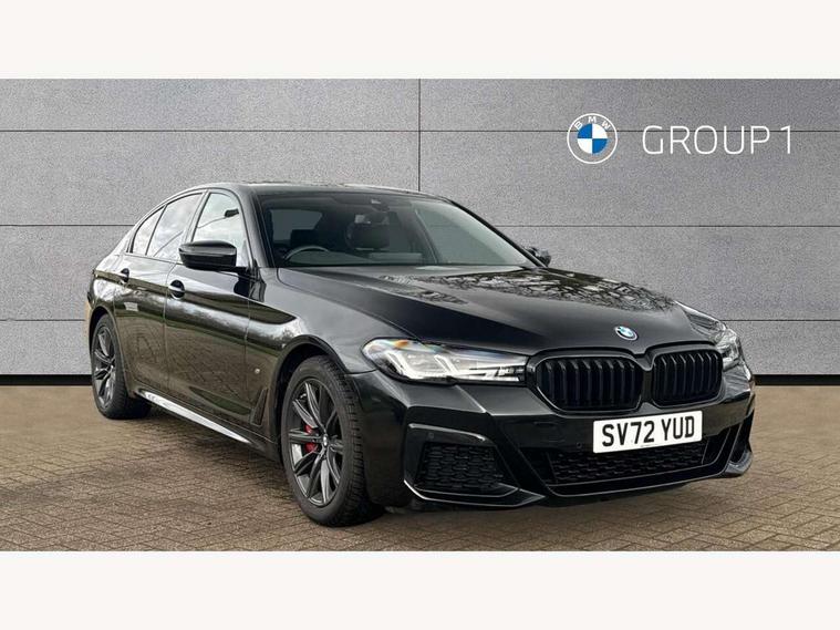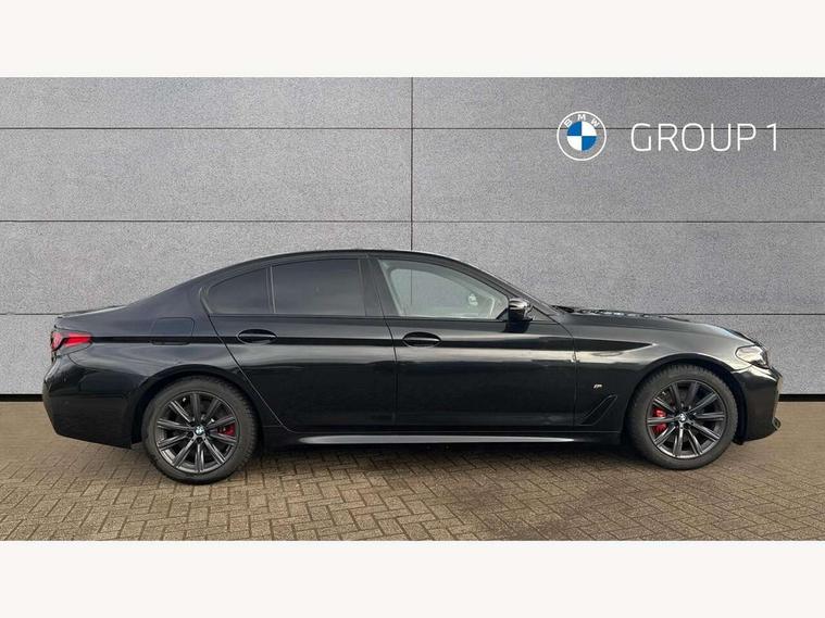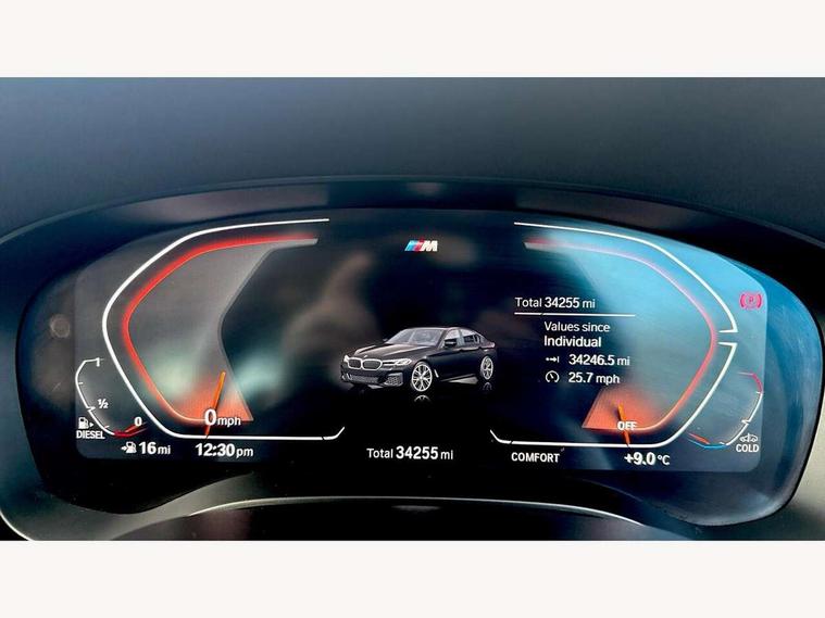 32GB hard disc drive (HDD) memory, Active Guard, Bluetooth connection, BMW ConnectedDrive online services, BMW Live Cockpit Professional sat nav system with 12.3" instrument display and high resolution control display, BMW Teleservices, Brake pad wear indicator, Cruise control with brake assist, Driving experience switch, eCall emergency call system, Electric Power Steering (EPS) with Servotronic, iDrive controller with shortcut buttons, Intelligent emergency call, Multifunctional instrument panel, Oil sensor for level and grade, On board computer inc. average speed, fuel consumption, liquid crystal Info display, journey computer, outside temperature display, personal profile, On-board diagnosis - OBD, Powered by Operating System 7.0, Service interval indicator, Speed limiting function, Stop/start button, 48V Mild hybrid technology, Diesel particulate filter, Drive performance control with ECO PRO comfort + sport mode, Engine cover with twin turbo designation, M sport suspension, Steptronic sport transmission with gearshift paddle switches on steering wheel, DAB Digital radio, Favourite buttons, Acoustic glazing, All round anti-corrosion system, Automatic windscreen wipers and automatic headlight, Automatically dimming rear view mirror, BMW Individual high gloss shadow line includes exterior mirror frame, window frame surround, B pillar finish, air breather in high gloss black, Body colour door handles, Body coloured bumpers, Door handle illumination, Dynamic brake lights with LED technology, Electric front and rear windows with fingertip open/close + anti-trap facility and comfort closing function, Electrically adjustable and heated exterior mirrors includes integrated direction indicators and automatic parking function, Folding exterior side mirror with auto- dimming, Follow me home headlight function, Heated windscreen washer jets, High gloss black active air stream kidney grille, LED daytime running lights, LED Headlights, LED third brake light, M designation on front side panels, left and right in chrome, M Sport exterior styling, Preparation for high beam assistant, Rear boot, Rear side wing doors, Trapezoidal visible exhaust tailpipes, 12V power socket in front and rear, 3 seat bench in 2nd row, Armrest - front and rear integrated door trim, centre console includes storage compartment, rear centre includes 2 cupholders, Child seat ISOFIX attachment with rear outer seats includes top tether, Cup holders (2 front and 2 rear), Front and rear footwell lights, Front reading lights, Height and length adjustable steering column and activation via lateral lever on the steering column, Lockable glove compartment with light, M door sill finishers, M specific pedals, M specific velour floor mats, Multifunction controls for leather steering wheel, Rear headrests, Single front passenger seat, Three spoke sport M leather steering wheel, Ambient lighting pack - 5 Series, Connected package professional - 5 Series, M Aerodynamic pack - 5 Series, Airbags - driver/front passenger, rear and side, first and second row seats head airbags, front passenger seat airbag deactivation, Anti-lock braking system (ABS), Automatic Stability Control (ASC), Brake assist function, Brake energy regeneration, Cornering brake control (CBC), Crash sensor activating central locking release, hazard warning lights, fuel cut off and interior lighting, Deformation zones - front and rear with door reinforcements and bumpers up to 2.5 mph, DSC - Dynamic Stability Control, Dynamic brake control, Dynamic Traction Control - DTC, Electromechanical parking brake with automatic drive away release and auto hold function, Electronic brake force distribution, Engine drag torque control, Front and rear brake discs with interior ventilation, Front head restraints with anti-whiplash, Hill start assist, Mechanical child proof lock on rear doors, Passive protection for pedestrians, Rear door child safety locks, Side impact protection, Three point seat belts for all four seats, Two tone horn, Tyre pressure indicator, Warning triangle and first aid kit, Alarm system (Thatcham 1) with remote control and electronic engine immobiliser, Locking wheel bolts,