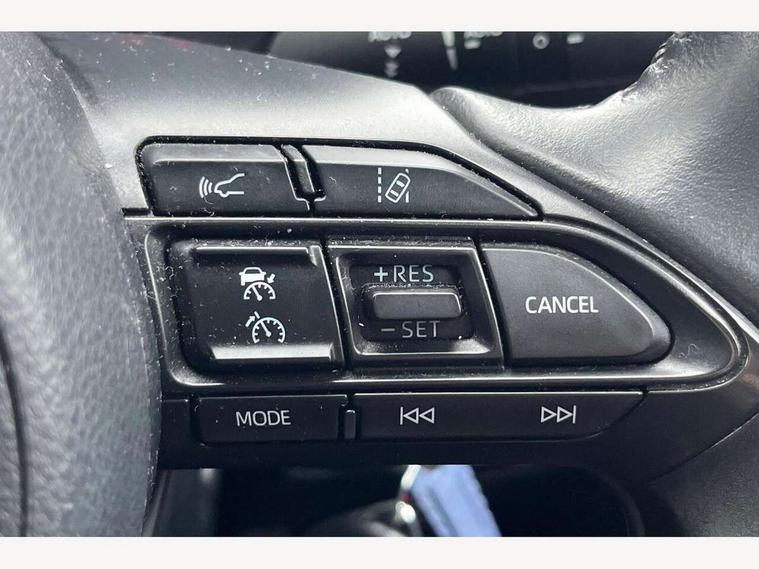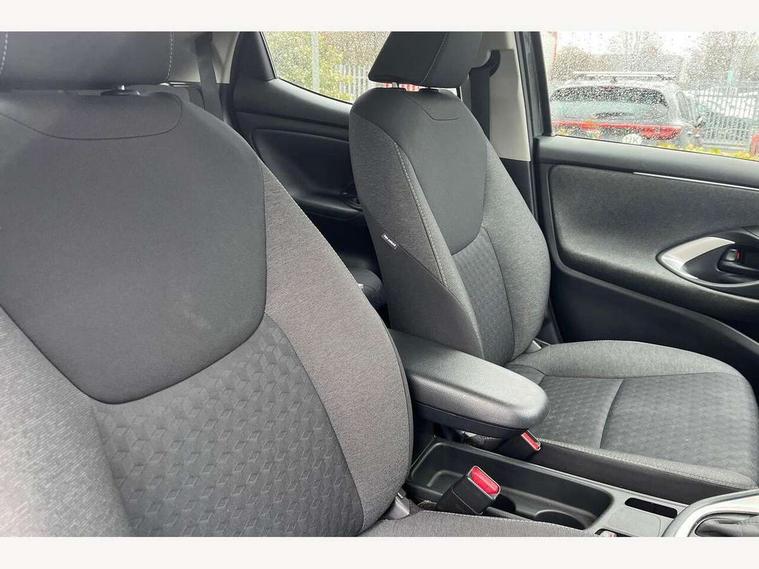 4.2" coloured LED TFT multi information display with analogue speedometer, Adaptive cruise control, Adjustable speed limit with speed warning, Bluetooth connectivity, E-call, Electric power steering, Hybrid energy display, Multi information display switches on steering wheel, Reversing camera, Smartphone integration with Apple CarPlay and Android auto, Vehicle Stability Control (VSC), 4 speakers, 7" Multimedia display touch screen, Toyota Touch 2 with DAB, USB connection, Acoustic windscreen glass, Auto windscreen wipers, Automatic headlights, Body coloured door mirrors, Electric adjustable heated door mirrors, Follow me home headlights, Front auto power windows with anti jam protection, Halogen projector headlights, LED daytime running lights, LED High mounted stop lamp, Rear spoiler, Shark fin antenna, Turning signal integrated indicators in door mirrors, 3 adjustable rear headrests, 3 spoke leather steering wheel, 60/40 split folding rear seat, Active headrests, Adjustable boot height, Auto air conditioning, Coat hooks in rear grab handles, Cup holders (2 front & door), Data Communication Module (DCM) connected services, Fabric upholstery, Front armrest, Glovebox, Height adjustable driver's seat, Isofix seat fixing, Leather gearshift, Pollen filter, Shopping bag hooks, Tilt/telescopic steering column, 3 point seatbelts on all rear seats, ABS+EBD+Brake assist, Electronic parking brake, Emergency brake light system (EBS), Front passenger airbag on/off switch, Front seatbelt reminder, Hill start assist control (HAC), Rear child proof door locks, Rear seat belt reminder, Supplemental Restraint System (SRS) 8 airbags: Driver & passenger's airbags, dual side curtain airbags, side impact airbags, front centre airbag, Toyota Safety Sense 2, Precollison + Night time Pedestrian & Cyclist Detection, Lane Trace Assist, Auto High Beam, Intelligent ACC & Road Sign Assist, Tyre pressure warning system, Alarm/immobiliser, Remote powered central double locking doors, Soft touch instrument panel, 16" Silver alloy wheels, Space saver spare wheel,