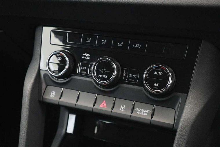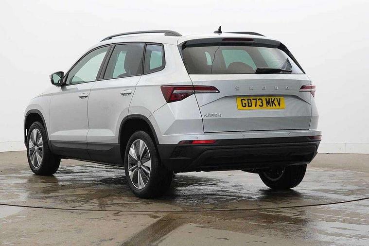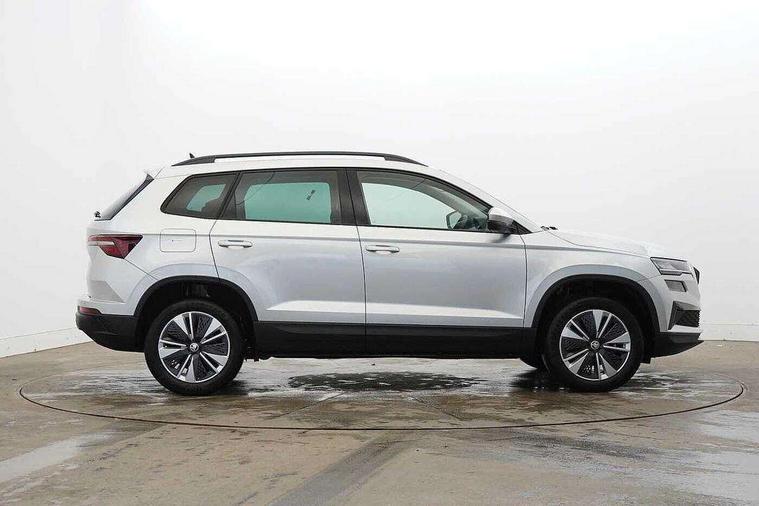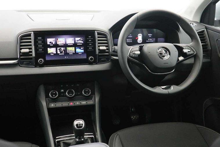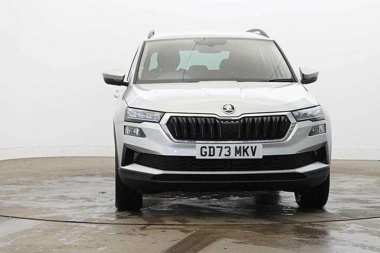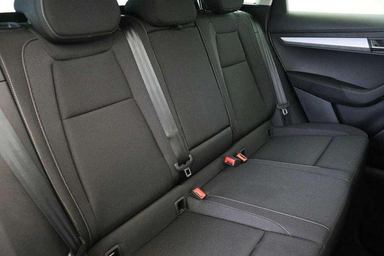 8" Digital display, Amundsen satellite navigation with 8" touchscreen display with maps Europe, WLAN and web radio, Care connect, Driver fatigue sensor, Electro-mechanical PAS, Emergency services call system, Outside temperature gauge, Service interval indicator, SmartLink wireless for Apple and wired for Android, Start/stop system with regenerative braking, USB C Port x 2 in front centre console, 8 Speakers, DAB radio with Bluetooth, USB connection, Acoustic glass, Aero front windscreen wipers with intermittent function, Auto dimming rear view mirror with light and rain sensors, Black electric window control buttons, Body colour door mirrors and handles, Dynamic headlight range control with cornering light function, Electric front and rear windows with child proof lock, Electrically adjustable heated folding and auto dimming door mirrors, Front fog lights, Heated rear windscreen, LED daytime running lights, LED Headlights, LED rear lights with high functionality welcome effect and dynamic indicators, Light assistant (coming/leaving home/tunnel light), Plastic scuff plates, Privacy glass, Rear side wing doors, Rear window wiper with washer system and intermittent control, Safety reflectors on front doors, Third brake light, 1.5 litre bottle holders in driver and front passenger door panels, 12V socket in boot, 12v socket in front centre armrest with storage compartment and rear air vents, 2 x Tablet holder, 3 rear height adjustable headrests, 3 seat bench in 2nd row, 4 foldable roof handles with rear coat hooks, Black floor carpet, Chrome inner door handles, Double sided boot floor, Driver/front passenger reading lights, Foldable hooks in the boot, Folding tables on the front seat backrests, Front head restraints, Height adjustable driver and passenger seat, Height adjustable front three point seats belts with tensioners, Height/reach adjust steering wheel, Ice scraper, Illuminated glovebox, Illuminated luggage compartment, Isofix child seat preparation for front passenger seat, Isofix child seat preparation outer rear, Manual lumbar support for front seats, Pearl grey interior ceiling, Pen holder, Pollen filter, Rear boot cover, Rear reading lights, Rubbish bin door, Safety vest holder, Single front passenger seat, Storage box in upper central dashboard closed, Sunvisors with illuminated vanity mirrors, Textile floor mats, Ticket holder, Umbrella under passenger seat, Boot pack - Karoq, Automatic door unlocking in case of crash, Automatic fuel cut off in case of crash, Child locks on rear doors, Driver airbag, Electronic parking brake with auto hold function, Emergency rear braking signal, ESC including ABS, MSR, ASR, EDS, HBA, DSR, RBS, MKB and traction control, Front side airbags, Hill hold control, Knee airbags, Passenger airbag with switch-off function, Pedestrian monitor, Seatbelt reminder signalisation and pretensioner for all seats, Three point seatbelts rear, Two tone horn, Tyre pressure display, Tyre pressure monitor, Alarm with interior monitoring, back up horn and tilt sensor with safe function, Electronic engine immobiliser, Remote central locking with 2 remote folding keys, Black centre console, Chrome framed air vents, Satin black dashboard, Satin black door trim, Anti-theft wheel bolts protection, Tool kit,