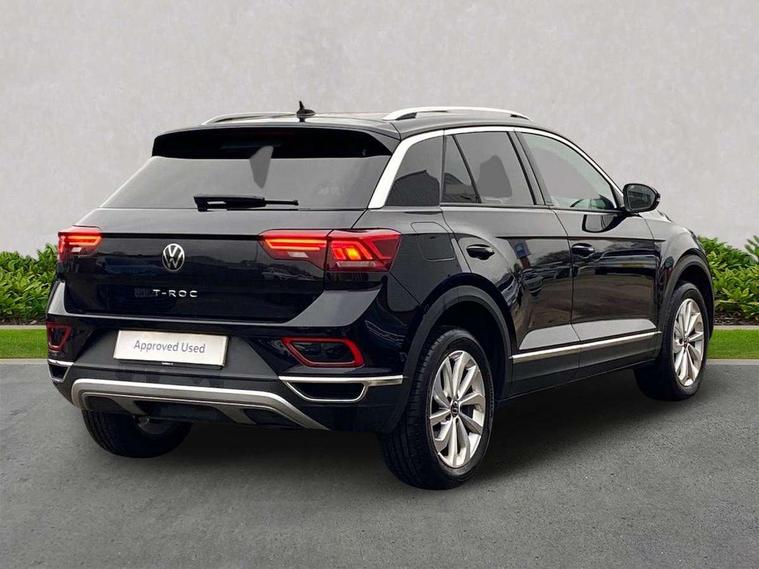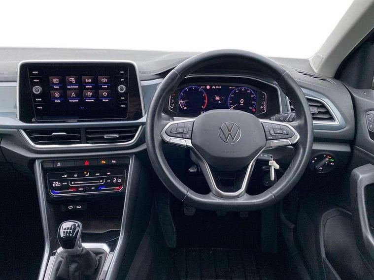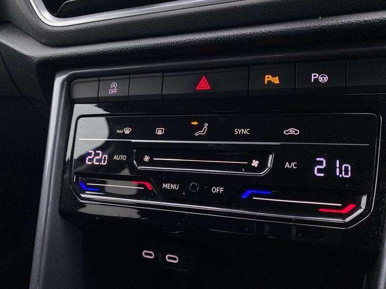 10.25" Digital cockpit pro, Bluetooth mobile phone interface, Driver alert system with fatigue detection, Driver tips and journey analysis, Emergency call service, Lane keeping system Lane Assist, Modified key software - reduce switch off time for key status change to Long no motion, Online services, Park assist including front and rear parking sensors, Service interval indicator, Tailgate/trunk lid release from outside, Think blue trainer driver tips and journey analysis, Warning sound and light for front seatbelts unfastened, Wireless app connect, Battery regeneration during braking, Start/stop function with battery regeneration, Diversity antenna for FM reception, Front and rear 6 speakers, Music playback - MP3, WMA and AAC files, Premium USB cable in choice of either Apple or Android smartphone compatibility, SD card slot, Simultaneous pairing of 2 compatible mobile devices, Title and cover art display, We Connect and We Connect Plus functionality, 3rd brake light, Auto dimming interior rear view mirror, Automatic hazard lights activation under emergency braking, Automatic headlight control with LED separate daytime running lights with coming/leaving home function, Body colour sports bumpers with silver metallic underbody fascia, Dynamic headlight range control with self adjusting whilst driving, Extended roof spoiler, Exterior mirrors aspherical on driver side, convex on front passenger side, External USB type C socket and charging sockets, Front windscreen wiper with intermittent wipe and 4 position delay, Heated rear window, LED Plus headlamps, LED rear combination lamps, LED rear number plate lights, LED tail lamp rear comination lamps, Light mode for poor weather, rain, fog or snow, Power windows with comfort operation and circuit breaker, Rain sensor, Rear exhaust tailpipe, Rear fog light on one side and reversing lights on both sides, Rear side wing doors, Rear wash/wipe with intermittent wipe setting, Remote electrically foldable door mirrors, puddle lights and reverse activated passenger's door mirror, 12V power socket in centre console, 3 rear head restraints, 3 seat bench in 2nd row, 4 load lashing points in luggage compartment, Air care climatronic air conditoning system with active combination filter and 2-zone temperature control, Chrome plated radiator grille inserts, air vent surrounds and light switch surrounds, Door and side trim panel with leatherette insert, Drawer under drivers seat, Front + rear carpet mats, Front centre armrest, Front comfort sports seats, Front cupholders x 2, Front footwell illumination, Instrument lighting, white adjustable panel illumination, Interior ambient lighting and surround lighting, Interior light delay, Isofix child seat preparation, Leather gearshift handle, LED interior light with switch off delay/dimmer and 2 front/rear LED reading lights, Load-through provision with cup holder when folded down ('Unsplit rear seat bench, split folding backrest, with centre armrest), Luggage compartment lighting, Non-folding front passenger seat backrest, Single front passenger seat, Storage compartment in left and right luggage area, Storage compartment in rear doors, Storage compartments in driver and front passenger doors, Sunvisors with illuminated vanity mirrors, Variable boot floor, height adjustable and removable, Driver assistance pack without proactive passenger protection - T-Roc, 3 point height adj front seatbelts + pretensioners, 3 point seatbelts in outer rear with ECE label, ABS, Child locks on rear doors, Driver and front passenger airbag with front passenger airbag deactivation, Driver and front passenger safety-optimised head restraints, Drivers seatbelt reminder, Electronic parking brake, Electronic Stability Control (ESC) inc EDL (Electronic Differential Lock) and ASR (Traction Control), Front and rear passengers curtain airbag system including front side airbags, Front assist with city emergency braking and pedestrian monitoring, Front seat side impact airbags, Predictive pedestrian protection, Rear disc brakes, Single tone horn, Tyre pressure loss indicator, Volkswagen roadside assistance, Alarm with interior protection, Anti-theft alarm system with interior monitoring, backup horn, and towing protection, Remote central locking with SAFELOCK, radio remote control with 2 remote control folding keys, Trims for alloy wheels,