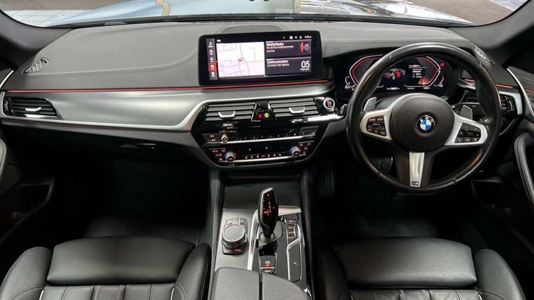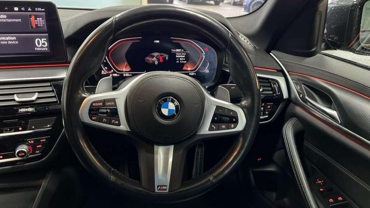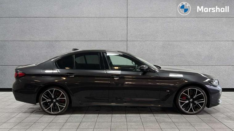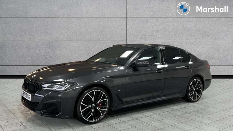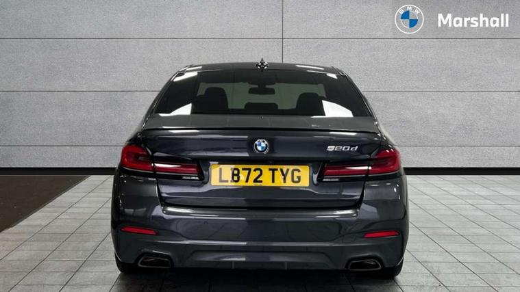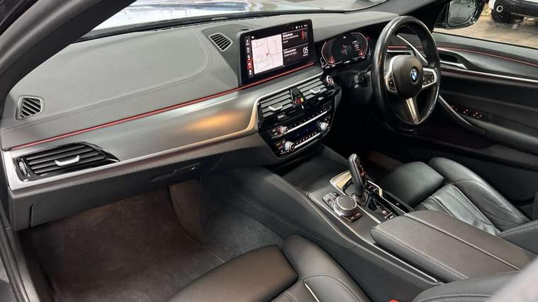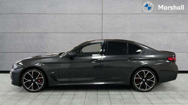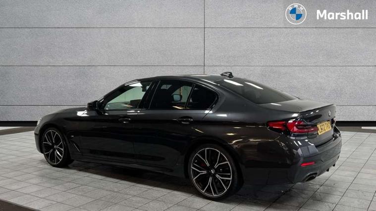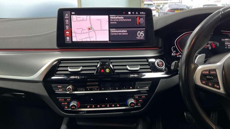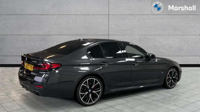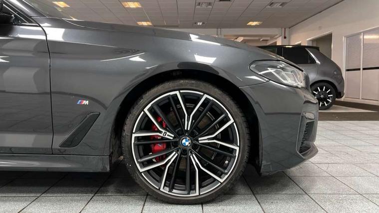 32GB hard disc drive (HDD) memory, Active Guard, Bluetooth connection, BMW ConnectedDrive online services, BMW Live Cockpit Professional sat nav system with 12.3" instrument display and high resolution control display, BMW Teleservices, Brake pad wear indicator, Cruise control with brake assist, Driving experience switch, eCall emergency call system, Electric Power Steering (EPS) with Servotronic, iDrive controller with shortcut buttons, Intelligent emergency call, Multifunctional instrument panel, Oil sensor for level and grade, On board computer inc. average speed, fuel consumption, liquid crystal Info display, journey computer, outside temperature display, personal profile, On-board diagnosis - OBD, Powered by Operating System 7.0, Service interval indicator, Speed limiting function, Stop/start button, 48V Mild hybrid technology, Diesel particulate filter, Drive performance control with ECO PRO comfort + sport mode, Engine cover with twin turbo designation, M sport suspension, Steptronic sport transmission with gearshift paddle switches on steering wheel, DAB Digital radio, Favourite buttons, Acoustic glazing, All round anti-corrosion system, Automatic windscreen wipers and automatic headlight, Automatically dimming rear view mirror, BMW Individual high gloss shadow line includes exterior mirror frame, window frame surround, B pillar finish, air breather in high gloss black, Body colour door handles, Body coloured bumpers, Door handle illumination, Dynamic brake lights with LED technology, Electric front and rear windows with fingertip open/close + anti-trap facility and comfort closing function, Electrically adjustable and heated exterior mirrors includes integrated direction indicators and automatic parking function, Folding exterior side mirror with auto- dimming, Follow me home headlight function, Heated windscreen washer jets, High gloss black active air stream kidney grille, LED daytime running lights, LED Headlights, LED third brake light, M designation on front side panels, left and right in chrome, M Sport exterior styling, Preparation for high beam assistant, Rear boot, Rear side wing doors, Trapezoidal visible exhaust tailpipes, 12V power socket in front and rear, 3 seat bench in 2nd row, Armrest - front and rear integrated door trim, centre console includes storage compartment, rear centre includes 2 cupholders, Child seat ISOFIX attachment with rear outer seats includes top tether, Cup holders (2 front and 2 rear), Front and rear footwell lights, Front reading lights, Height and length adjustable steering column and activation via lateral lever on the steering column, Lockable glove compartment with light, M door sill finishers, M specific pedals, M specific velour floor mats, Multifunction controls for leather steering wheel, Rear headrests, Single front passenger seat, Three spoke sport M leather steering wheel, Ambient lighting pack - 5 Series, Connected package professional - 5 Series, M Aerodynamic pack - 5 Series, Airbags - driver/front passenger, rear and side, first and second row seats head airbags, front passenger seat airbag deactivation, Anti-lock braking system (ABS), Automatic Stability Control (ASC), Brake assist function, Brake energy regeneration, Cornering brake control (CBC), Crash sensor activating central locking release, hazard warning lights, fuel cut off and interior lighting, Deformation zones - front and rear with door reinforcements and bumpers up to 2.5 mph, DSC - Dynamic Stability Control, Dynamic brake control, Dynamic Traction Control - DTC, Electromechanical parking brake with automatic drive away release and auto hold function, Electronic brake force distribution, Engine drag torque control, Front and rear brake discs with interior ventilation, Front head restraints with anti-whiplash, Hill start assist, Mechanical child proof lock on rear doors, Passive protection for pedestrians, Rear door child safety locks, Side impact protection, Three point seat belts for all four seats, Two tone horn, Tyre pressure indicator, Warning triangle and first aid kit, Alarm system (Thatcham 1) with remote control and electronic engine immobiliser, Locking wheel bolts,