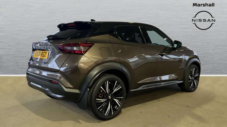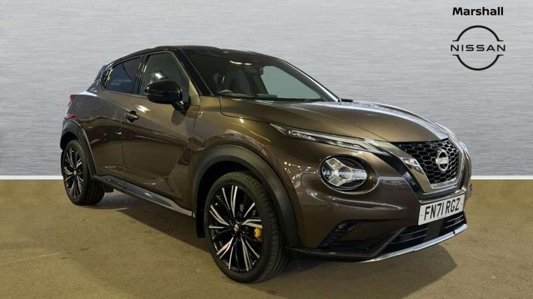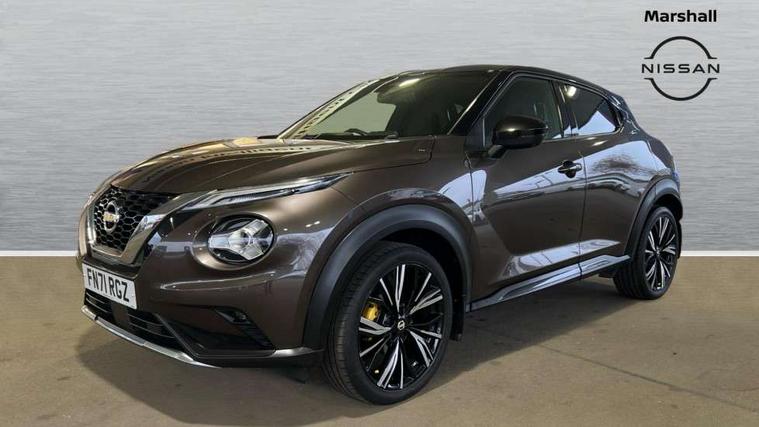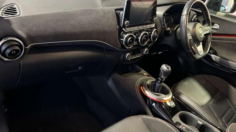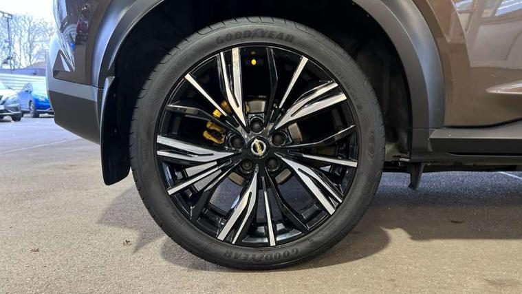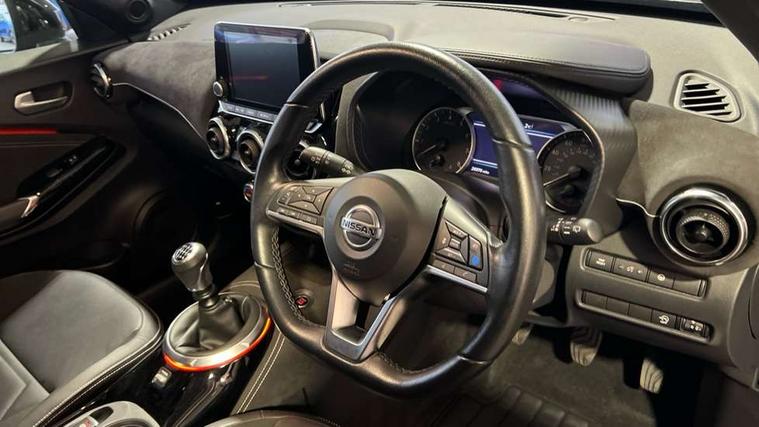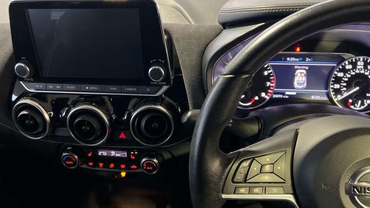 7" full colour TFT screen combimeter, 8" infotainment colour display with touch screen, Apple CarPlay and Google Android auto, Drive modes select (Eco, normal and sport), Emergency and breakdown call, Front parking sensor, Idle start/stop system, Intelligent lane intervention, Lane departure warning system, Nissan connect nav with TomTom traffic, Nissan connect services and Wifi connection, Outside temperature sensor, Power Steering, Rear parking sensor, Traffic sign recognition, Trip computer, Gasoline particulate filter, Bluetooth system, USB, Aux-in and 12V socket, Bose personal plus audio system with 8 speakers(4 speakers and 2 headrest speaker for driver and passenger seats), Bose personal sound stage control, DAB Digital radio, Front lower bumper painted in silver finisher, Rear console USB port, Auto dimming interior rear view mirror, Automatic hazard signal with emergency stop signal, Body colour bumpers, Body colour door handles, Electrically adjustable door mirrors with integrated indicators, Follow me home headlights, Front and rear electric window with one touch driver window, Heated and auto folding door mirrors, High beam assist, LED daytime running lights, LED front fog lights, LED headlamps, LED rear fog lamp, LED rear lamps, Rain sensor windscreen wipers, Rear privacy glass, Rear wiper, Thermaclear heated windscreen, Three blink turn signal, 3 height adjustable rear headrests, 60/40 split folding rear seat, Automatic climate control, Card holder on driver sunvisor, Door ambient lighting, Driver and passenger sliding and reclining seats, Driver seat back pocket, Driver side rear coat hanger, Driver/passenger sunvisors and vanity mirrors, Front and rear cabin lights, Front armrest, Front door pockets with bottle holders, Front head restraints, Front passenger isofix child seat anchorage point, Front/rear passenger grab handles, Gear console ambient circle lighting, Grey synthetic leather kneepad, Heated front seats, Height adjustable driver's seat, Height adjustable passenger seat, Internal chrome door handles, Leather gearshift knob, Leather steering wheel, Luggage board, Luggage space lighting, Monoform sporty seats, Multifunction steering wheel, Passenger seat back pocket, Rear door bottle holders, Telescopic steering wheel adjustment, Two cupholders in front centre console, Two rear isofix child seat anchorage points with top tether, Voice recognition switch on steering wheel, Welcome light and console tray ambient lighting, Advanced safety shield pack - Juke, ABS with EBD and brake assist, Active ride control, Active Trace Control, Driver and passenger airbags, Driver and passenger side airbags, Electric handbrake with auto hold function, Electronic Stability Programme (ESP), Front and rear curtain airbags, Height adjustable seatbelts, Hill start assist, Intelligent emergency braking with pedestrian and cyclist recognition, Seatbelt reminder for driver/front passenger and rear seats, Single tone horn, Three 3 point rear seatbelts, Traction control, Tyre pressure monitoring system, VDC Dynamic Vehicle Control, Ventilated rear brake discs, Alarm, Immobiliser, Intelligent Key with push button starter, Remote central locking, 19" Akari alloy wheels,