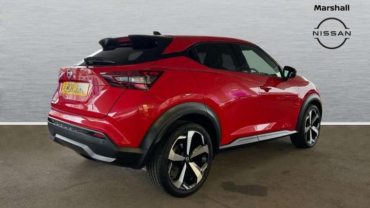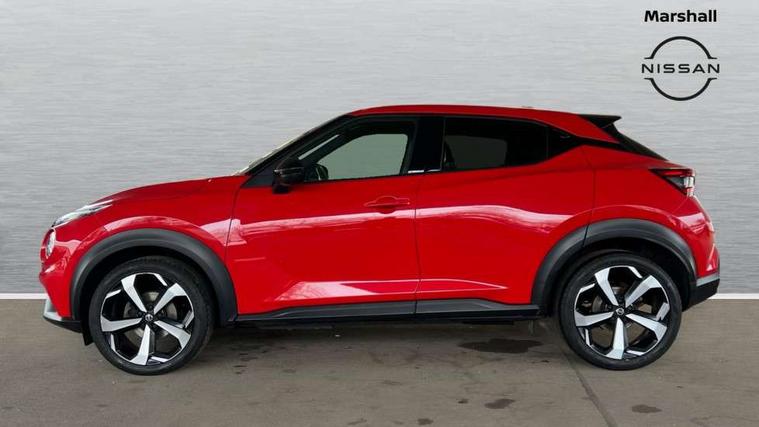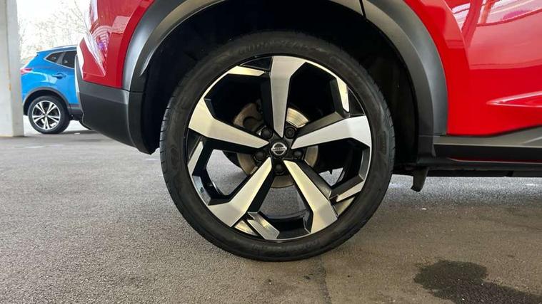 7" full colour TFT screen combimeter, Apple CarPlay and Google Android auto, Drive modes select (Eco, normal and sport), eCall emergency call system, Emergency and breakdown call, Front parking sensor, Idle start/stop system, Intelligent lane intervention, Lane departure warning system, Nissan connect 8" touch screen entertainment system, Nissan connect nav with TomTom traffic, Nissan connect services and Wifi connection, Outside temperature sensor, Power Steering, Rear parking sensor, Traffic sign recognition, Trip computer, Voice recognition, Gasoline particulate filter, Bluetooth system, USB, Aux-in and 12V socket, Bose personal plus audio system with 8 speakers(4 speakers and 2 headrest speaker for driver and passenger seats), Bose personal sound stage control, DAB Digital radio, Rear console USB port, Auto dimming interior rear view mirror, Auto headlights, Automatic hazard signal with emergency stop signal, Body colour bumpers, Body colour door handles, Electrically adjustable door mirrors with integrated indicators, Follow me home headlights, Front and rear electric window with one touch driver window, Heated and auto folding door mirrors, High beam assist, LED daytime running lights, LED front fog lights, LED headlamps, LED rear fog lamp, LED rear lamps, Rain sensor windscreen wipers, Rear privacy glass, Rear side wing doors, Rear wiper, Thermaclear heated windscreen, Three blink turn signal, 3 height adjustable rear headrests, 3 seat bench in 2nd row, 60/40 split folding rear seat, Automatic climate control, Card holder on driver sunvisor, Cloth/Synthetic leather upholstery, Door ambient lighting, Driver and passenger sliding and reclining seats, Driver seat back pocket, Driver side rear coat hanger, Driver/passenger sunvisors and vanity mirrors, Front and rear cabin lights, Front armrest, Front door pockets with bottle holders, Front head restraints, Front passenger isofix child seat anchorage point, Front/rear passenger grab handles, Gear console ambient circle lighting, Grey synthetic leather kneepad, Heated front seats, Height adjustable driver's seat, Height adjustable passenger seat, Internal chrome door handles, Leather gearshift knob, Leather steering wheel, Luggage board, Luggage space lighting, Monoform sporty seats, Multifunction steering wheel, Passenger seat back pocket, Rear door bottle holders, Single front passenger seat, Telescopic steering wheel adjustment, Two cupholders in front centre console, Two rear isofix child seat anchorage points with top tether, Welcome light and console tray ambient lighting, Advanced safety shield pack - Juke, ABS with EBD and brake assist, Active ride control, Active Trace Control, Driver and passenger airbags, Driver and passenger side airbags, Electric handbrake with auto hold function, Electronic Stability Programme (ESP), Front and rear curtain airbags, Height adjustable seatbelts, Hill start assist, Intelligent emergency braking with pedestrian and cyclist recognition, Rear door child safety locks, Seatbelt reminder for driver/front passenger and rear seats, Single tone horn, Three 3 point rear seatbelts, Traction control, Tyre pressure monitoring system, VDC Dynamic Vehicle Control, Ventilated rear brake discs, Alarm, Immobiliser, Intelligent Key with push button starter, Remote central locking,