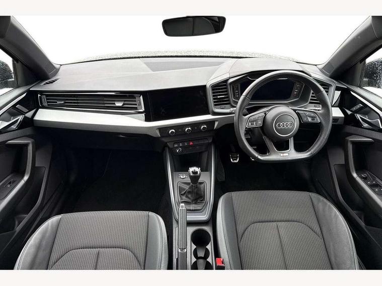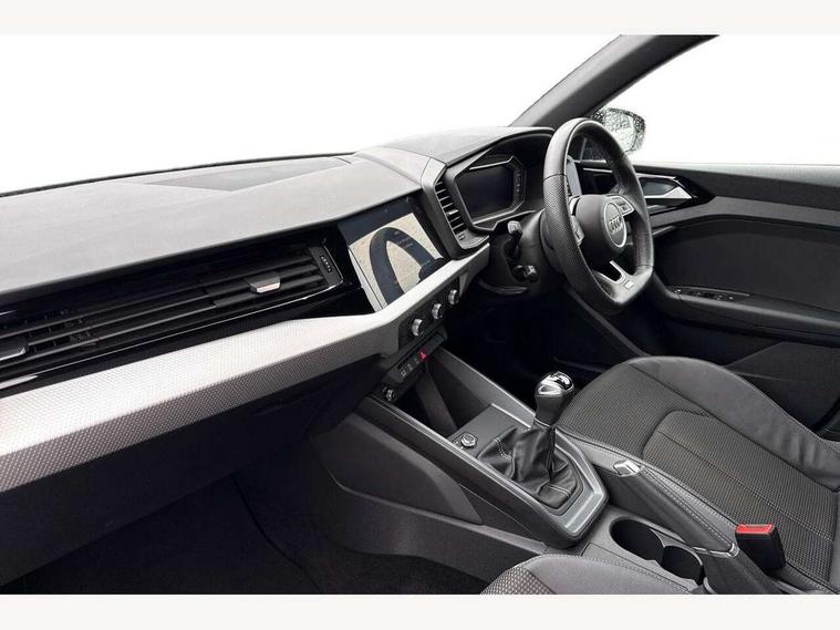 10.25" Digital instrument cluster display classis style instrument dials + speed, odometer, time, outside temperature, telephone menu + fuel level warning, Audi drive select - power steering assistance + engine, Audi smartphone interface with connect compatible smartphone via USB directly MMI display + Nav, music, third party apps controlled via MMI controller, Automatic start/stop system, Bluetooth interface, Cruise control, Driver's information system, Electromechanical power steering, Emergency e-call, Lane departure warning system, Rear parking sensor, Service interval indicator, Speed limiter, Voice control system, Washer fluid level indicator, Sports suspension, 2 x USB type C connection points, 6 passive loudspeakers, DAB Digital radio, MMI radio plus with 10.1" colour MMI display screen and MMI touch, Auto dimming rear view mirror, Black side skirts, Body coloured bumpers, Door sill trims with aluminium inlays and logo, Electric front and rear windows, Electrically adjustable, heated, folding door mirrors with integrated LED side indicator, Front side air inlets in grained matt black and C frame in anthracite black, Front wing badges, Heat insulating glass windscreen and side windows, Heated rear windscreen, High level LED brake light, LED headlights with LED rear lights + dynamic rear indicators + headlight adjustment and high beam, turning light + LED daytime running lights, Privacy glass, Rain and light sensors, Rear fog lights, Rear side wing doors, Rear wiper, Side front spoiler lips in grained matt black, 12V socket in centre console with two cup holders, 3 rear seats with headrests, 3 seat bench in 2nd row, 3 spoke flat bottomed multi-function plus leather steering wheel with S badging, grips in preforated leather and contrast stitching, 40:60 Split folding rear seat or folded fully, Black cloth headlining, Driver and passenger seat with manual height adjust with forward and backwards adjustment, Front and rear black floor mats with contrast stitching in fine silver, Front head restraints, Front passenger seat, Height and reach adjustable steering wheel, ISOFIX child seat mounting for front passenger and outer rear seats including top tether attachment point of outer rear seats, Leather gear knob with aluminium trim, Leather handbrake grip, Luggage compartment light with front and rear reading lights, Manual air conditioning, Manually adjustable lumbar support in front seats, Stainless steel pedals, Black styling pack - A1 Sportback Black Edition, LED interior lighting pack - A1, Luggage compartment pack - A1, 3x3 point rear seatbelts, Audi pre-sense front with pedestrain and cyclist recognition, Brake assist function, Driver and front passenger airbag with front side and head airbags, Electronic Stability Control including ABS, EBD, ASR and EDL, Front passenger airbag deactivation switch, Hill hold assist, Manual rear child locks, Seatbelt height adjustment for front seats, Seatbelt monitoring, Tyre pressure warning light, Warning triangle and first aid kit, Anti theft alarm, Anti theft wheel bolts and loose wheel warning, Immobiliser, Remote central locking with 2 foldaway keys, Aluminium trim for control switches, air vents and digital instrument cluster, Black dashboard, Silver grey inlays polygon structure in diamond paint finish, Structured grey accent areas including air vents, door handle recesses and centre console in quartz paint finish,