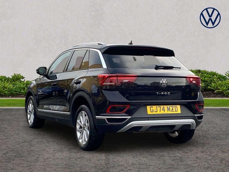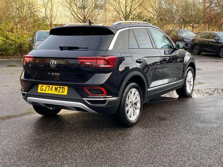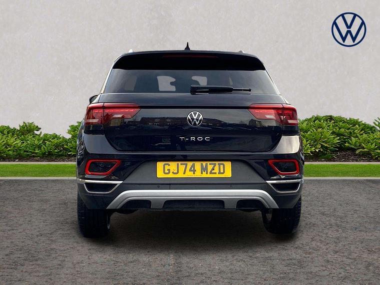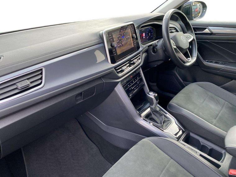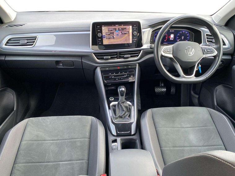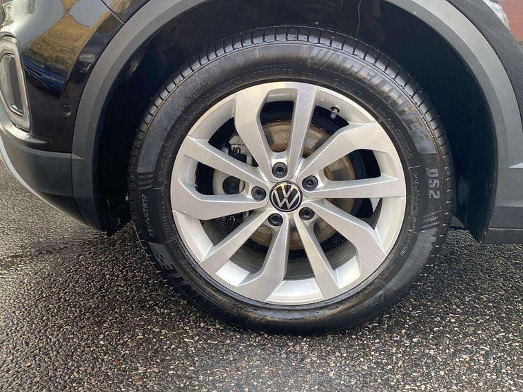 10.25" Digital cockpit pro, Advanced driver attention and drowsiness monitor, Emergency call service, Lane keeping system Lane Assist, Mobile phone interface, Modified key software - reduce switch off time for key status change to Long no motion, Online services, Park assist including front and rear parking sensors, Power assisted speed sensitive steering, Service interval indicator, Tailgate/trunk lid release from outside, Think blue trainer driver tips and journey analysis, Warning sound and light for front seatbelts unfastened, Wireless app connect, Wireless Smartphone charger, Battery regeneration during braking, Start/stop function with battery regeneration, DAB Digital radio, Diversity antenna for FM reception, Front and rear 6 speakers, Music playback - MP3, WMA and AAC files, Premium USB cable in choice of either Apple or Android smartphone compatibility, SD card slot, Simultaneous pairing of 2 compatible mobile devices, Title and cover art display, We Connect and We Connect Plus functionality, Auto dimming interior rear view mirror, Automatic hazard lights activation under emergency braking, Automatic headlight control with LED separate daytime running lights with coming/leaving home function, Body colour sports bumpers with silver metallic underbody fascia, Dynamic headlight range control with self adjusting whilst driving, Electrically adjustable and heated door mirrors, Extended roof spoiler, Exterior mirrors aspherical on driver side, convex on front passenger side, External USB type C socket and charging sockets, Front windscreen wiper with intermittent wipe and 4 position delay, Heated rear window, LED 3rd brake light, LED rear combination lamps, LED rear number plate lights, Light mode for poor weather, rain, fog or snow, Power windows with comfort operation and circuit breaker, Rain sensor, Rear exhaust tailpipe, Rear fog light on one side and reversing lights on both sides, Rear side wing doors, Rear wash/wipe with intermittent wipe setting, Remote electrically foldable door mirrors, puddle lights and reverse activated passenger's door mirror, 12V power socket in centre console, 3 rear head restraints, 3 seat bench in 2nd row, 4 load lashing points in luggage compartment, Air care climatronic air conditoning system with active combination filter and 2-zone temperature control, Chrome plated radiator grille inserts, air vent surrounds and light switch surrounds, Door and side trim panel with leatherette insert, Drawer under drivers seat, Front + rear carpet mats, Front centre armrest, Front comfort sports seats, Front cupholders x 2, Front footwell illumination, Front seat back storage pockets, Glove compartment door with light, Instrument lighting, white adjustable panel illumination, Interior ambient lighting and surround lighting, Interior light delay, Isofix child seat preparation, Leather gearshift handle, LED interior light with switch off delay/dimmer and 2 front/rear LED reading lights, Load-through provision with cup holder when folded down ('Unsplit rear seat bench, split folding backrest, with centre armrest), Luggage compartment lighting, Non-folding front passenger seat backrest, Single front passenger seat, Storage compartment in left and right luggage area, Storage compartment in rear doors, Storage compartments in driver and front passenger doors, Sunvisors with illuminated vanity mirrors, Variable boot floor, height adjustable and removable, Driver assistance pack without proactive passenger protection - T-Roc, 3 point height adj front seatbelts + pretensioners, 3 point seatbelts in outer rear with ECE label, ABS, Child locks on rear doors, City emergency braking and pedestrian monitoring, Driver and front passenger airbag with front passenger airbag deactivation, Driver and front passenger safety-optimised head restraints, Drivers seatbelt reminder, Electronic parking brake, Electronic Stability Control (ESC) inc EDL (Electronic Differential Lock) and ASR (Traction Control), Front and rear passengers curtain airbag system including front side airbags, Predictive pedestrian protection, Rear disc brakes, Two tone horn, Tyre pressure loss indicator, Volkswagen roadside assistance, Trims for alloy wheels,