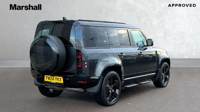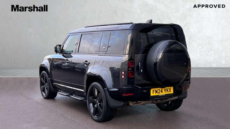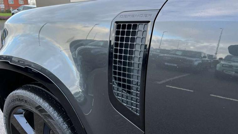 11.4" touchscreen, 360 degree parking aid, 3D Surround Camera with 360 View, 180 Rear View, Front Traffic Detection, Forward Vehicle Guidance, Tow Hitch Assist and clear sight Ground View, Adaptive cruise control, Android Auto, Apple CarPlay, Assisted tailgate with soft close, Blind spot assist, Bluetooth system, Brake pad wear indicator, Clear exit monitor, Connected navigation pro, Driver condition monitor, Electric power assisted steering (EPAS), Interactive driver display, Lane keep assist, Push button start, Rear collision monitor, Rear traffic monitor, Traffic sign recognition with adaptive speed limiter, Trip computer, Wade Sensing, 8 speed automatic transmission, All wheel drive system, Twin speed transfer box, DAB Radio (Digital Audio Broadcasting), Pivi pro connected, Automatic headlight levelling, Automatic headlights, Black exposed rear recovery eyes, Centre high mounted stop light, ClearSight interior rear view mirror, Electric heated/power fold door mirrors with approach lights and auto dimming driver side, Electric windows with one touch open/close and anti-trap, Follow me home lighting, Front fog lights, Heated rear window with timer, Heated windscreen, LED tail lights, Privacy glass, Puddle lights, Rain sensing windscreen wipers, Rear fog lights, Rear side wing doors, Rear wiper, Side hinged tailgate, Trailer stability assist, X-Dynamic badge, 12V power socket in loadspace, 14 way heated and cooled electric adjustable memory front seats with 4 way manual headrests, 3 seat bench in 2nd row, Alpine lights, Configurable cabin lighting, Durable rubber cabin flooring, Durable rubber loadspace flooring, Electric reach + rake adjustable steering column, Extended leather upgrade, Footwell lights, Front passenger isofix child seat attachment, Heated steering wheel, Loadspace cover, Loadspace Hook, Multifunction steering wheel, Overhead stowage for sunglasses, Premium cabin lighting, Rear headrests, Rear ISOFIX, Rear reading lights, Single front passenger seat, Standard seat configuration, Storage glovebox, Sunvisors with illuminated vanity mirrors, Online pack with data plan - Defender, 5 x 3 point seatbelts, ABS, Brake hold function, Cornering brake control (CBC), Customer configurable autolock, DSC - Dynamic Stability Control, EBD - Electronic brakeforce distribution, Electric parking brake (EPB), Emergency brake assist, Emergency braking, ESP + traction control, Front airbags with passenger seat occupant detector, HDC - Hill descent control, Hill launch assist, Low traction launch, Power operated child locks, Remote for (e-Call, Optimised assistance call, InControl app, Climate, beep and flash and door), RSC - Roll stability control, Seat belt reminder, TPMS (Tyre pressure monitoring system), Alarm, Immobiliser, Intrusion sensor, Keyless entry, Locking wheel nuts,
