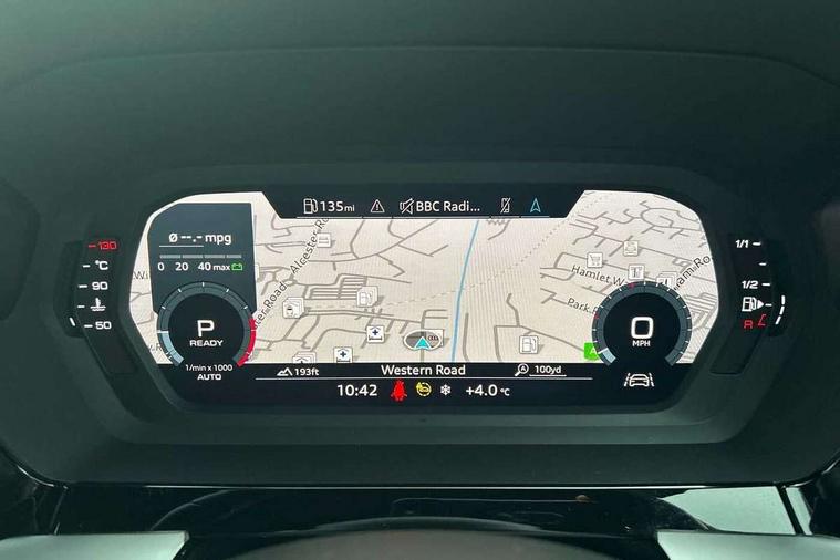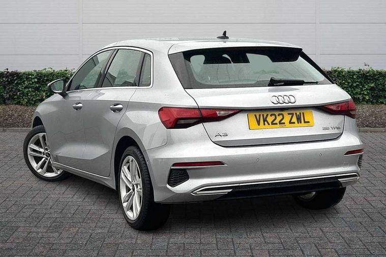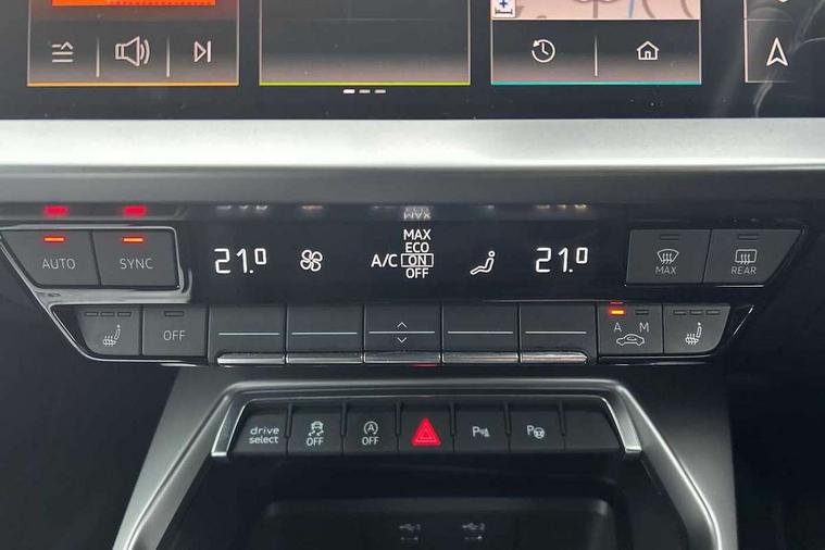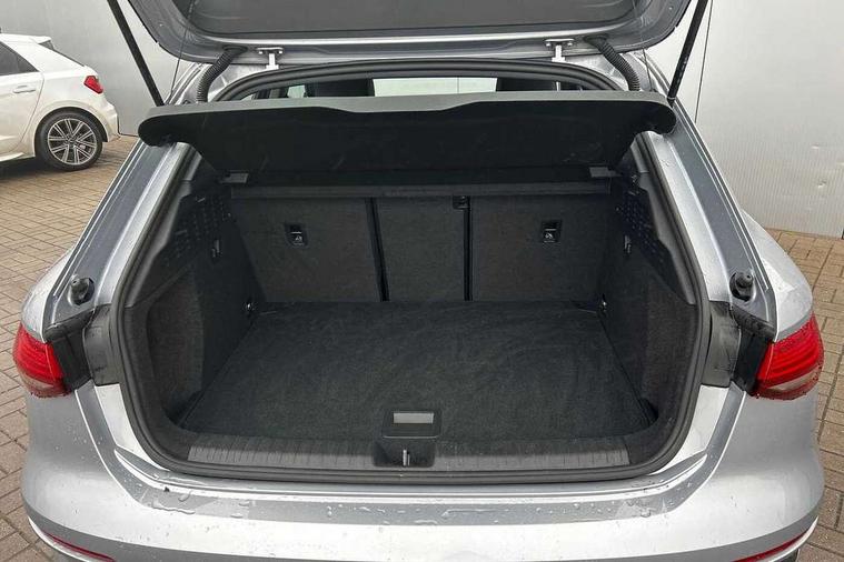 Audi connect emergency call and service, Audi drive select (Auto, Comfort, Dynamic, Efficiency and Individual), Audi smartphone interface, Audi Virtual Cockpit - 10.25" digital and colour instrument cluster, Automatic start/stop system with recuperation, Bluetooth interface, Collision avoidance assistant, Electromechanical power speed sensitive steering, Lane departure warning system, MMI Navigation Plus with high resolution 10.1" colour touch screen display, Service indicator, Trip computer, Voice control system with natural language interaction, Standard suspension, 2xUSB-C connection with data and charging functions, 6 passive loudspeakers, DAB Digital radio, 3rd brake light, Acoustic glass windscreen, Aluminium window trim, Auto dimming frameless rear view mirror, Body colour exterior mirrors, Body colour roof spoiler, Electrically adjustable/heated/folding/auto dimming door mirrors with integrated LED indications + kerb view function for passenger side, Front electric windows, LED daytime running lights, LED headlights and halogen rear lights, Light and rain sensors, Rear electric windows, Rear side wing doors, Rear window, rear door windows and rear side windows in clear glass, Rear wiper, 12V socket and storage compartment in front centre console, 3 seat bench in 2nd row, 40/20/40 split folding rear seat bench with cupholder, Dual zone electronic climate control, Front and rear centre armrest, Front and rear headrests, Front door sill trims with aluminium inlay, Front/rear floor mats, Height and reach adjustable steering wheel, Interior lighting - Front and rear roof module including reading lights, glove compartment light and right hand side, Luggage compartment floor covering, Manual boot compartment lid, Manually adjustable front seats, Seat side bolsters, Single front passenger seat, Steel grey cloth headlining, Twin leather upholstery, Aluminium interior elements pack - A3 Sportback, Sport styling pack - A3 Sportback, 3x3 point rear seat belts, Driver and front passenger airbag with passenger airbag deactivation, Electronic Stabilisation Control (ESC) including ABS, ASR and EDL, First aid kit with warning triangle and 2 safety vests, Front side airbags with head airbags and interaction airbag, Pre-sense front with pedestrian and cyclist detection, Seatbelt monitoring, Tyre pressure loss indicator, Anti theft alarm, Anti-theft wheel bolts, Immobiliser, Manual child locks, Remote control central locking, Inlays with silk effect paint in platinum grey,