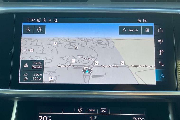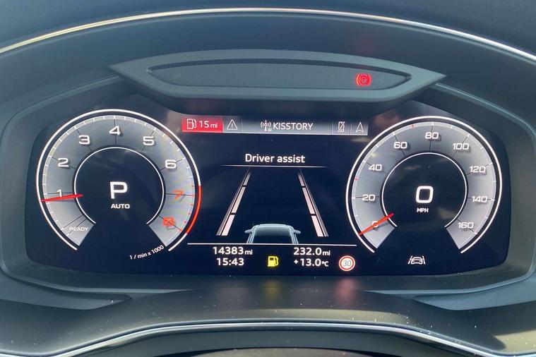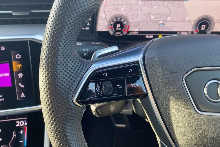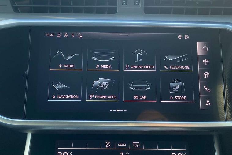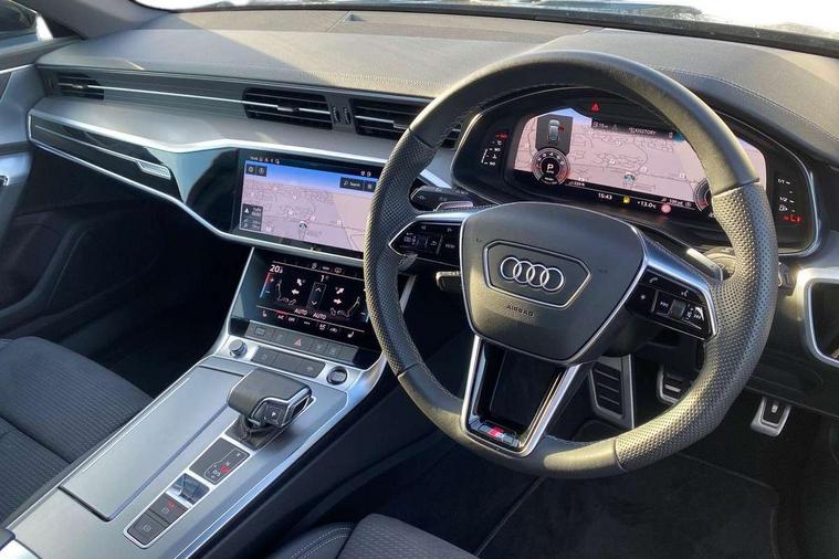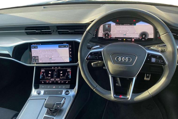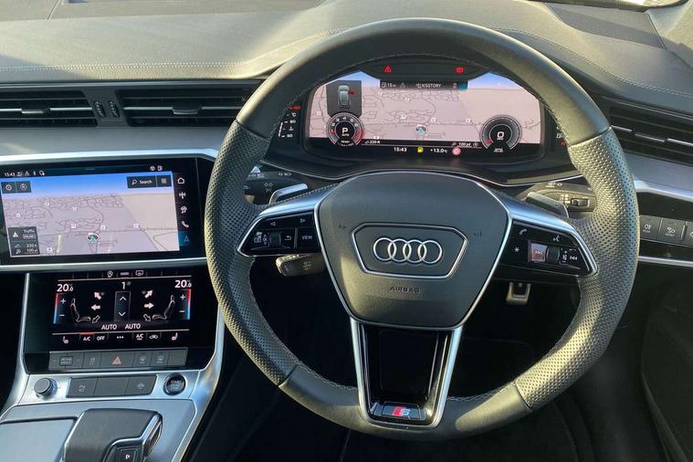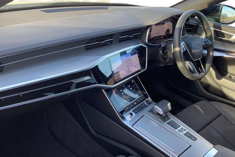 Audi connect safety and service (e-call), Audi connect with Amazon Alexa Integration, Audi drive select, Audi parking system plus - acoustic and visual park assist system for front and rear, Audi virtual cockpit, Automatic start/stop system with coasting functionality, Bluetooth interface, Camera based traffic sign recognition, Lane departure warning system, MMI navigation plus with 10.1" and 8.6" touch screens, Power operated tailgate, Progressive steering, Rear view camera, Service interval indicator, Smartphone interface includes wireless Apple carplay/Android Auto, Voice control system, Sports suspension, Audi front music interface, Audi sound system, Auxiliary input socket, DAB Digital radio, USB connection, Aluminium roof rails, Body colour rear roof spoiler, Body coloured door mirrors, Electric front/rear windows, Electrically adjustable heated and folding + automatically dimming exterior mirrors with memory function, Frameless auto dimming interior rear view mirror, Front intermittent wipers, Heat insulating darkened glass in side and rear windows, Heat insulating glass in windshield, LED rear lights with dynamic indicators, LED signature front daytime running light, LED third brake light, Matrix LED headlights, Matt black rear diffuser with diffuser strip and tailpipes in chrome, Matt black side air intake grille with inlay in matt aluminium, Privacy glass, Radiator grille in anthracite black matt, single frame in chrome and horizontal struts in matt aluminium silver, Rain and light sensors, Rear side wing doors, Rear wiper, 2 zone deluxe electronic climate control, 3 spoke high multi-function perforated leather steering wheel with contrast stitching and shift paddles, 40/20/40 split folding 3 rear seat bench in 3 parts with rear centre armrest, Audi phone box light, Black cloth headlining, Electrically adjustable front seats including seat height, fore/aft position, backrest angle and 4-way lumbar with memory for driver's seat, Front and rear floor mats, Front centre armrest, Front head restraints, Heated front seats, Height/reach adjust steering wheel, Illuminated door sill trims with S logo, Illuminated sun visors with vanity mirrors, ISOFIX child seat mounting and Top Tether with front passenger airbag deactivation, Leather gear knob, Luggage compartment system, Rear headrests, Single front passenger seat, Stainless steel pedals and foot rest, Tool kit and car jack, LED Interior Ambient Lighting Pack - A6, Non smoking pack - A6, S line exterior style pack - A6, 3 point seatbelts on all seats, Airbags - Front side, front and rear including head, Audi pre-sense front, EBD - Electronic brakeforce distribution, Electromechanical parking brake, Electronic Stability Control (ESC) including ABS, ASR and EDL, Extended pedestrian protection measures, Manual child proof rear door locks, Seatbelt monitoring, Tyre pressure warning light, Warning triangle and first aid kit, Anti theft alarm with tow away protection, Anti-theft wheel bolts and wheel loosening detection, Immobiliser, Keyless Go, Remote central locking, Matt brushed aluminium inlays,